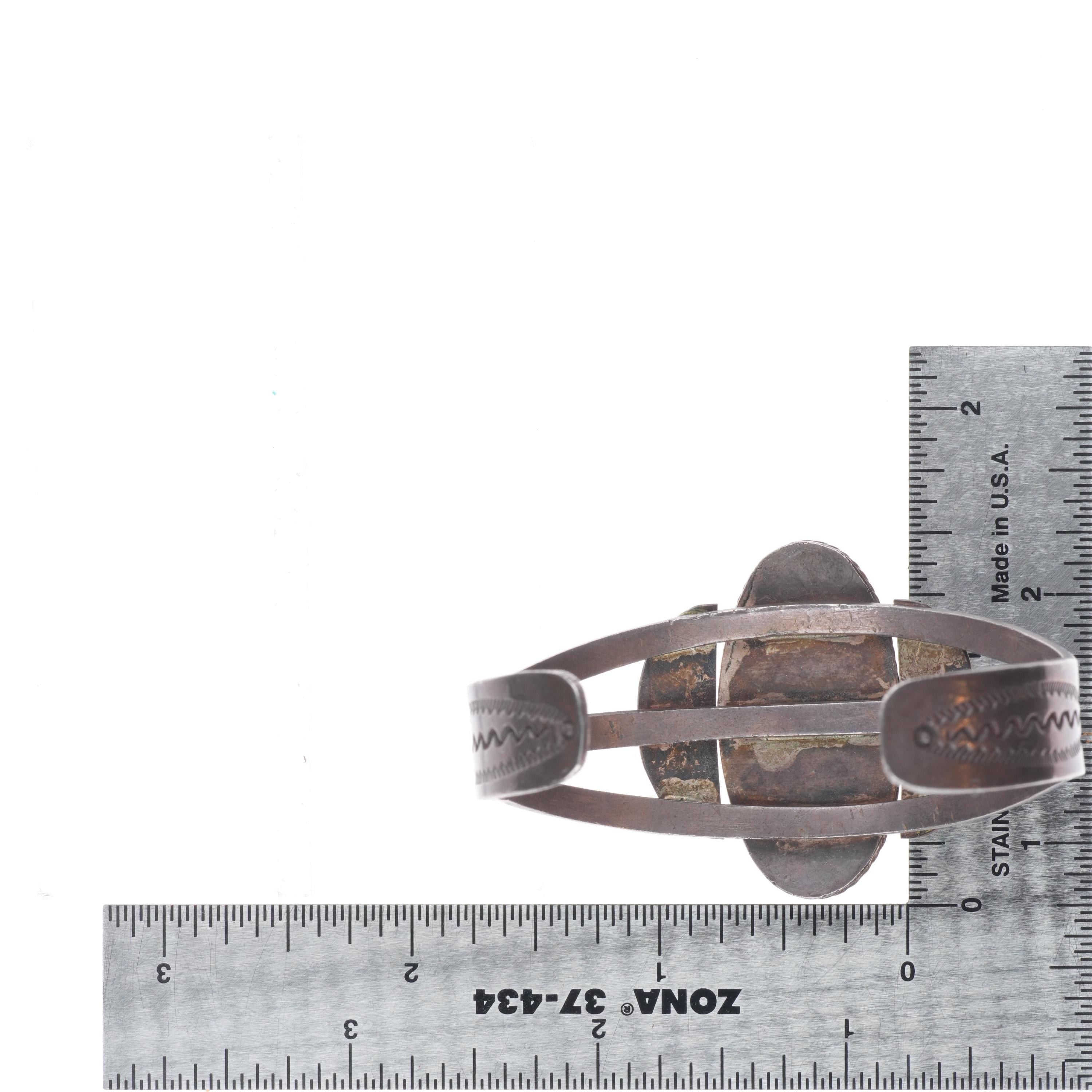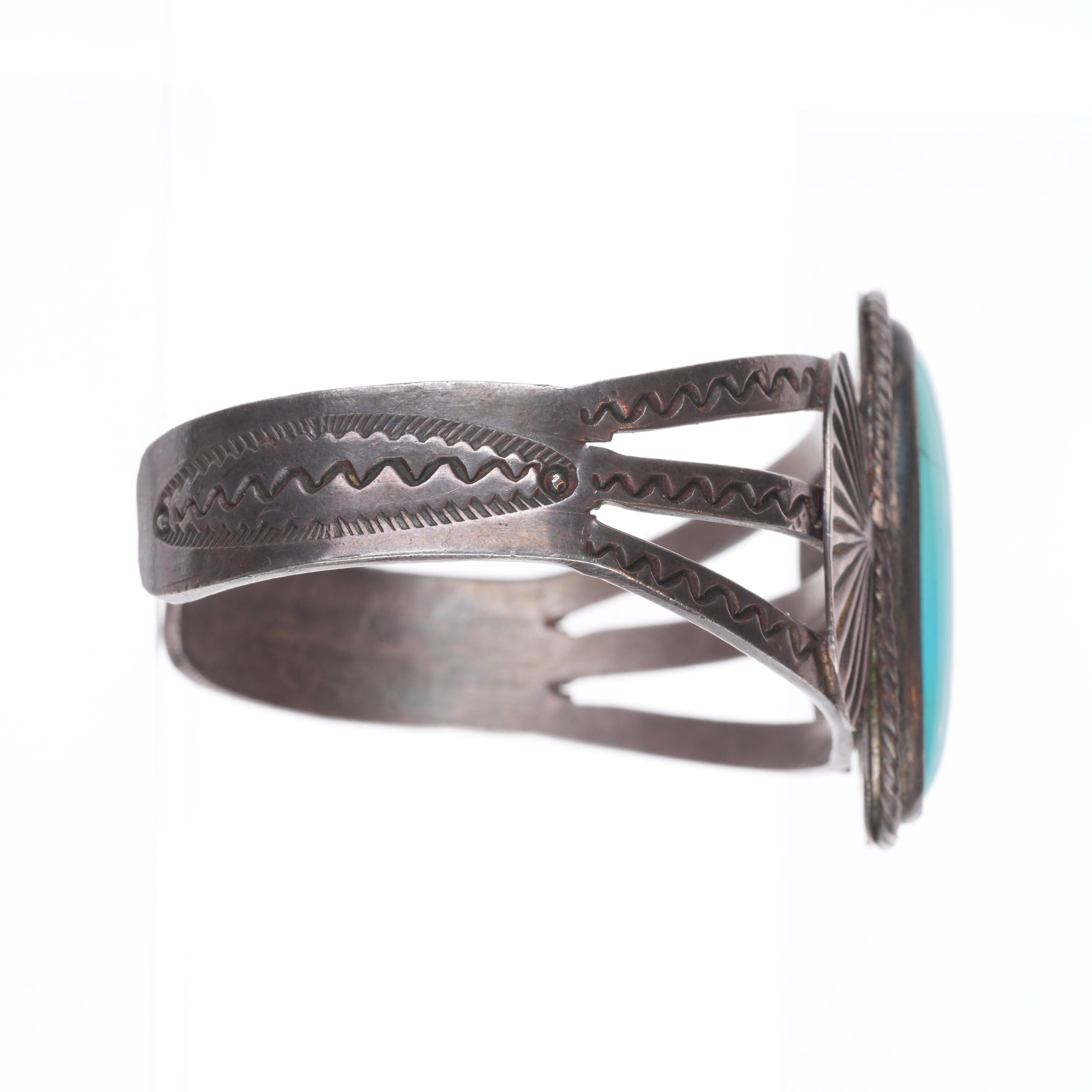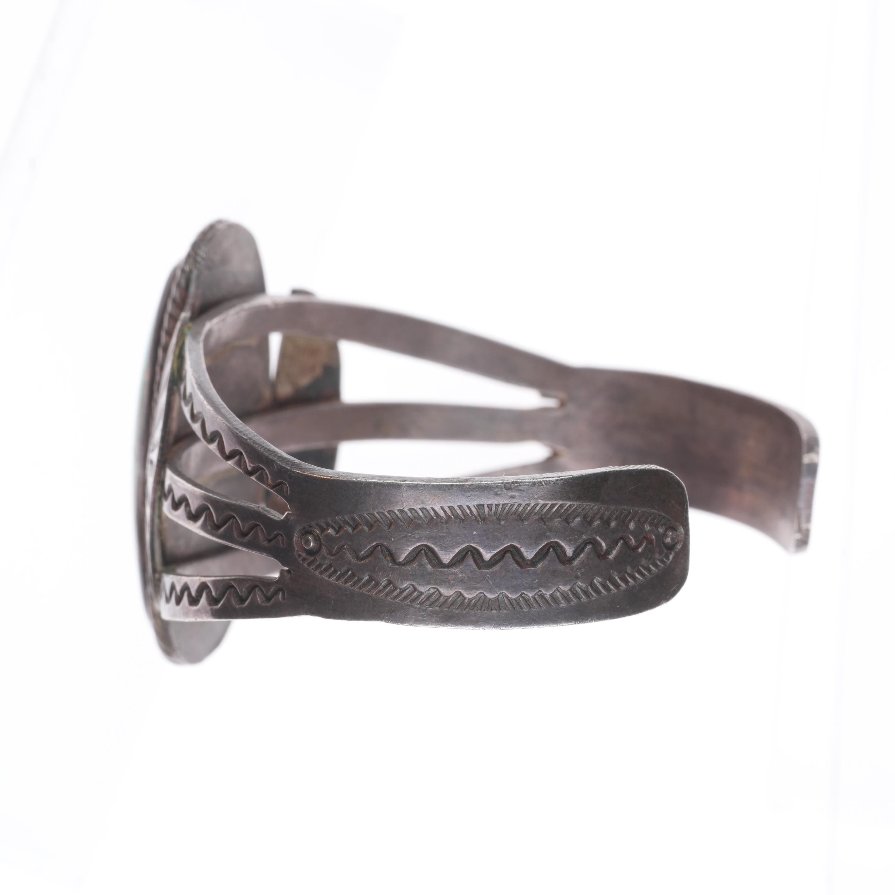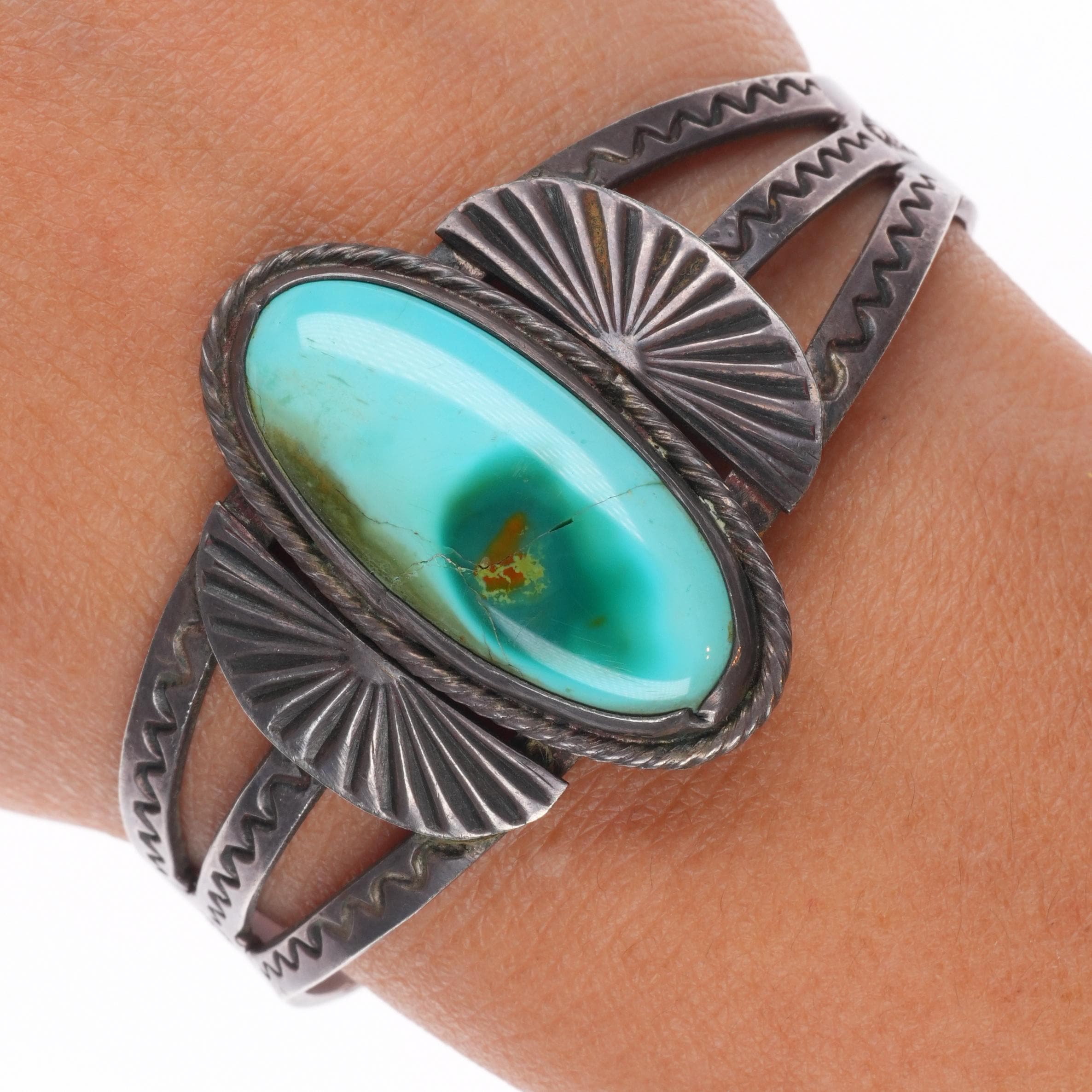 6.2" 1940's Navajo hand stamped sterling silver Royston turquoise cuff bracelet