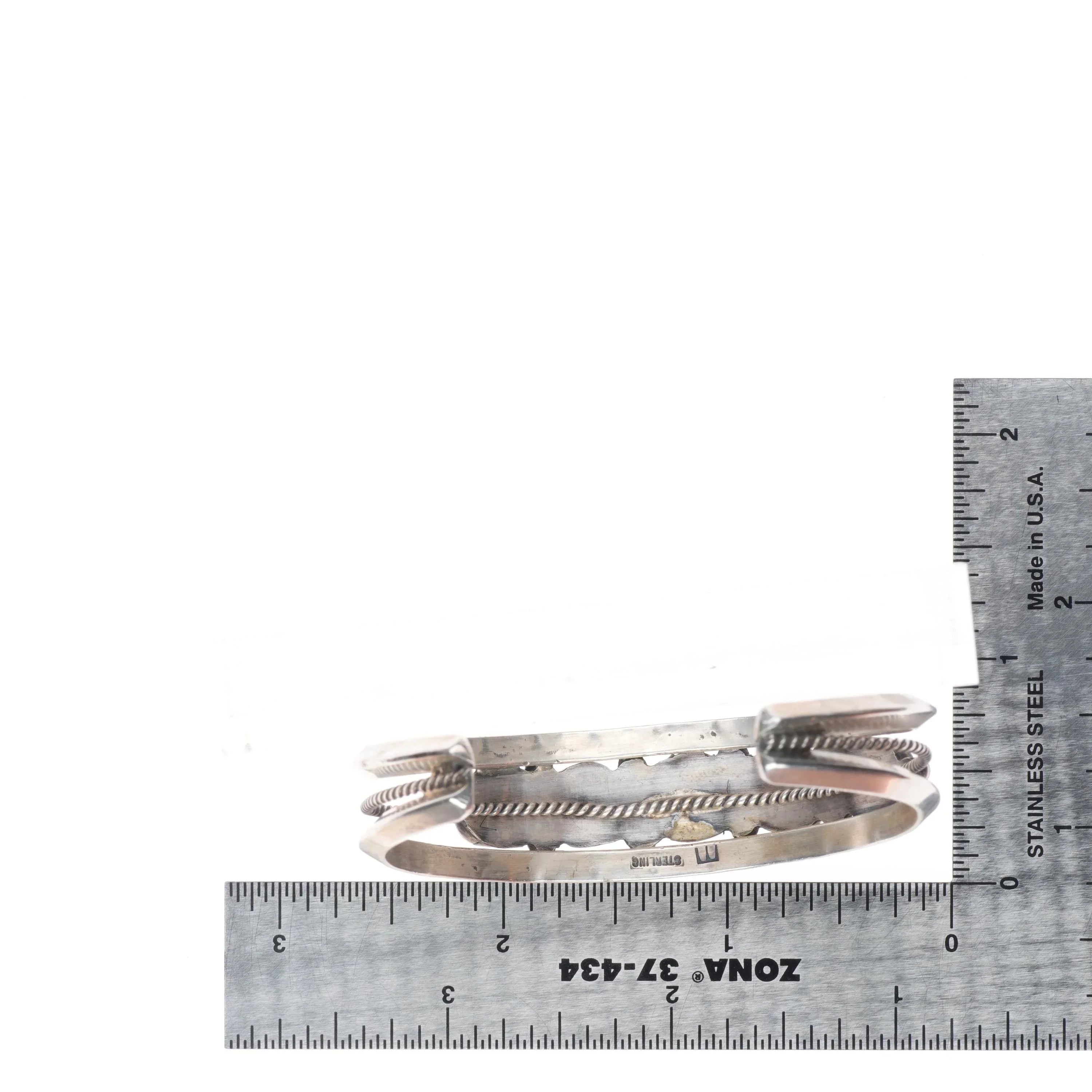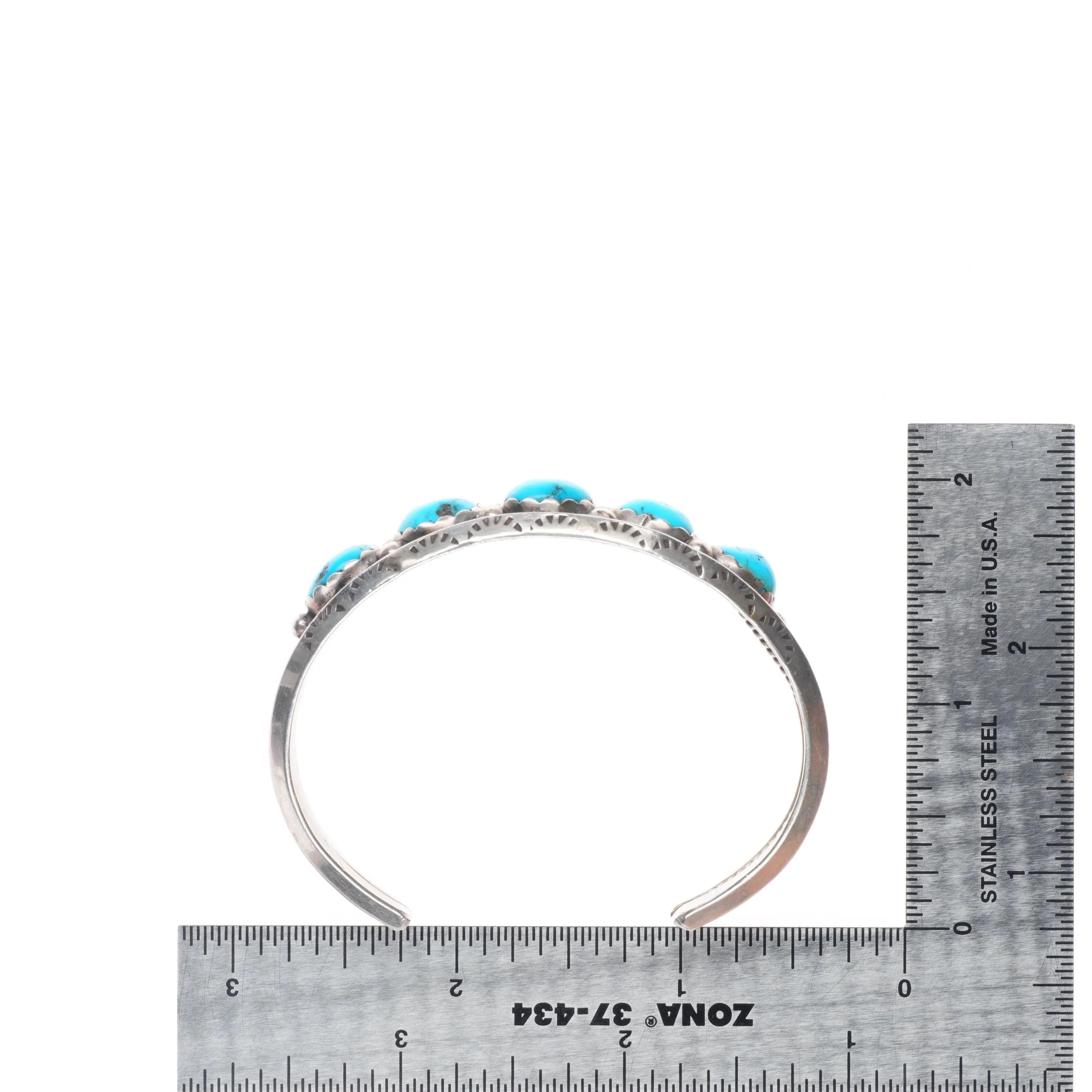 6.2" E Navajo sterling silver Kingman turquoise carinated row cuff bracelet