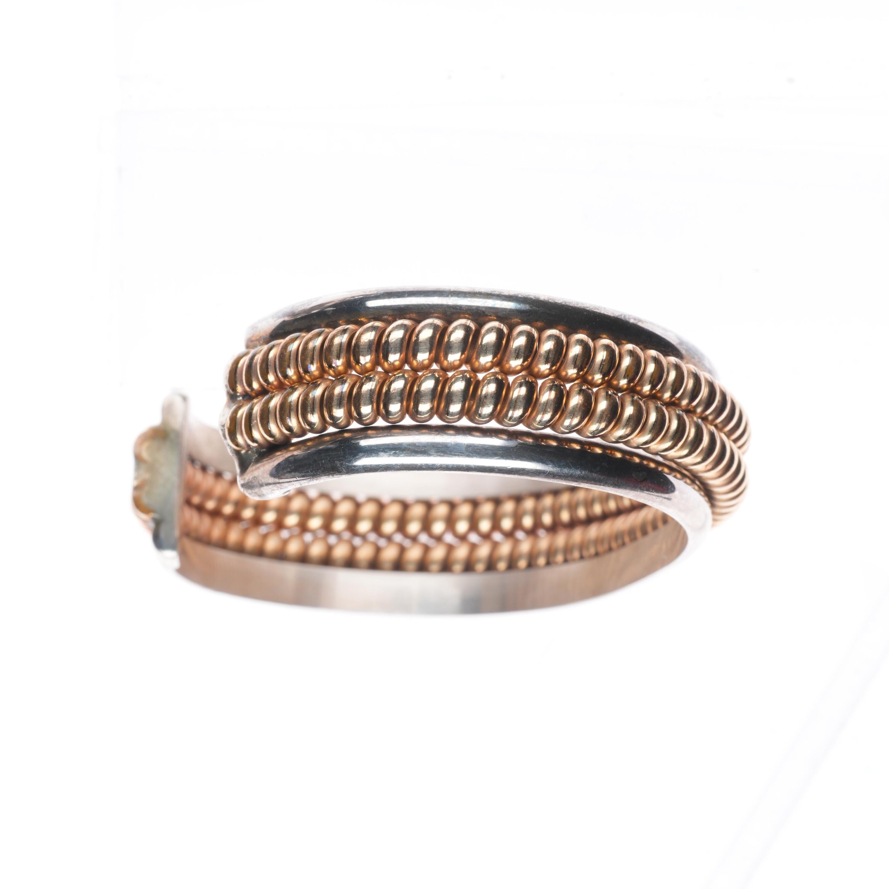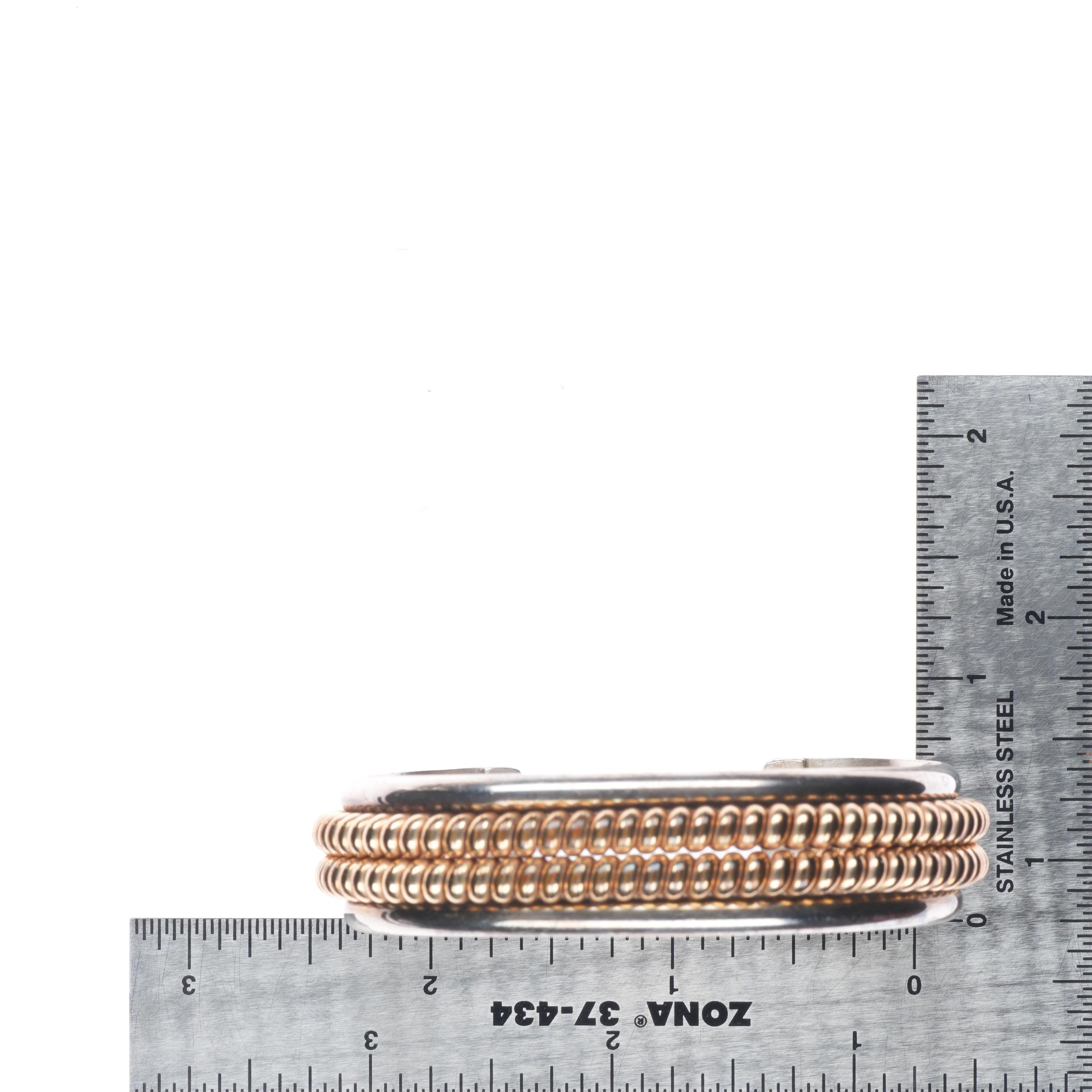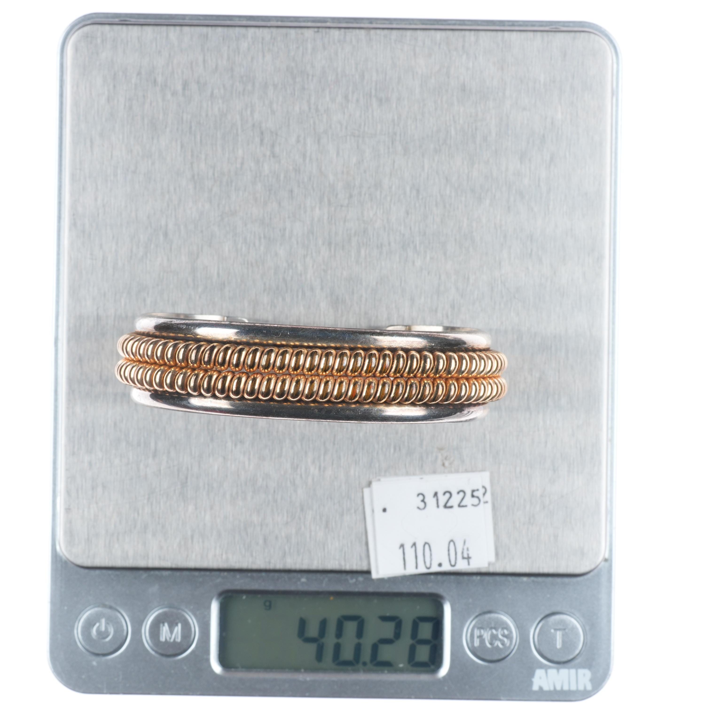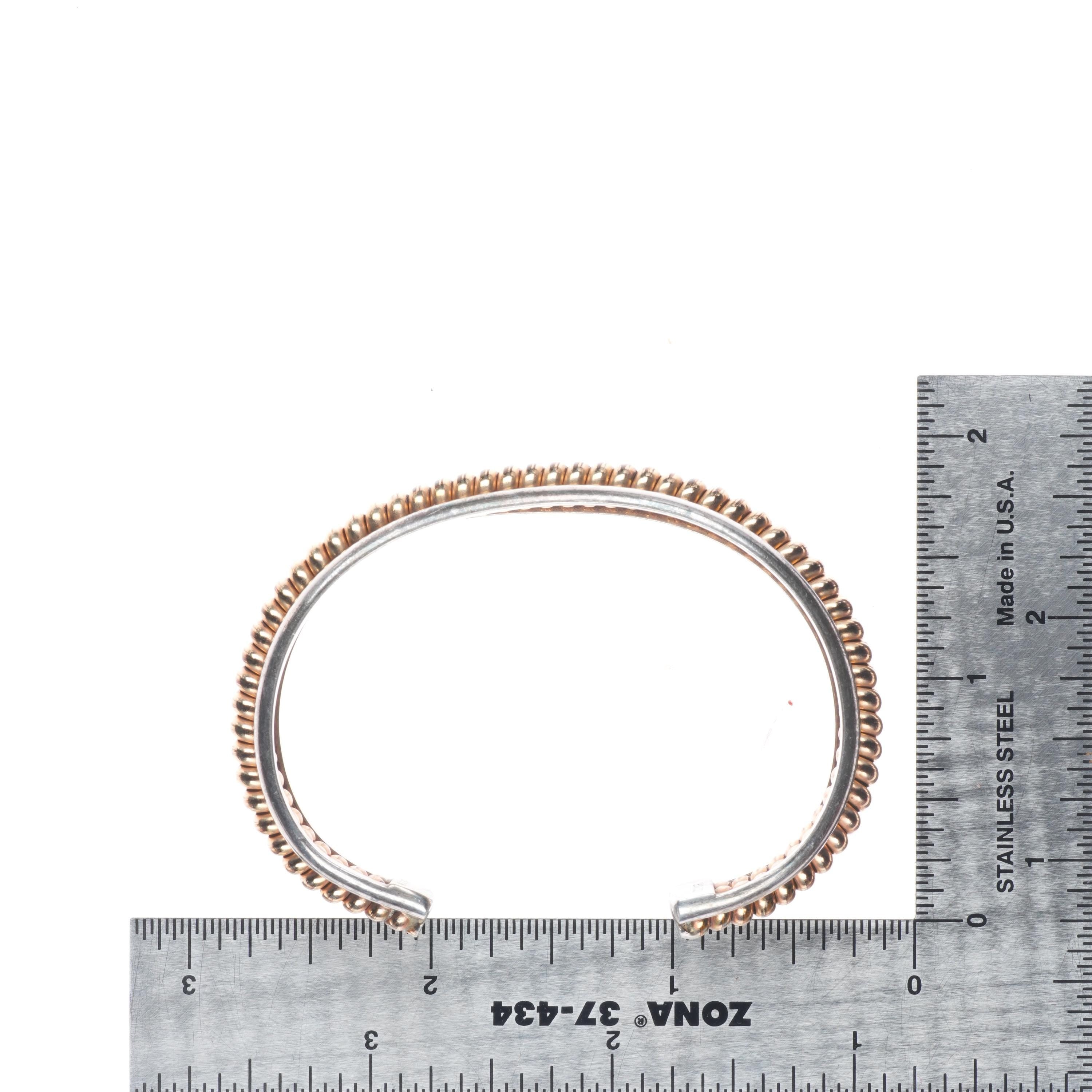 6.2" Tahe vintage Navajo sterling silver gold filled twisted wire cuff bracelet. Tested and guaranteed solid sterling silver with weight and measurements in pictures. Circa last quarter of the 20th century. Fits up to a 6.2" wrist without adjustment, though .25" or more of careful adjustment is typically very simple. Any adjustment will change the gap size of course which is shown in the pictures.