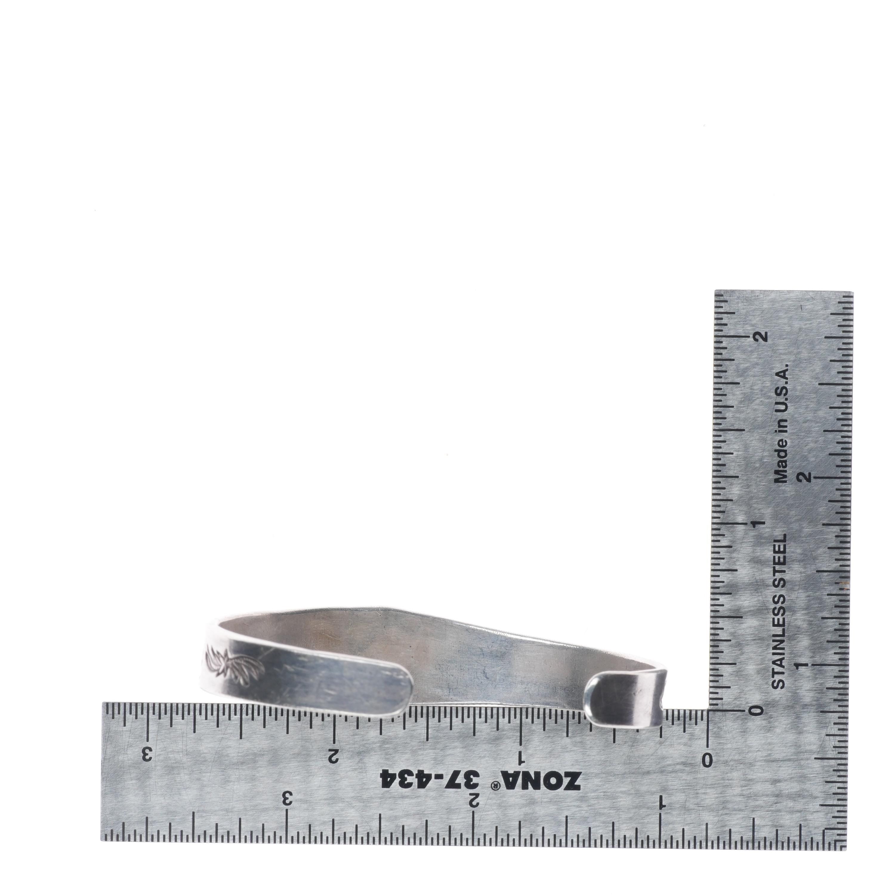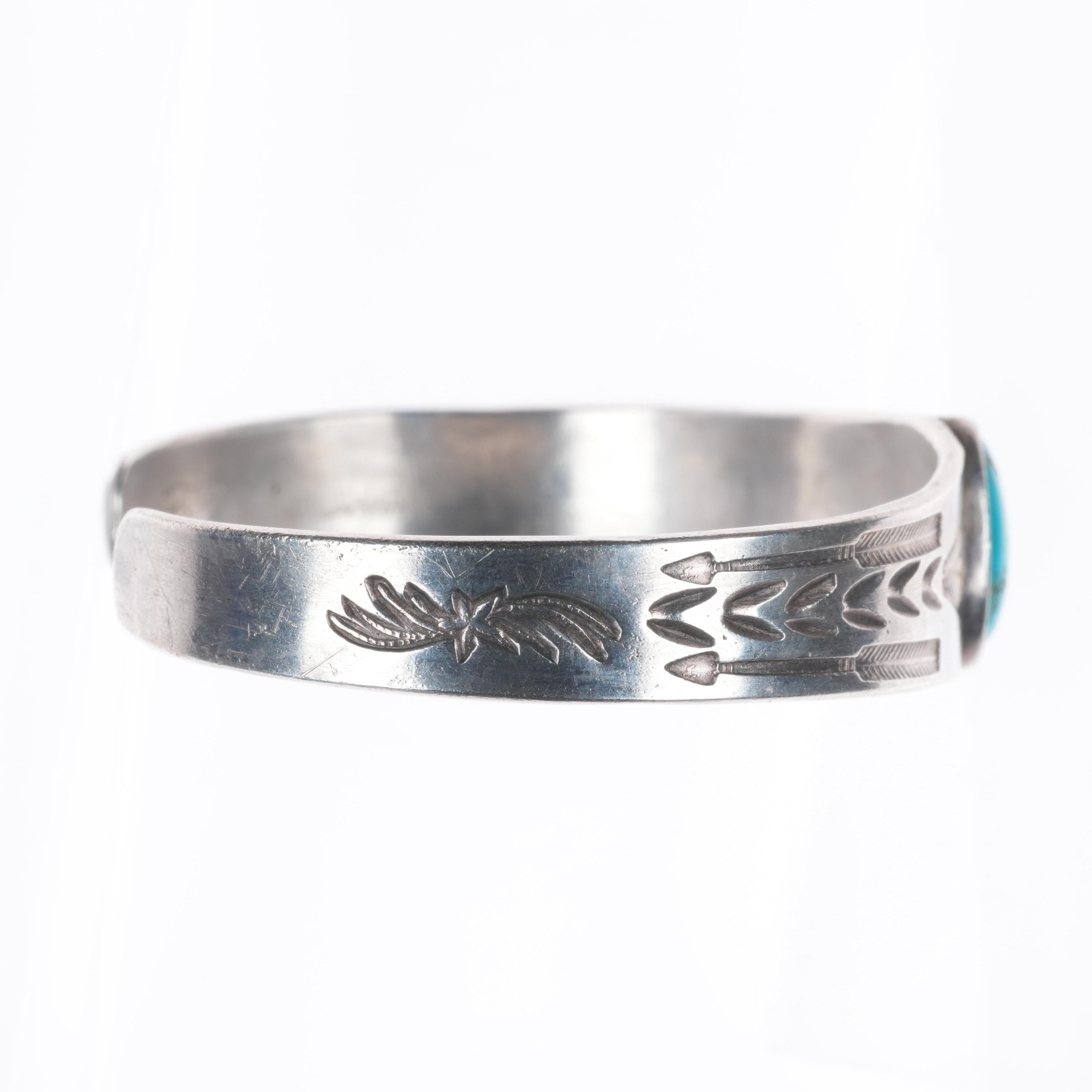 6.25" 1930‘s Navajo Ingot silver deep stamped cuff bracelet with nice turquoise. Tested and guaranteed solid ingot/sterling silver with weight and measurements in pictures. Circa second quarter of the 20th century with age appropriate wear..