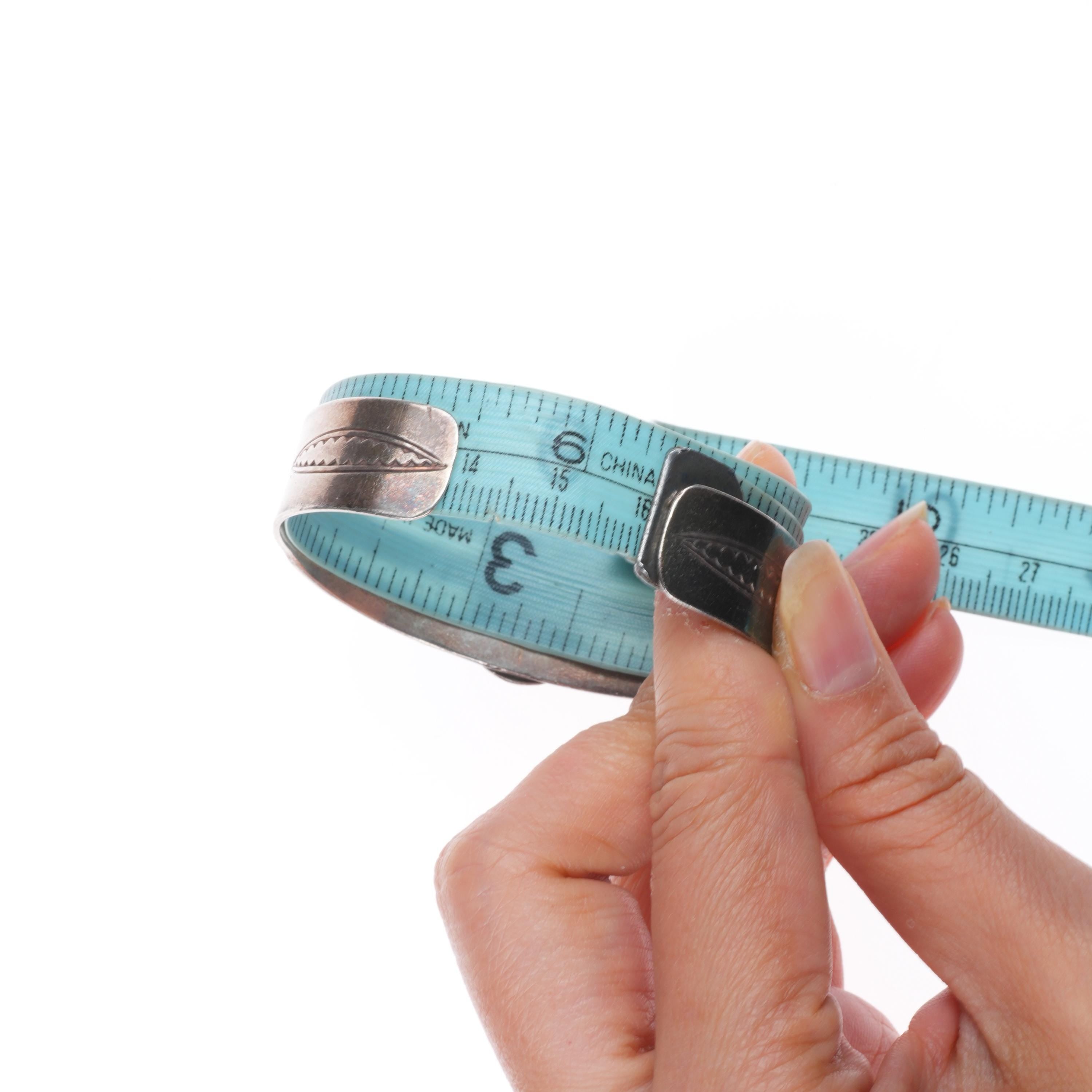 Bracelets are shown in the photos with a tape measure inside the bracelet, other photos will typically show the gap size. The size at the beginning of the title includes the gap.