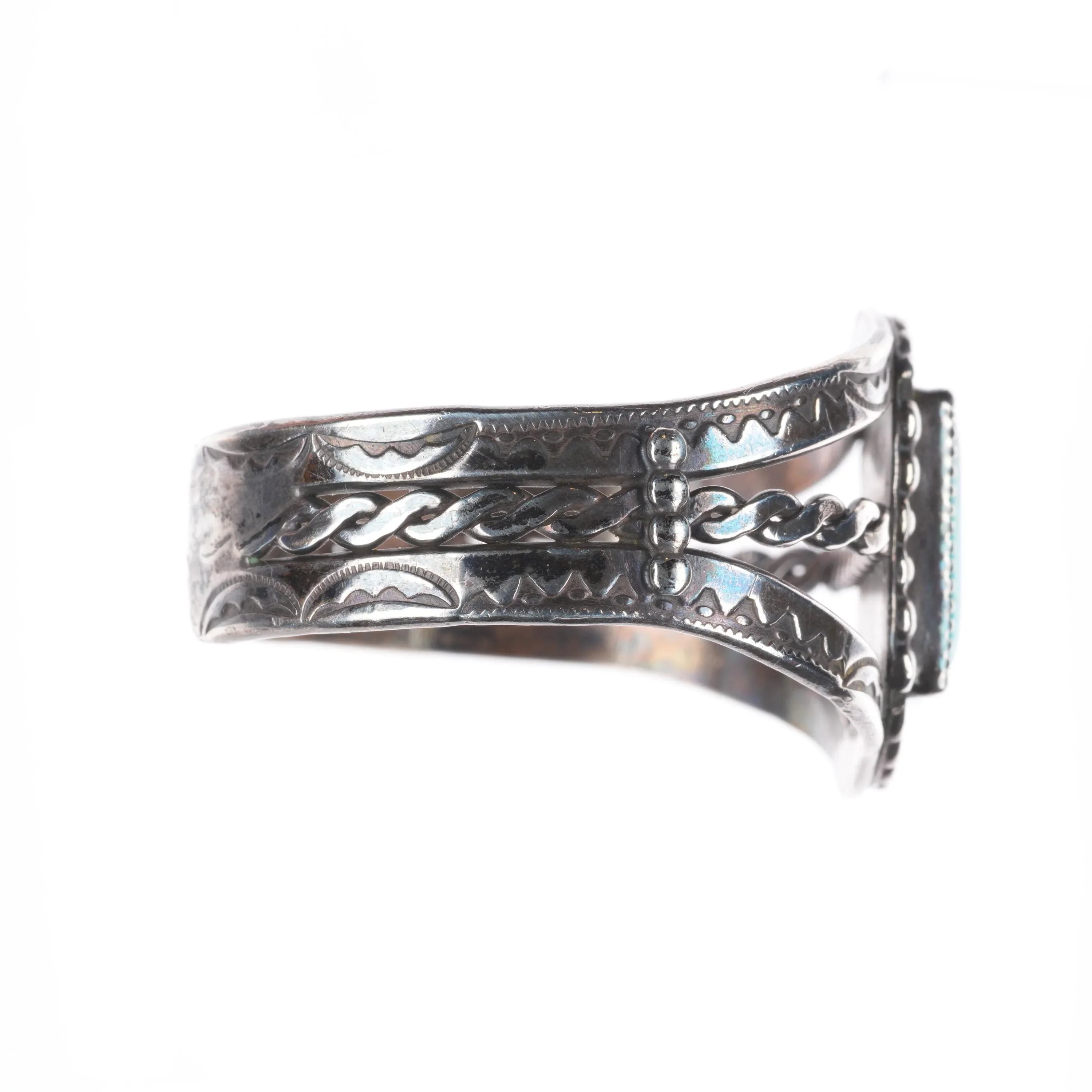 6.25" 40's-50's Navajo sterling silver stamped cuff bracelet with nice turquoise