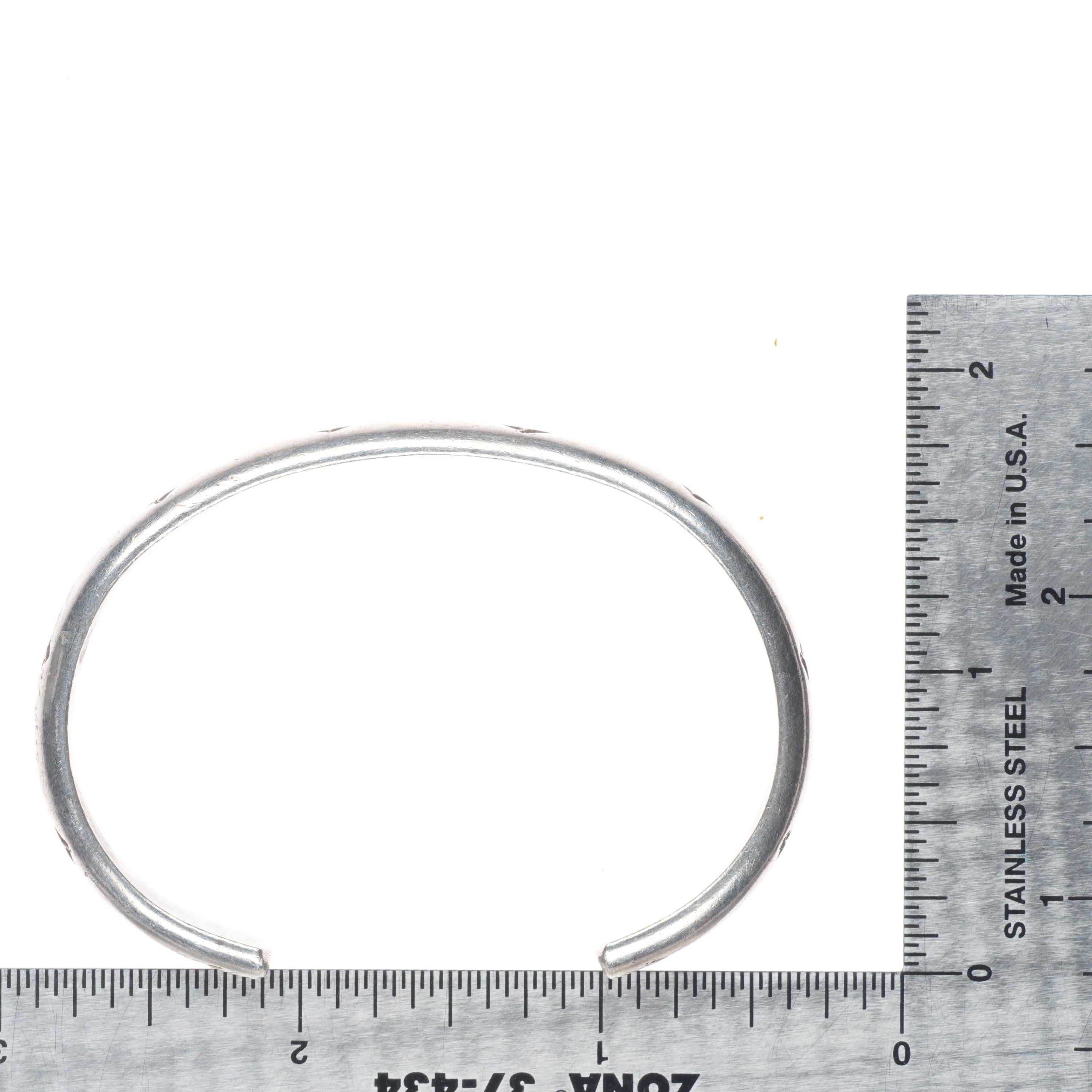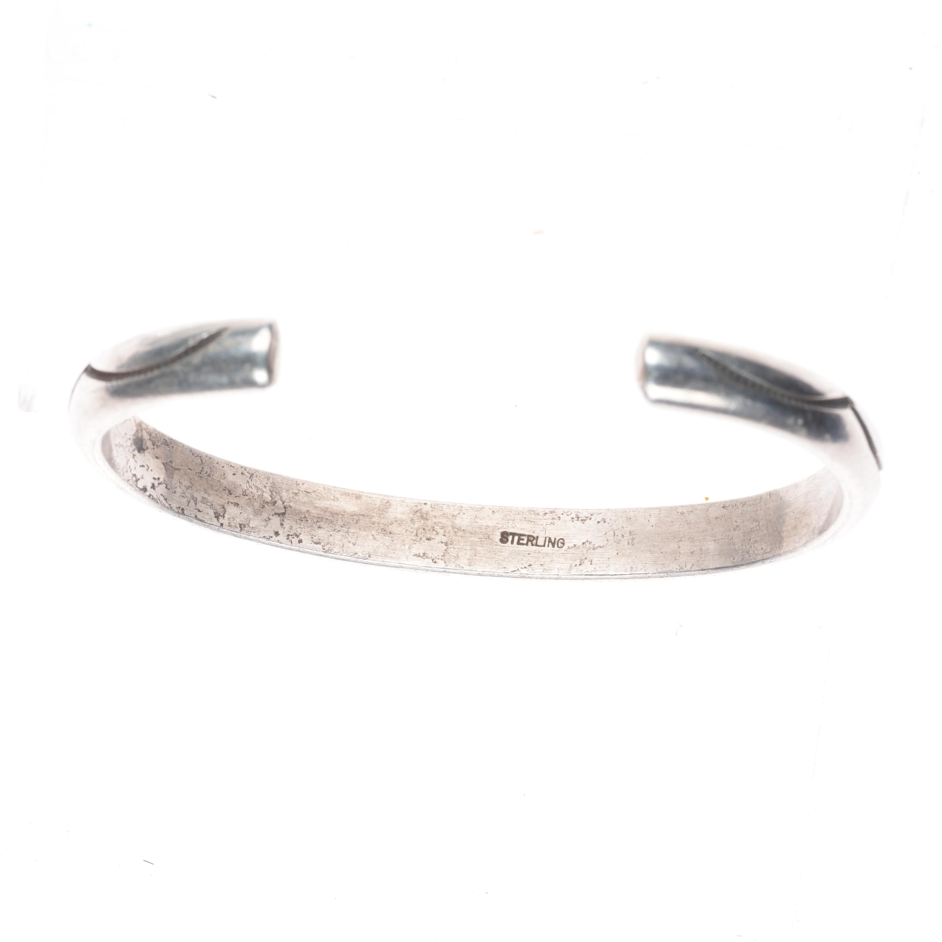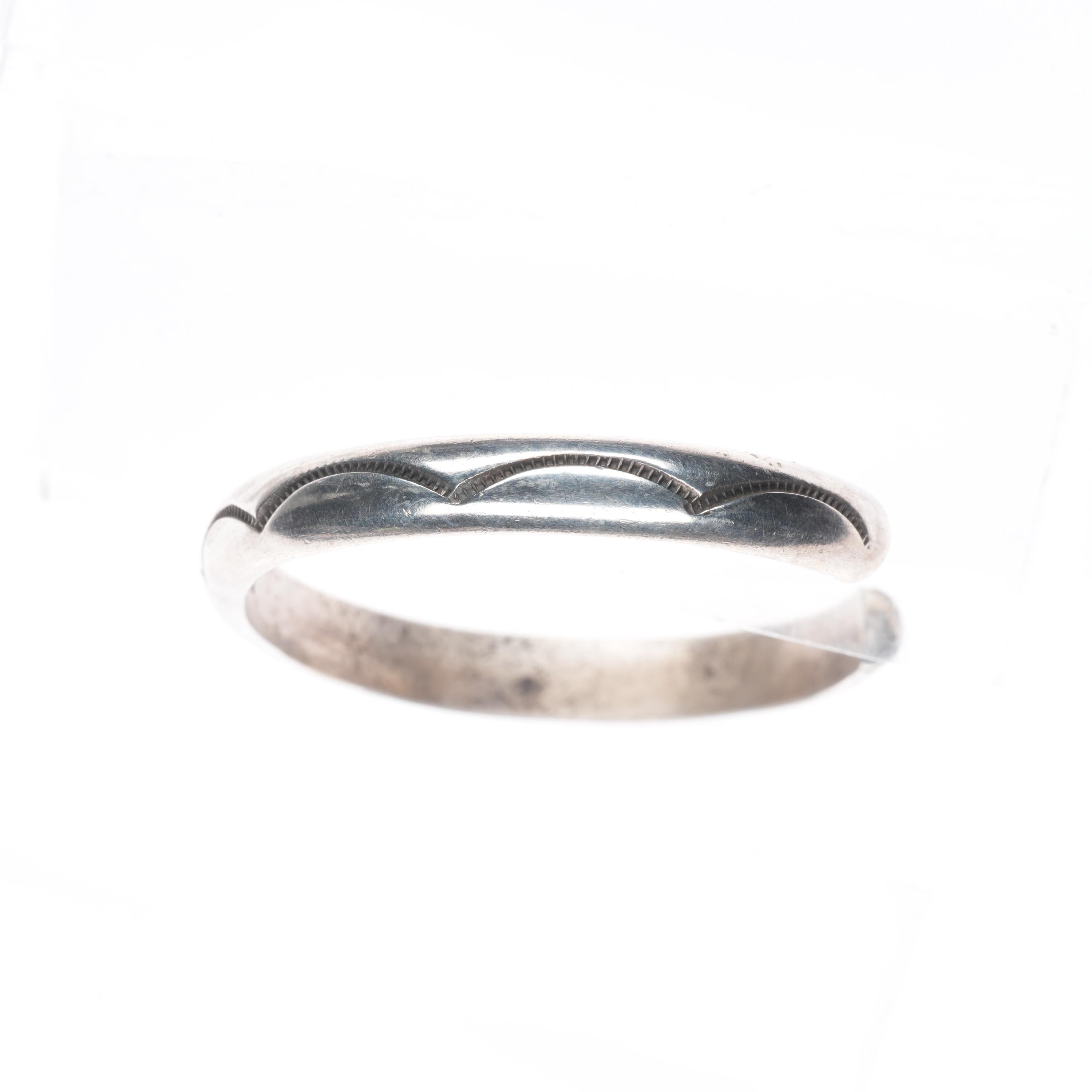 6.3" Vintage Navajo sterling silver sturdy stacker cuff bracelet. Tested and guaranteed solid sterling silver with weight and measurements in pictures. Fits up to a 6.3" wrist. Circa third quarter of the 20th century.