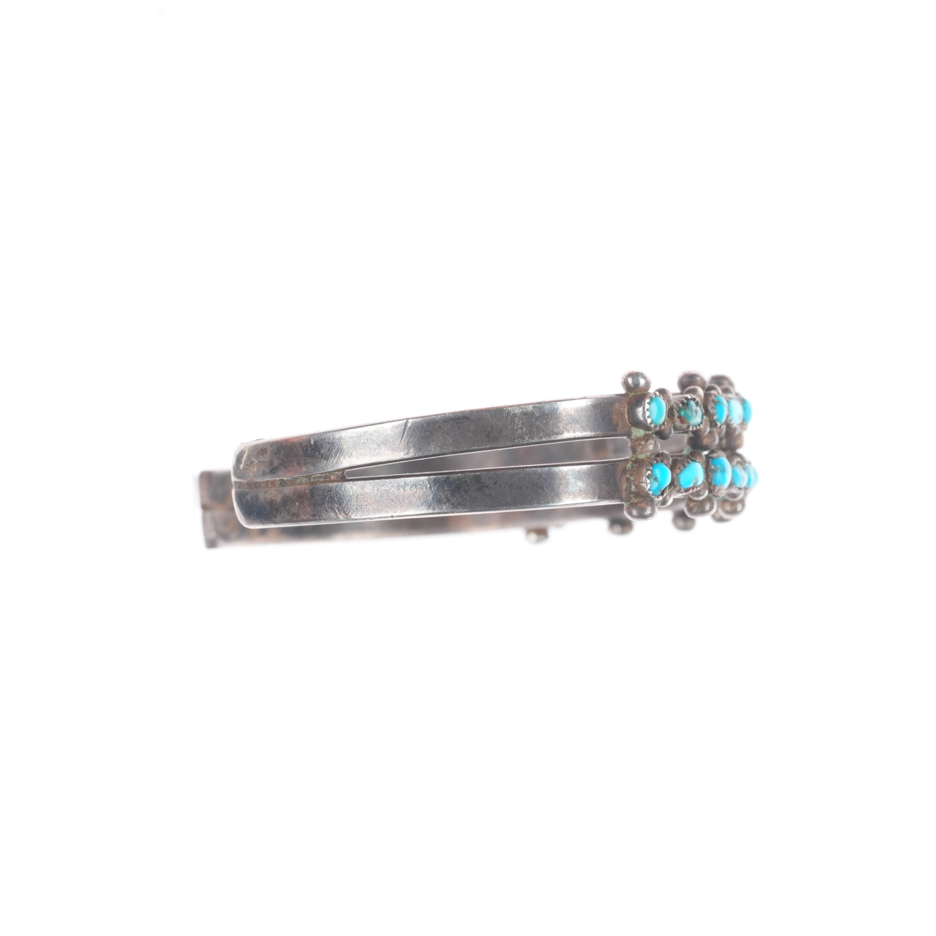 6" 30's-40's Vintage Zuni sterling silver dot-dash turquoise cuff bracelet