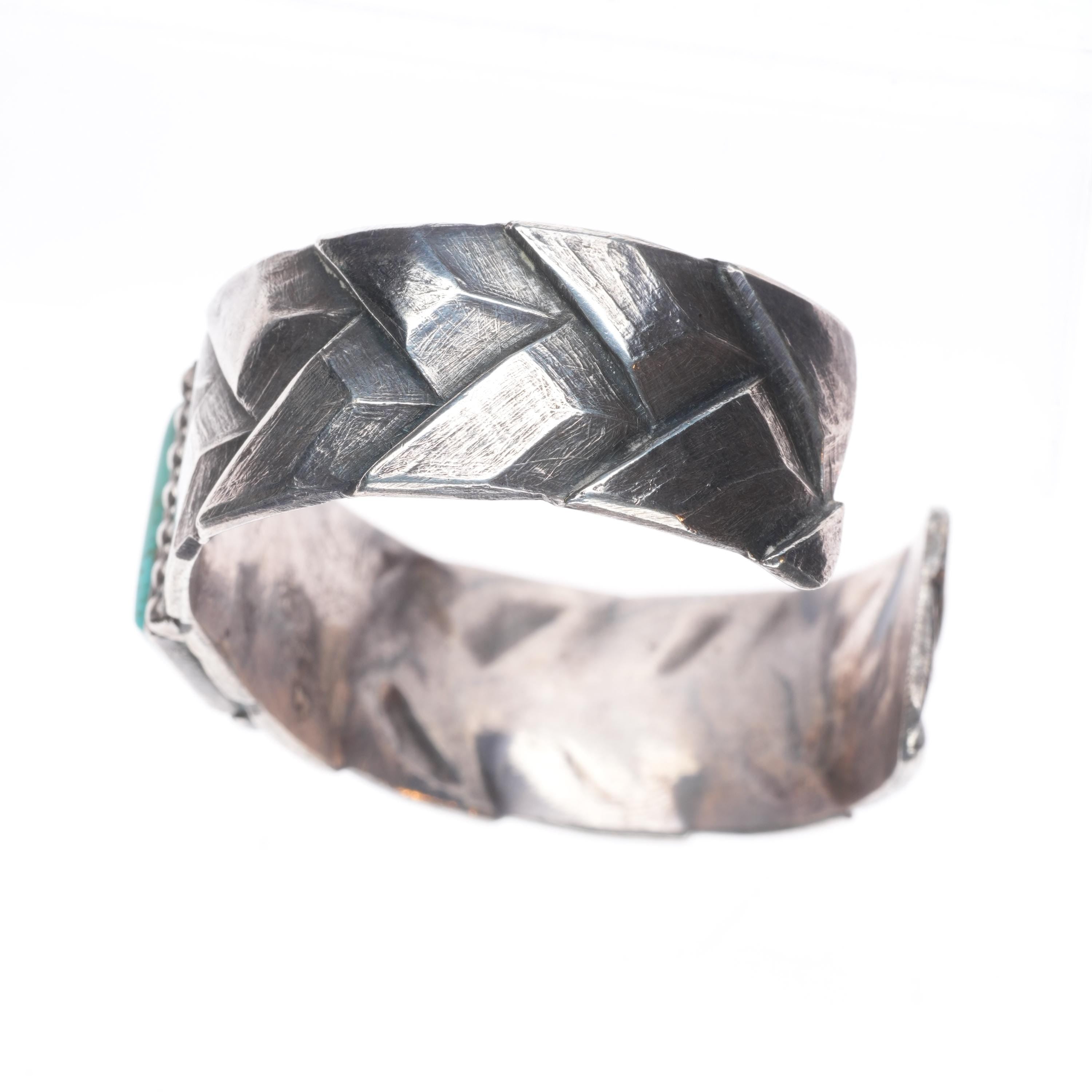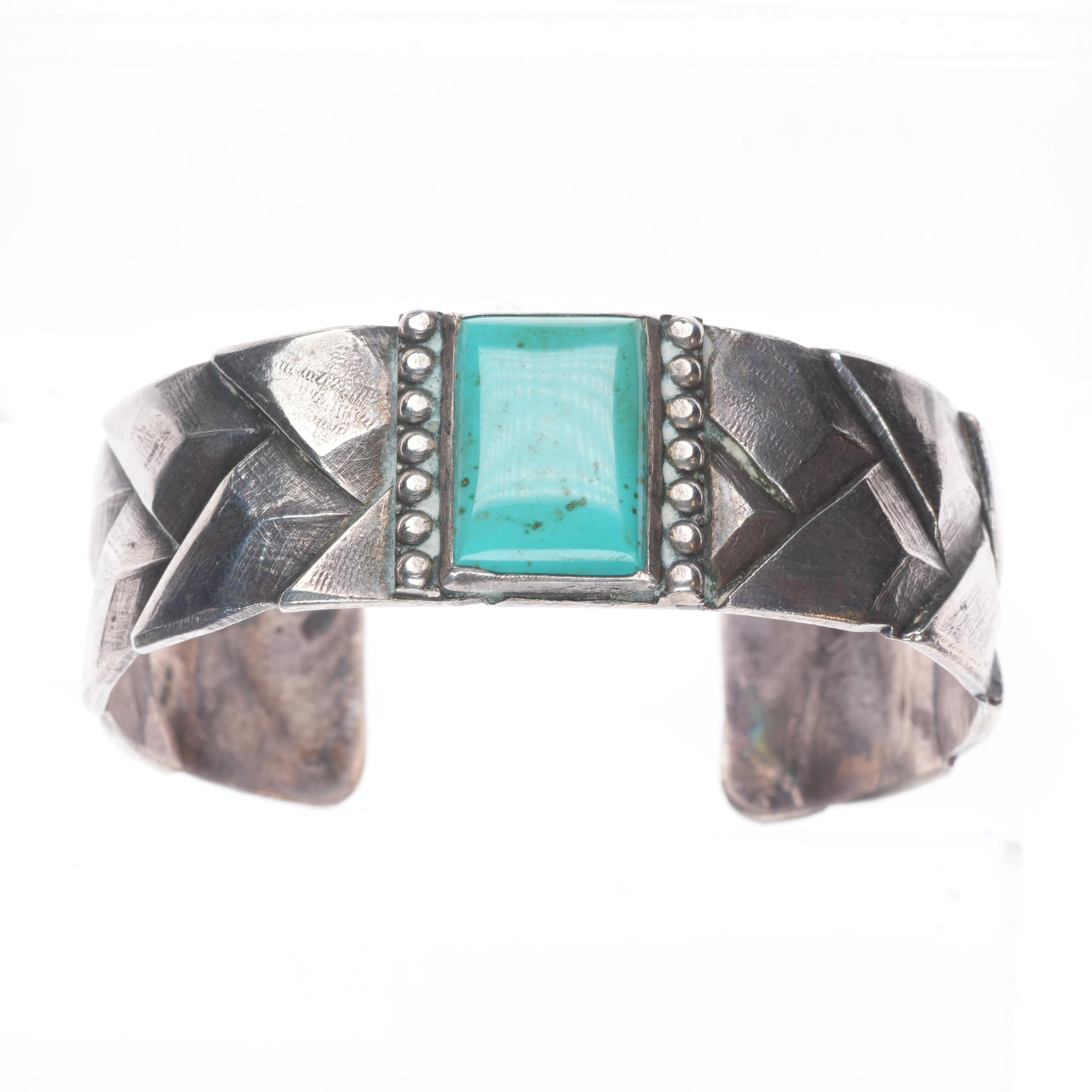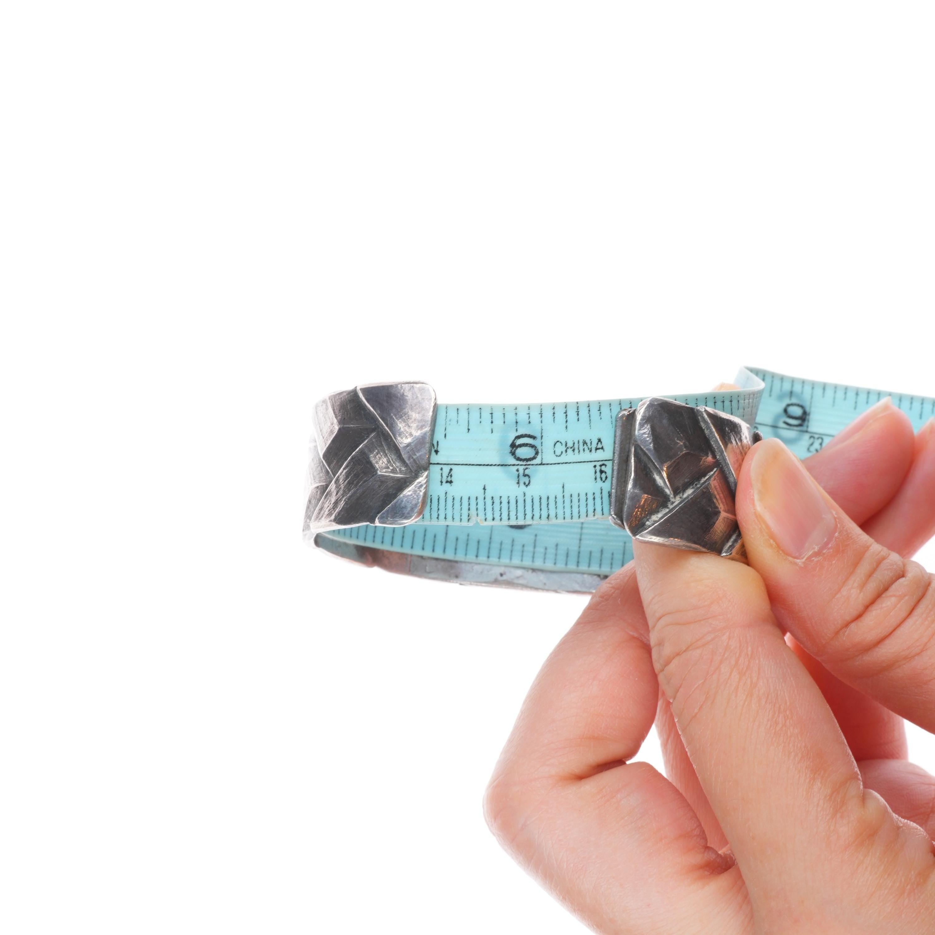 6.4" c1930‘s Navajo chiseled/filed basket pattern sterling silver cuff bracelet. Tested and guaranteed solid sterling silver with weight and measurements in pictures. Circa second quarter of the 20th century. Fits up to a 6.4" wrist. No apparent markings.