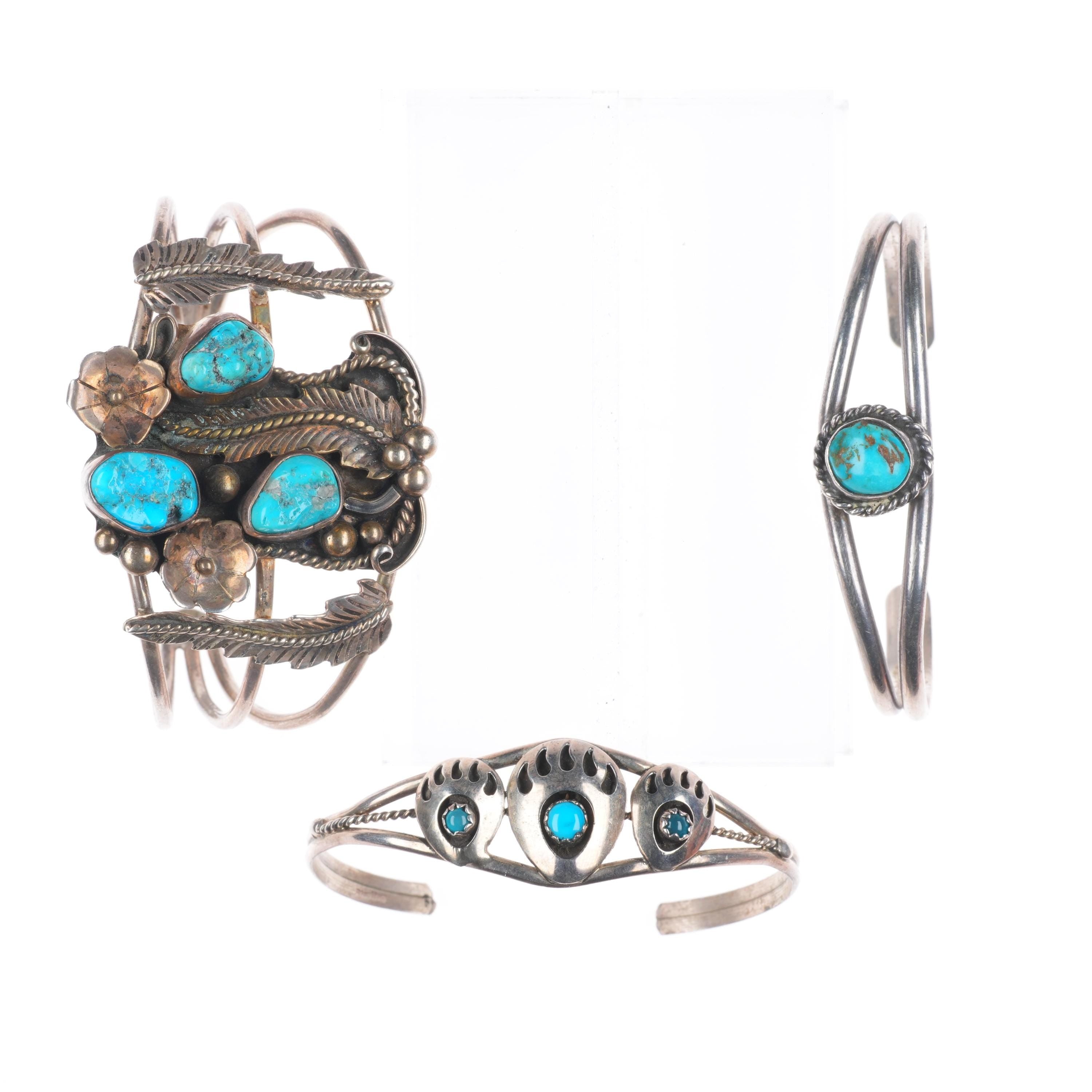 6.4" Jefferson James/other Navajo sterling silver turquoise cuff bracelet lot