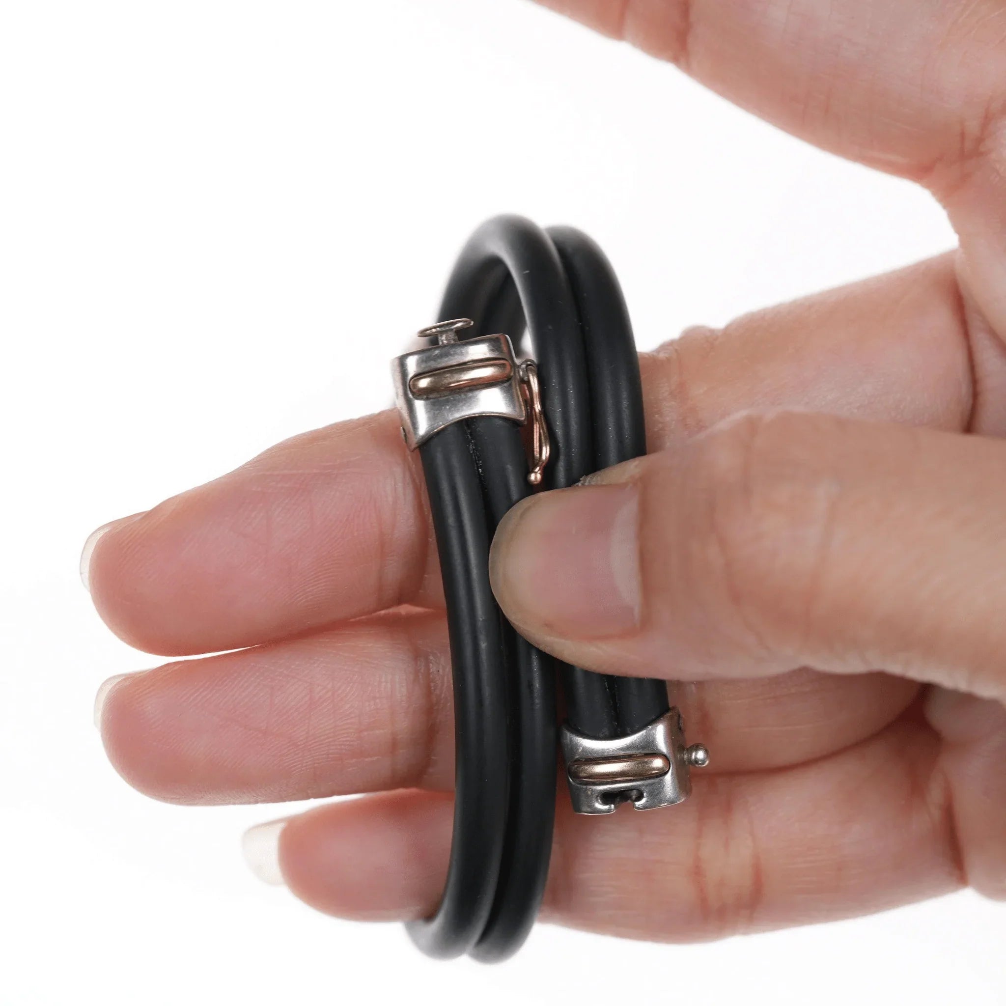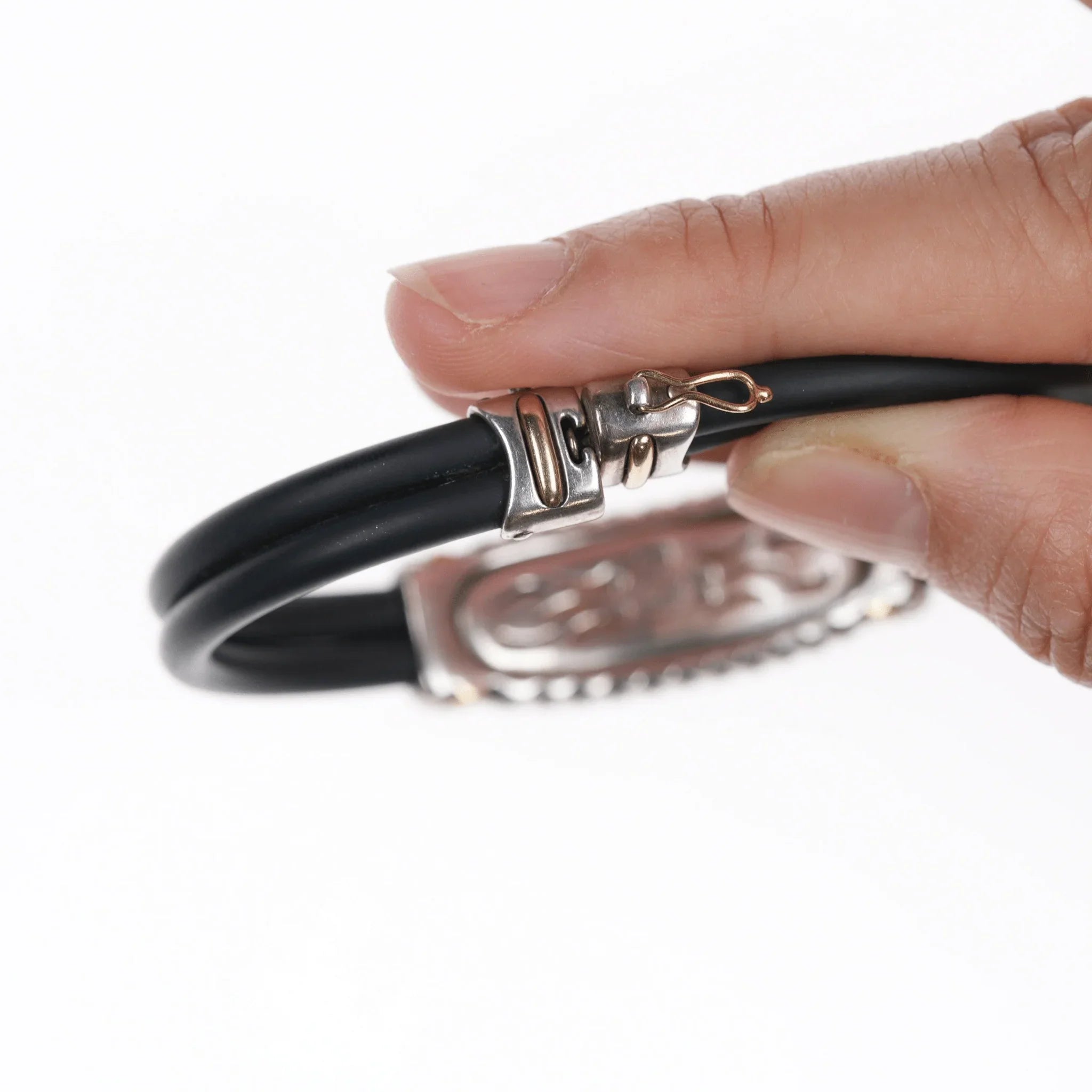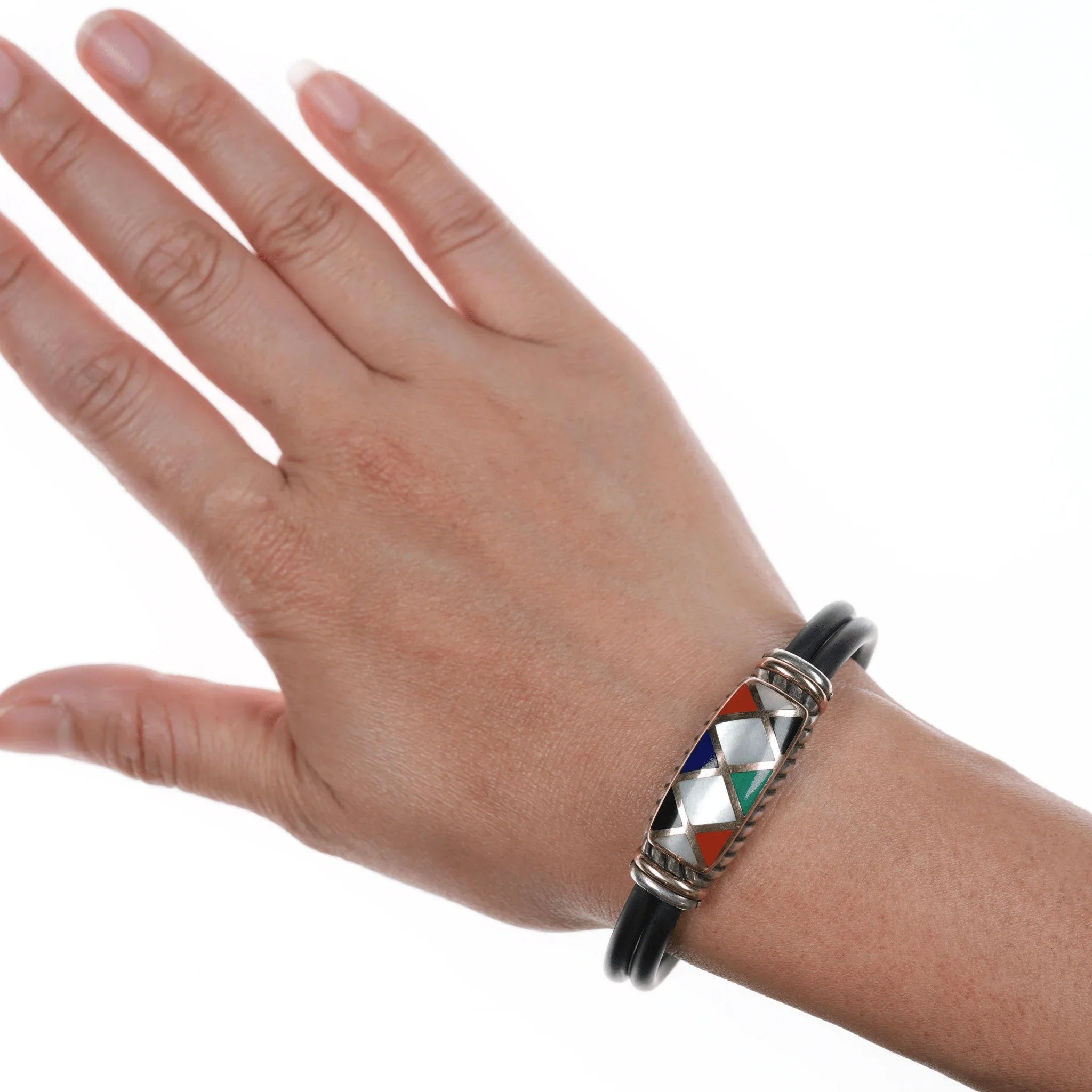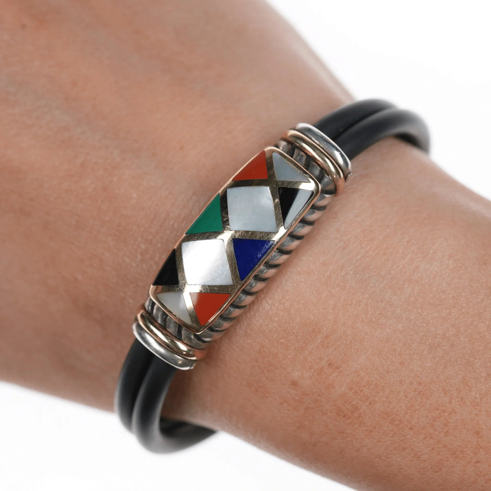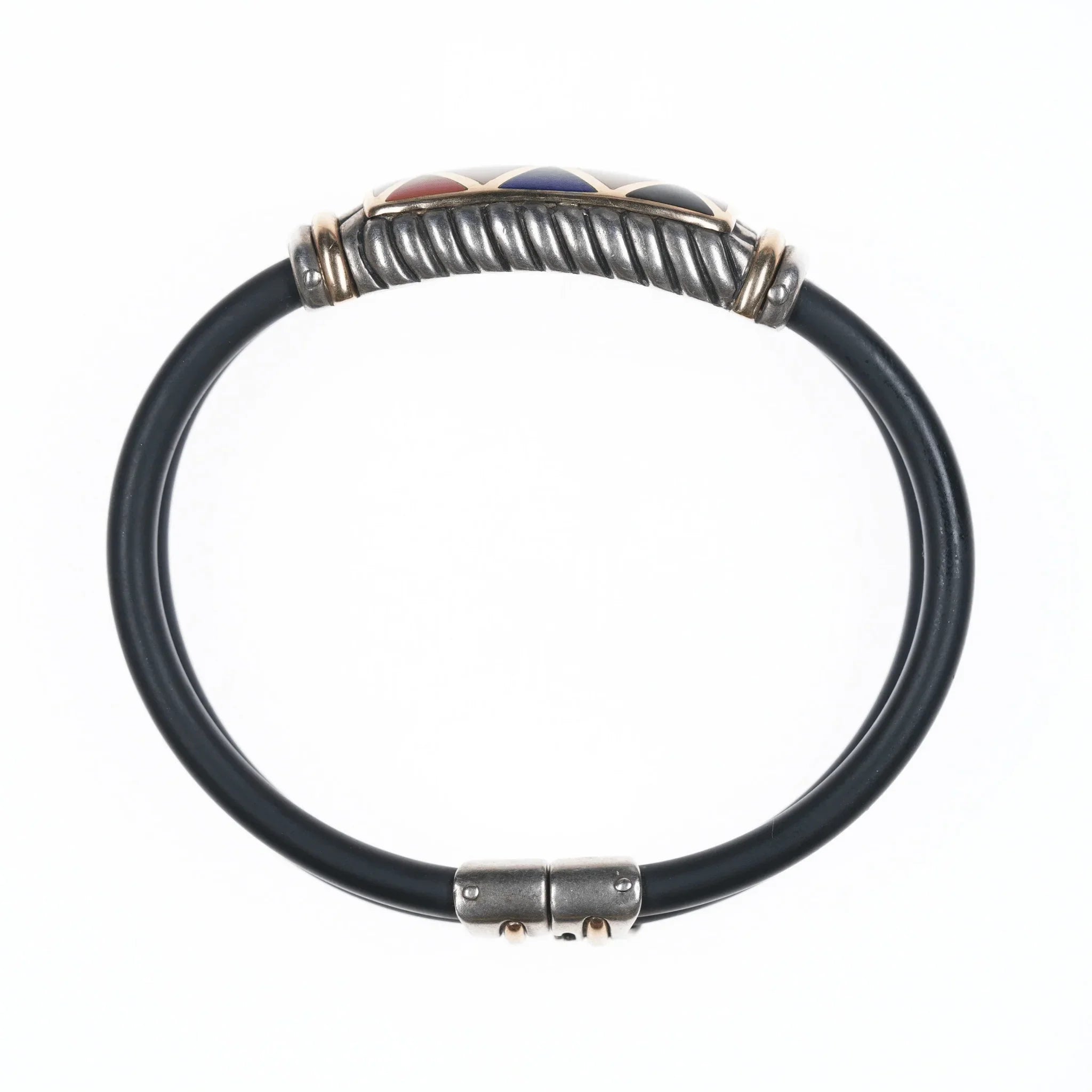 6.5" Asch Grossbardt 18k/Sterling Multi-stone inlay rubber band bracelet