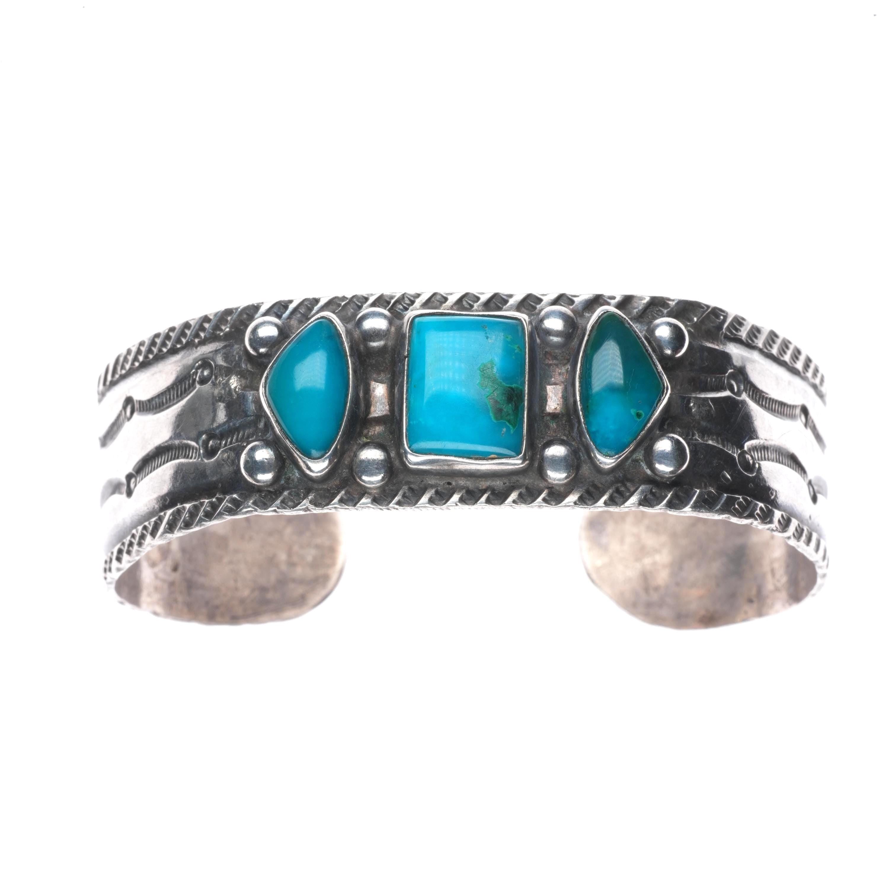 6.5" 20‘s-30‘s vintage Navajo Ingot silver Arizona Gem Silica cuff bracelet. Tested and guaranteed solid ingot/sterling silver with weight and measurements in pictures. Circa early second quarter of the 20th century with age appropriate wear..