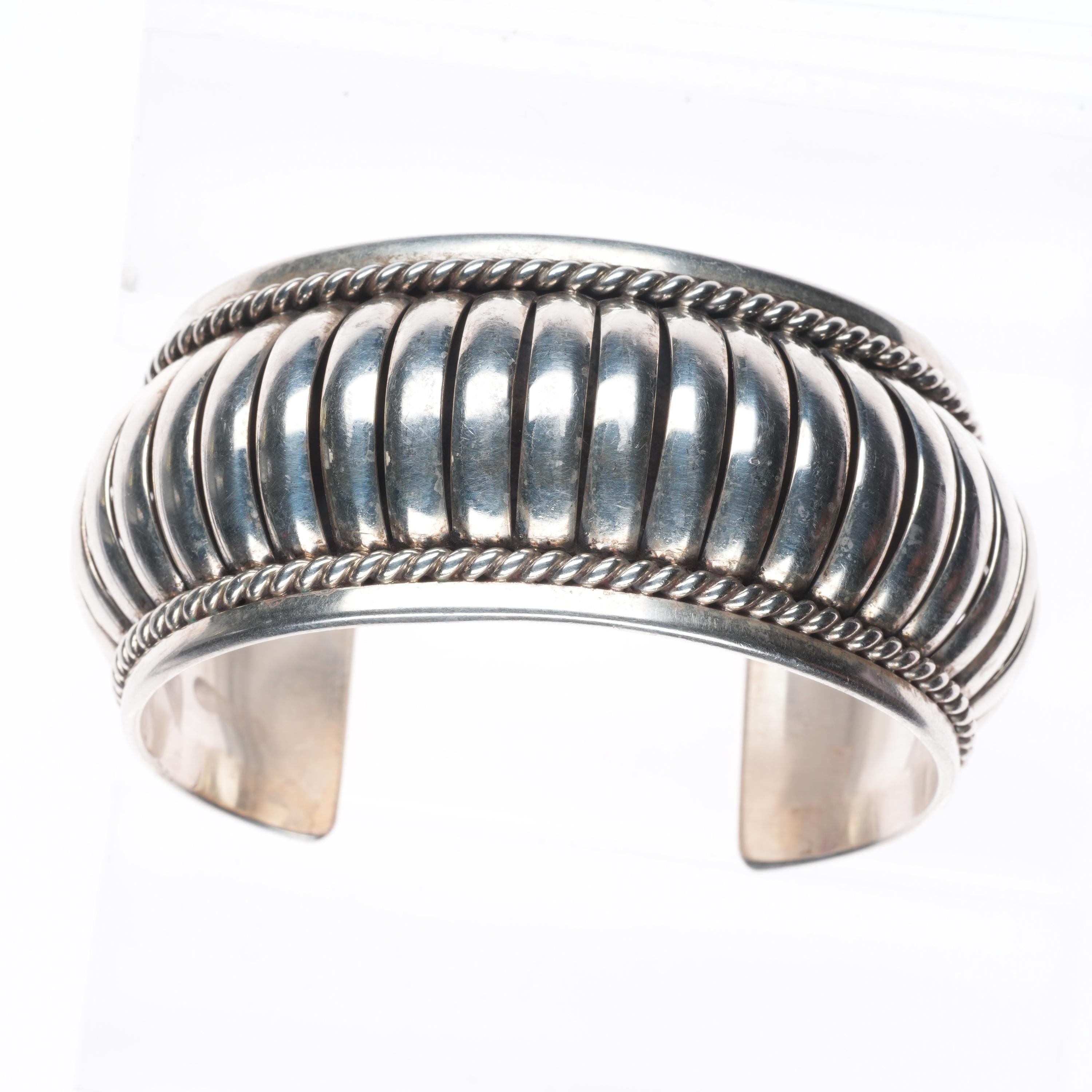6.5" Thomas Charley Navajo sterling silver segmented melon cuff bracelet Tested and guaranteed solid sterling silver with weight and measurements in pictures. Fits up to a 6.5" wrist.
