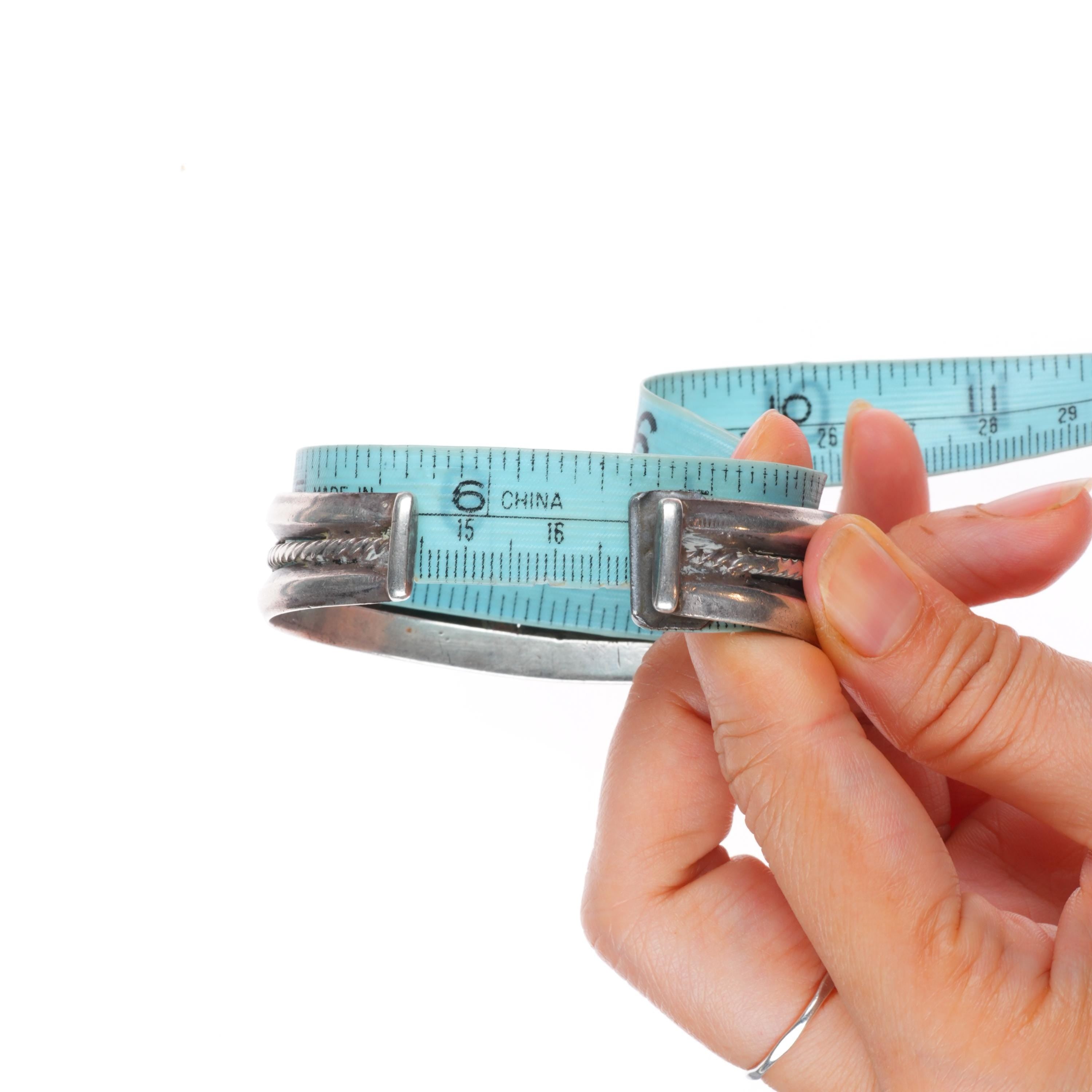 Bracelets are shown in the photos with a tape measure inside the bracelet, other photos will typically show the gap size. The size at the beginning of the title includes the gap. Almost all bracelets that don‘t have inlay work should be adjustable by at least .25", please refer to pictures for the gap size to see if it would work if slightly adjusted as the gap would change.
