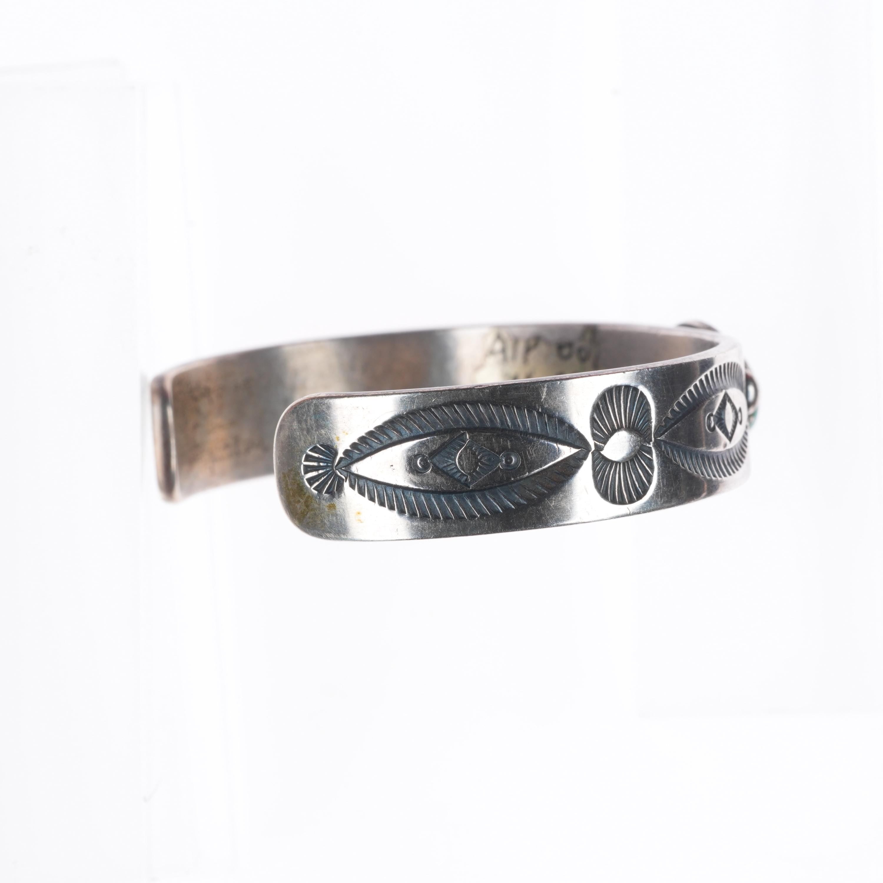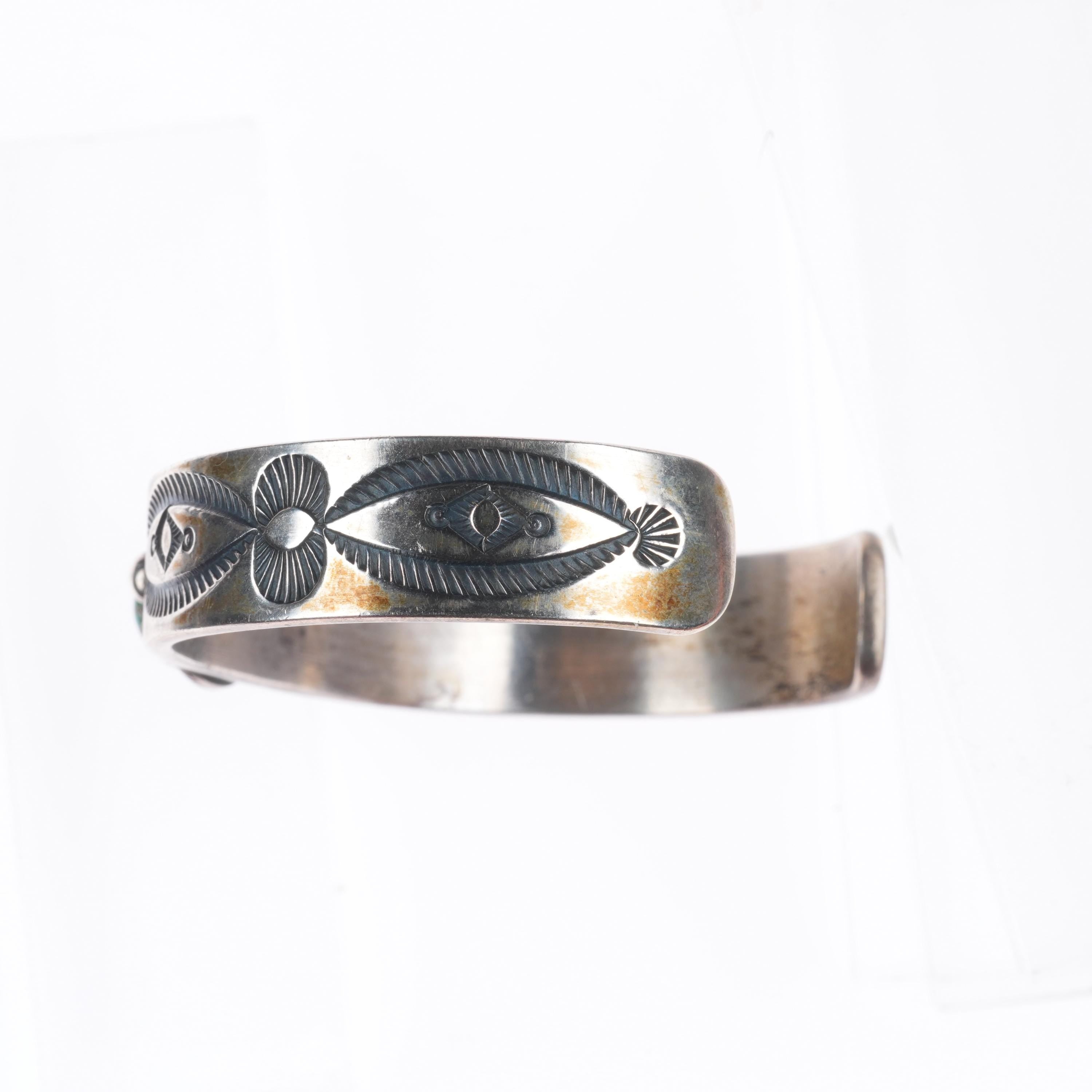 6.6" Robert Chee Navajo deep stamped sterling silver cuff bracelet w/turquoise. Tested and guaranteed solid sterling silver with weight and measurements in pictures. Great condition with age appropriate wear, last quarter of the 20th century.