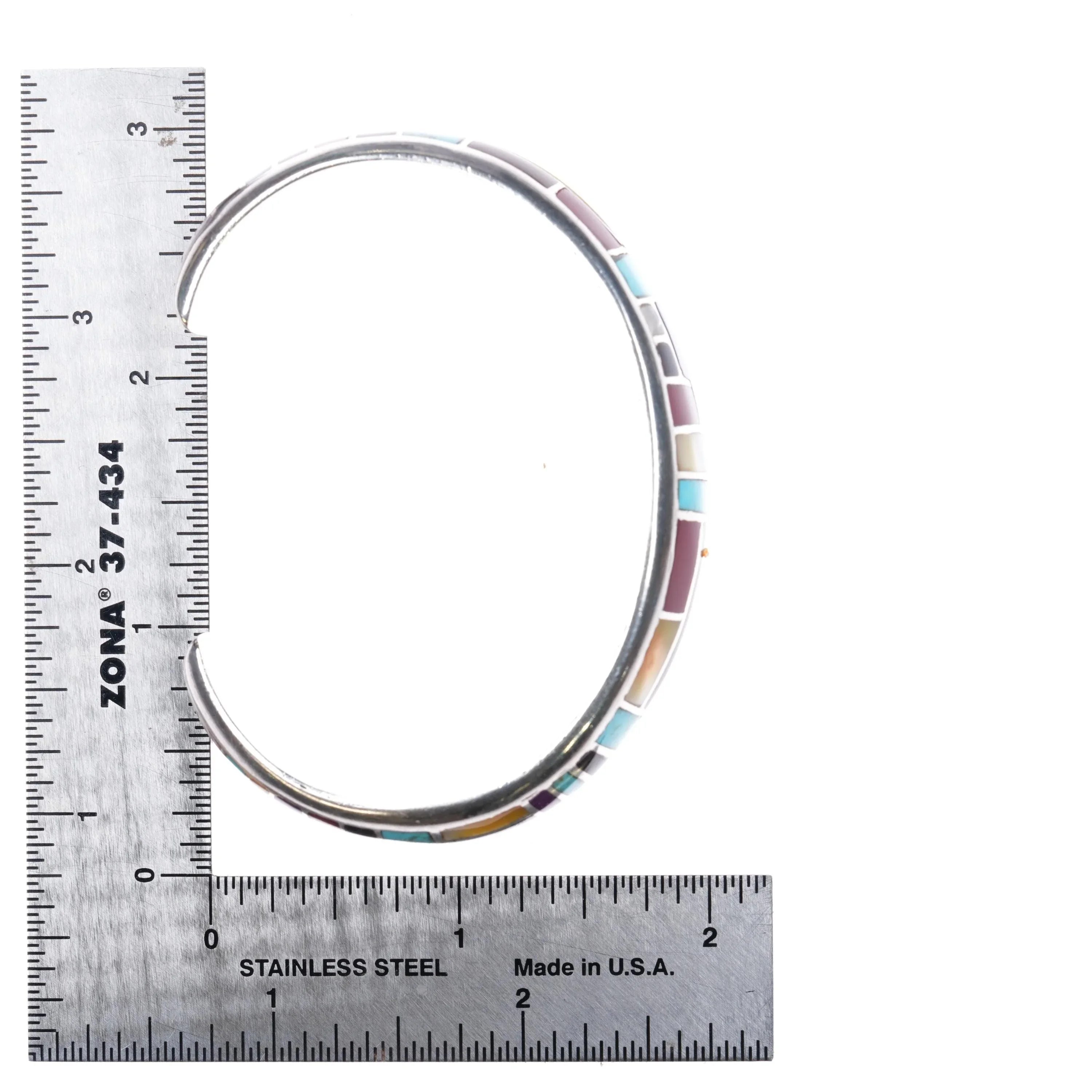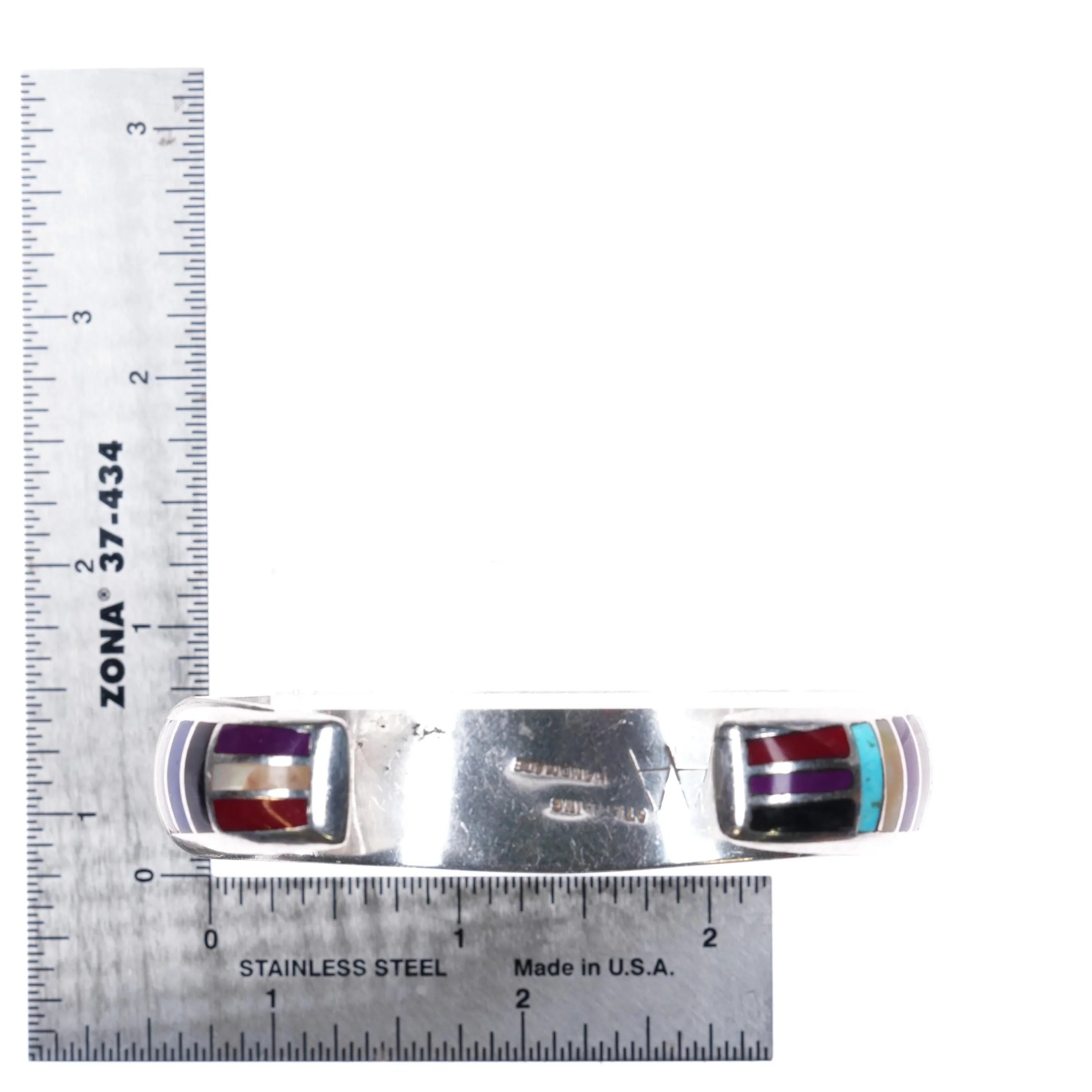 6.7" AA Southwestern sterling silver multi-stone/shell inlay cuff bracelet. Tested and guaranteed solid sterling silver with the markings shown. Weight and measurements in pictures. Some expected wear, no cracks or breaks. Very sturdy. Circa 1990‘s, unknown, unresearched maker.