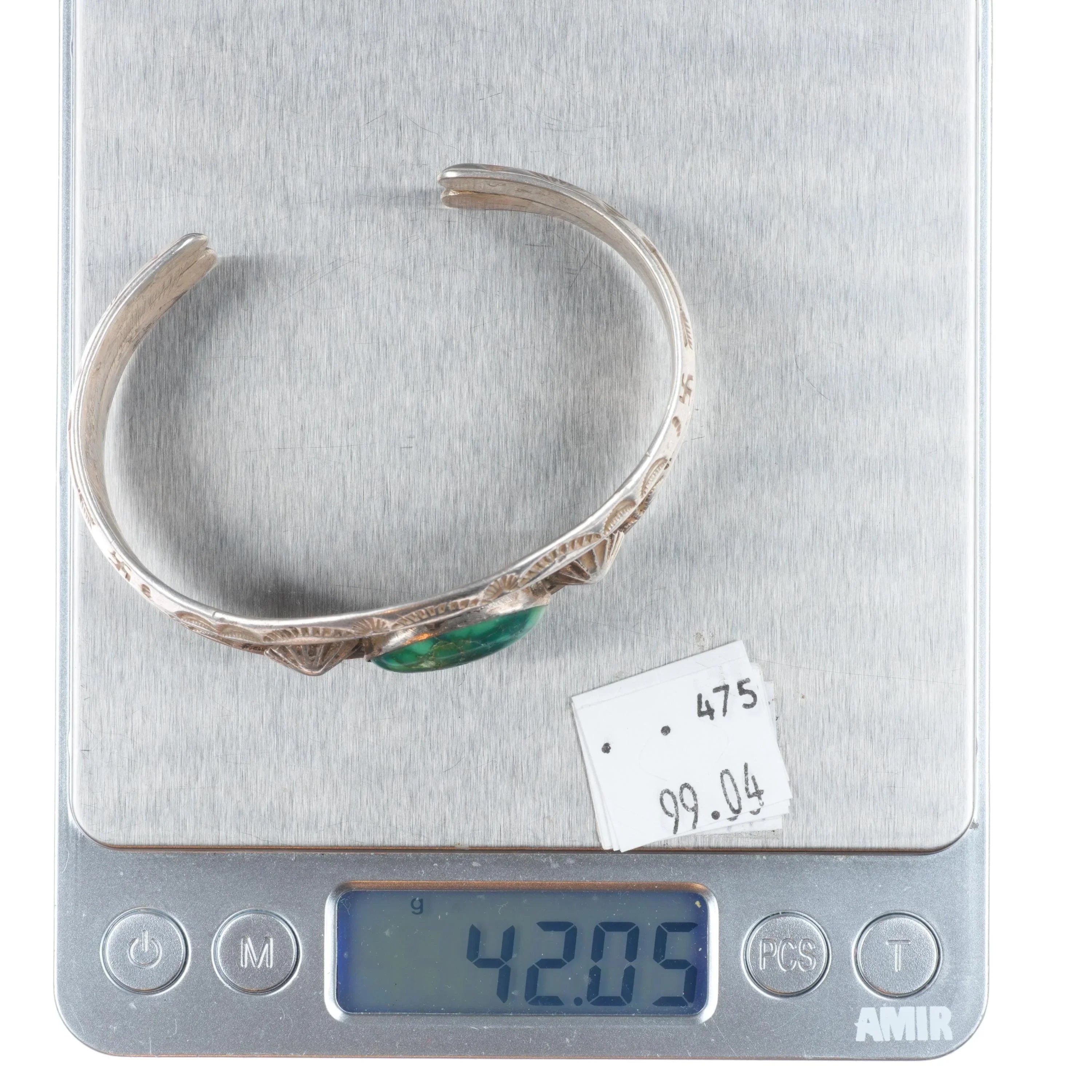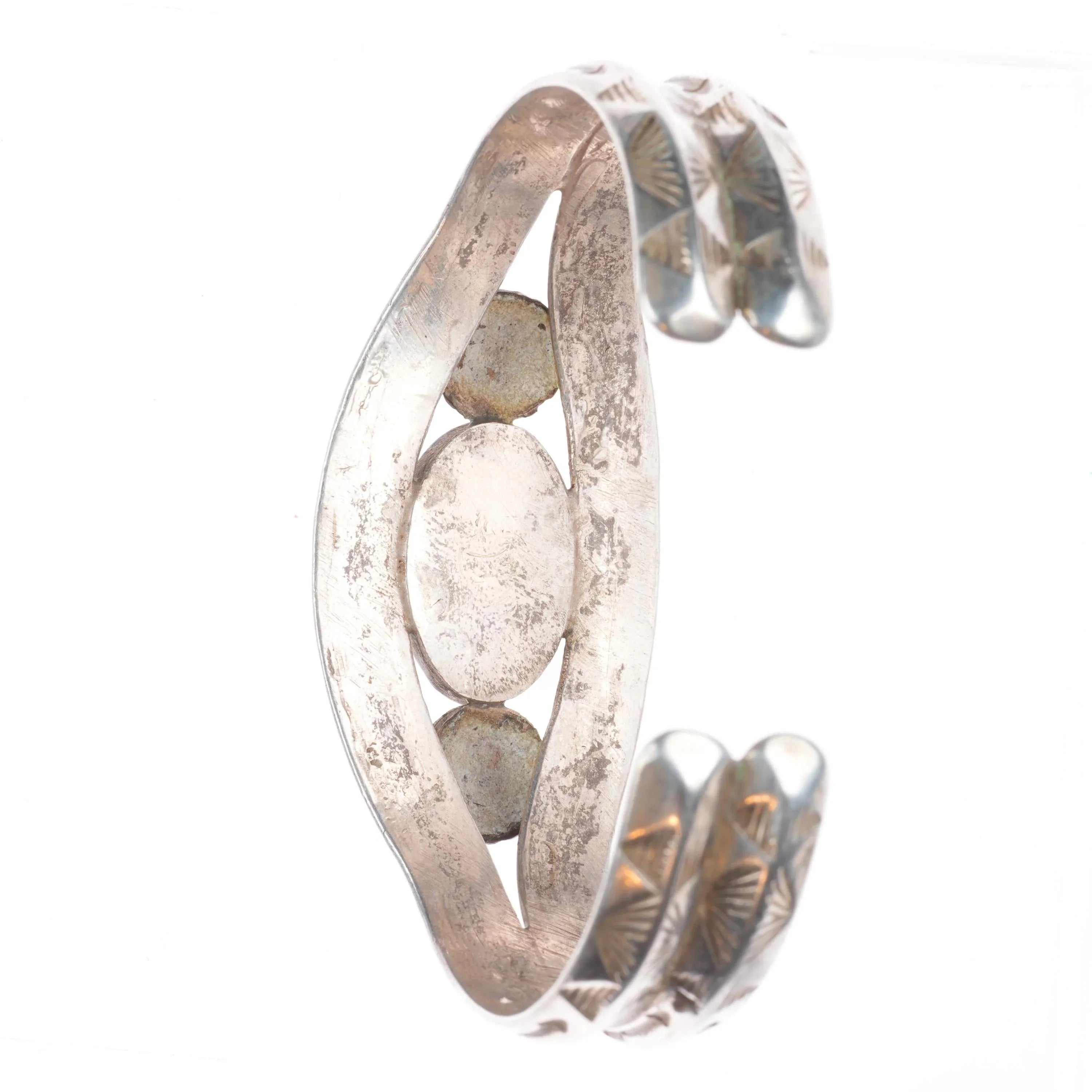 6.75" 20's-30's Navajo ingot silver whirling logs/arrows turquoise cuff bracelet
