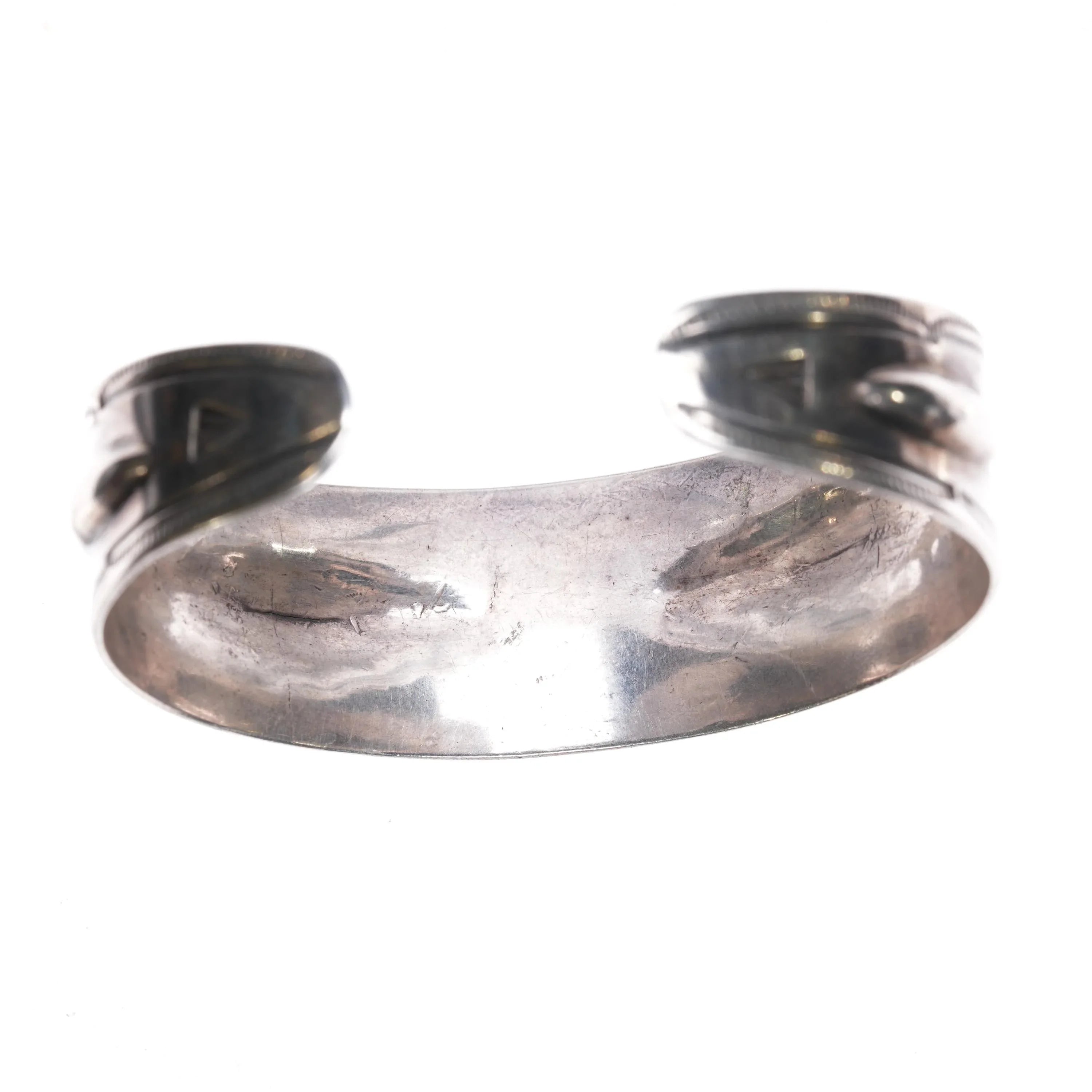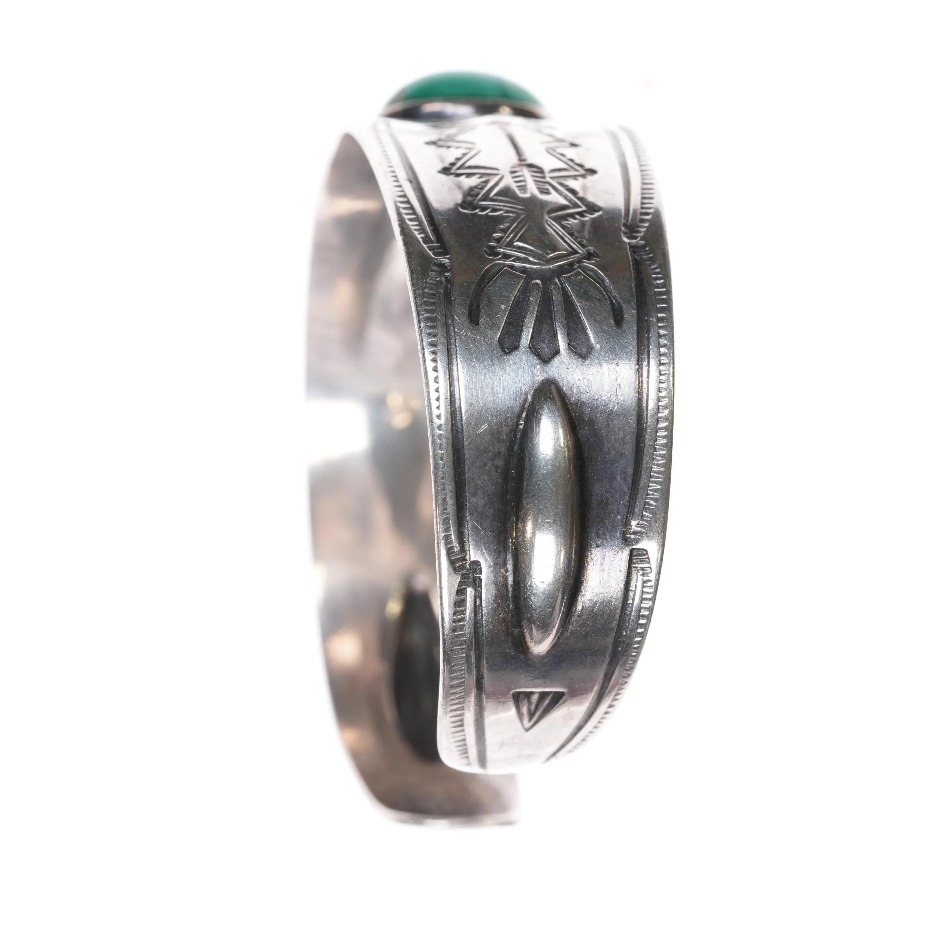6.75" 30's-40's Navajo silver repousse hand stamped cuff bracelet with turquoise