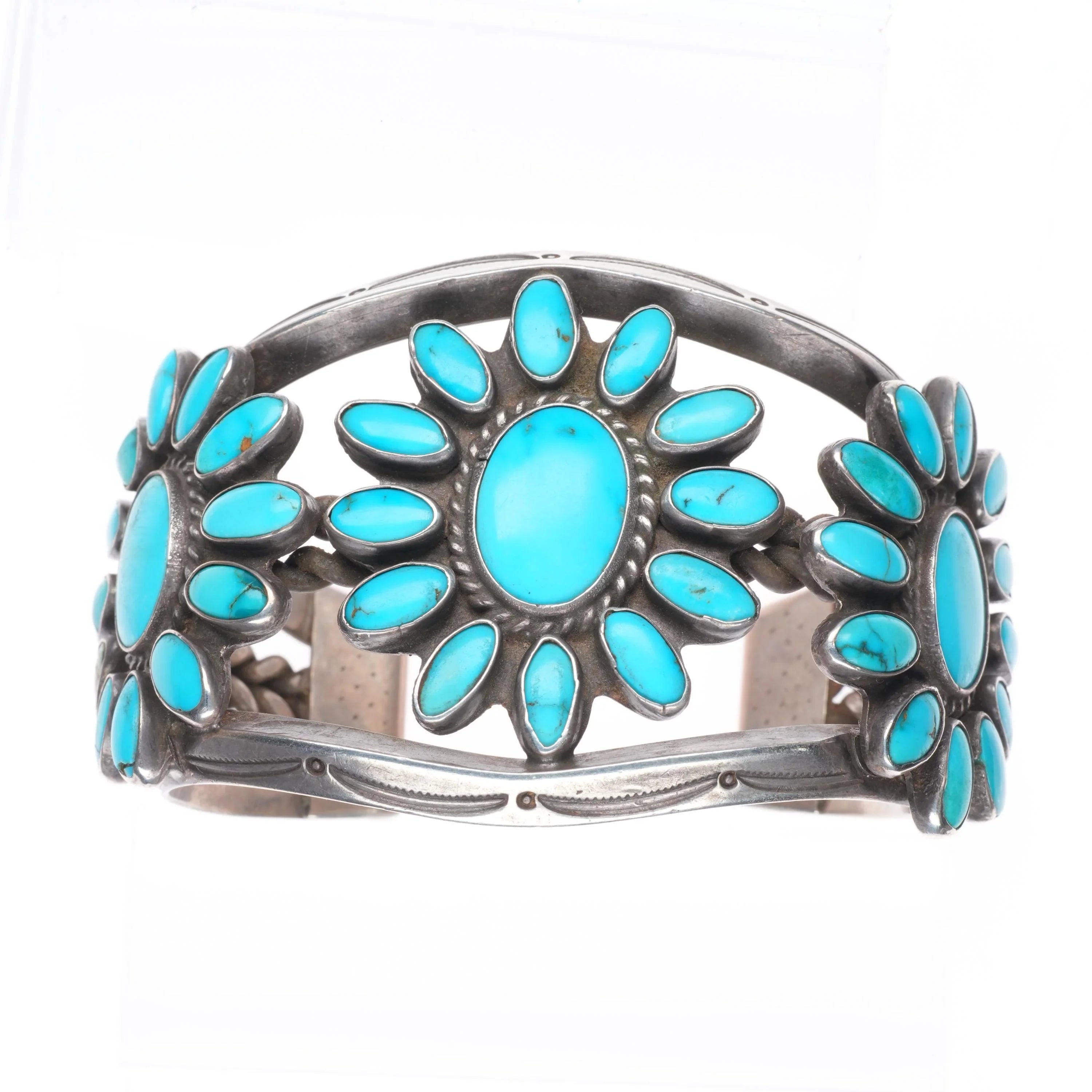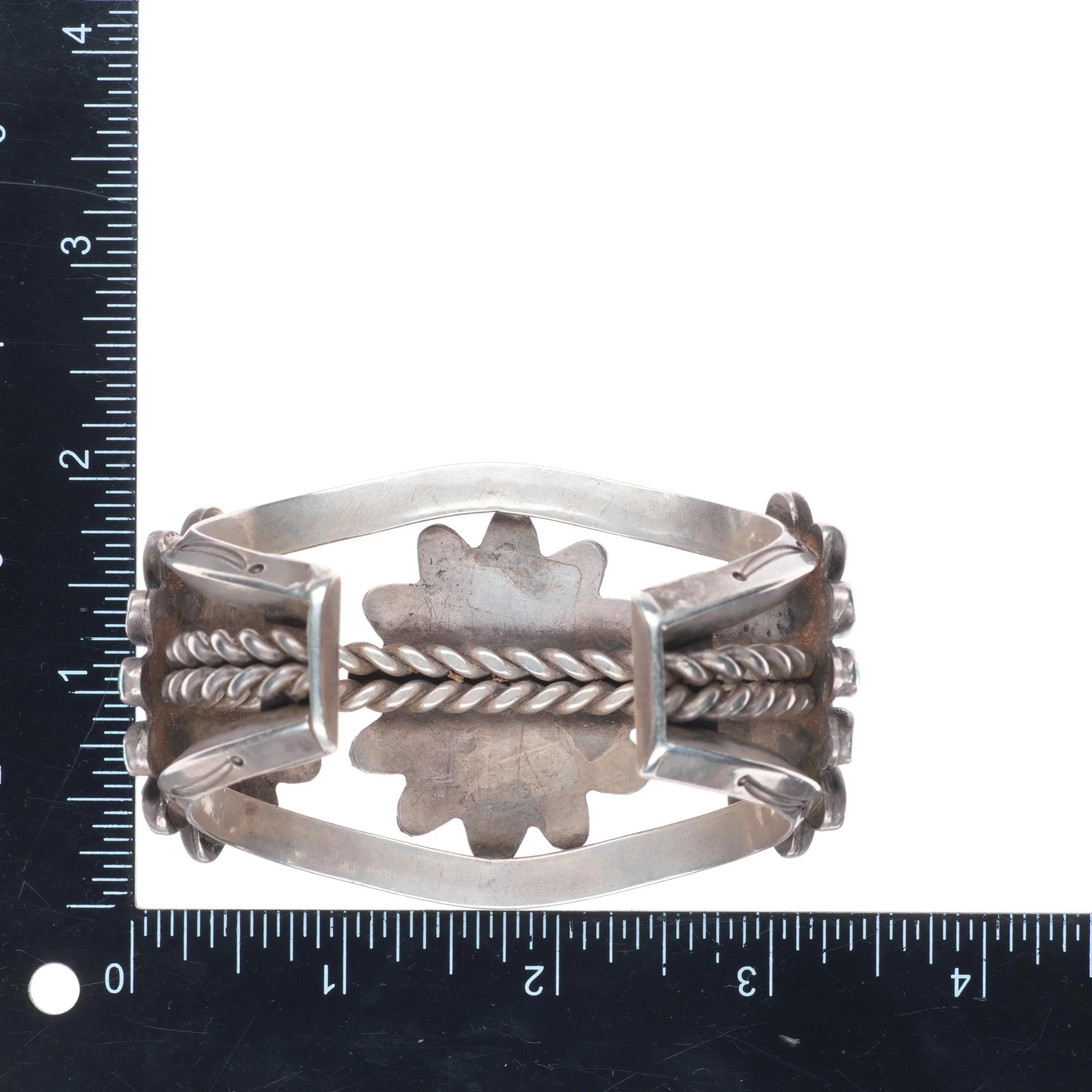 6.75" 30's-40's Navajo turquoise cluster vintage cuff bracelet sterling silver