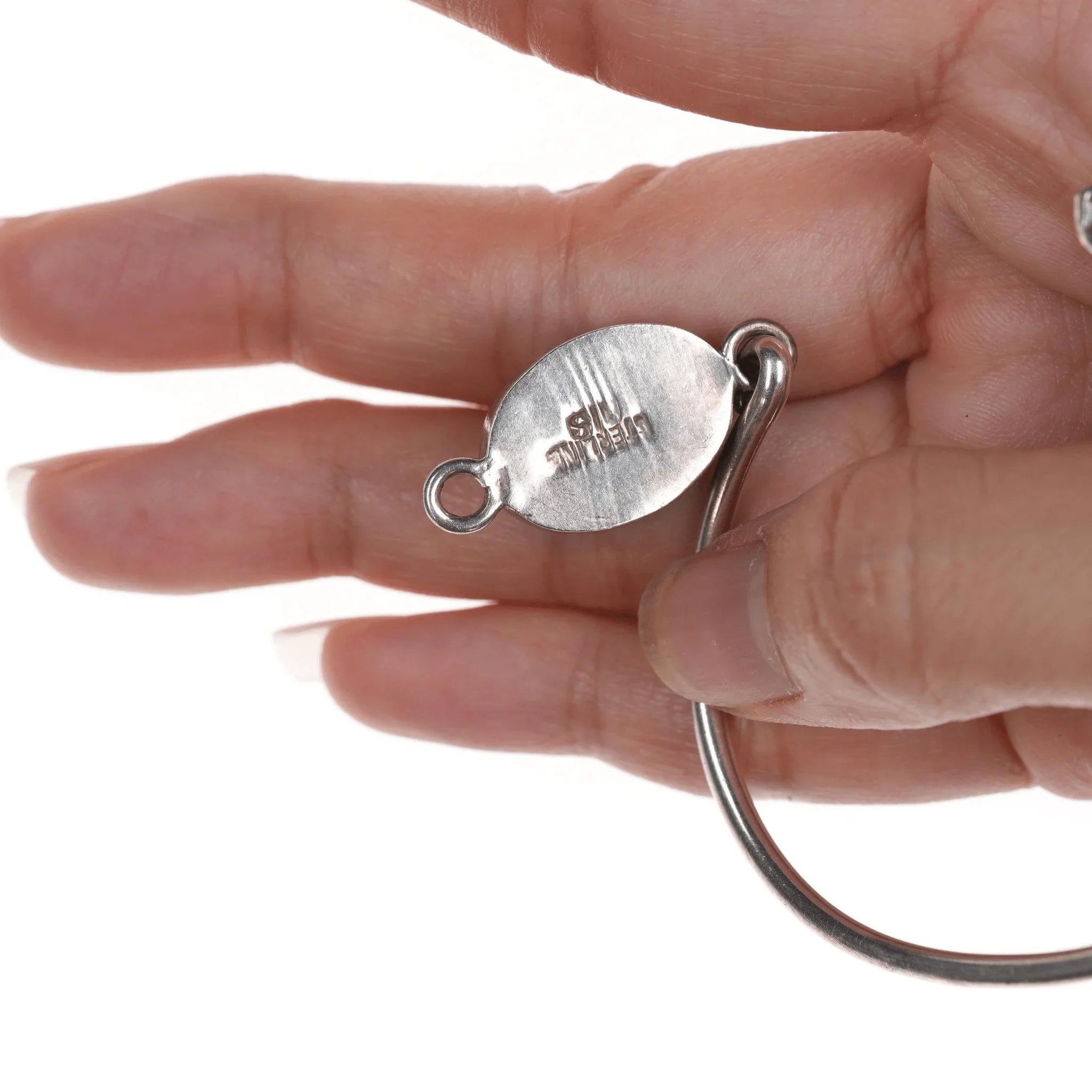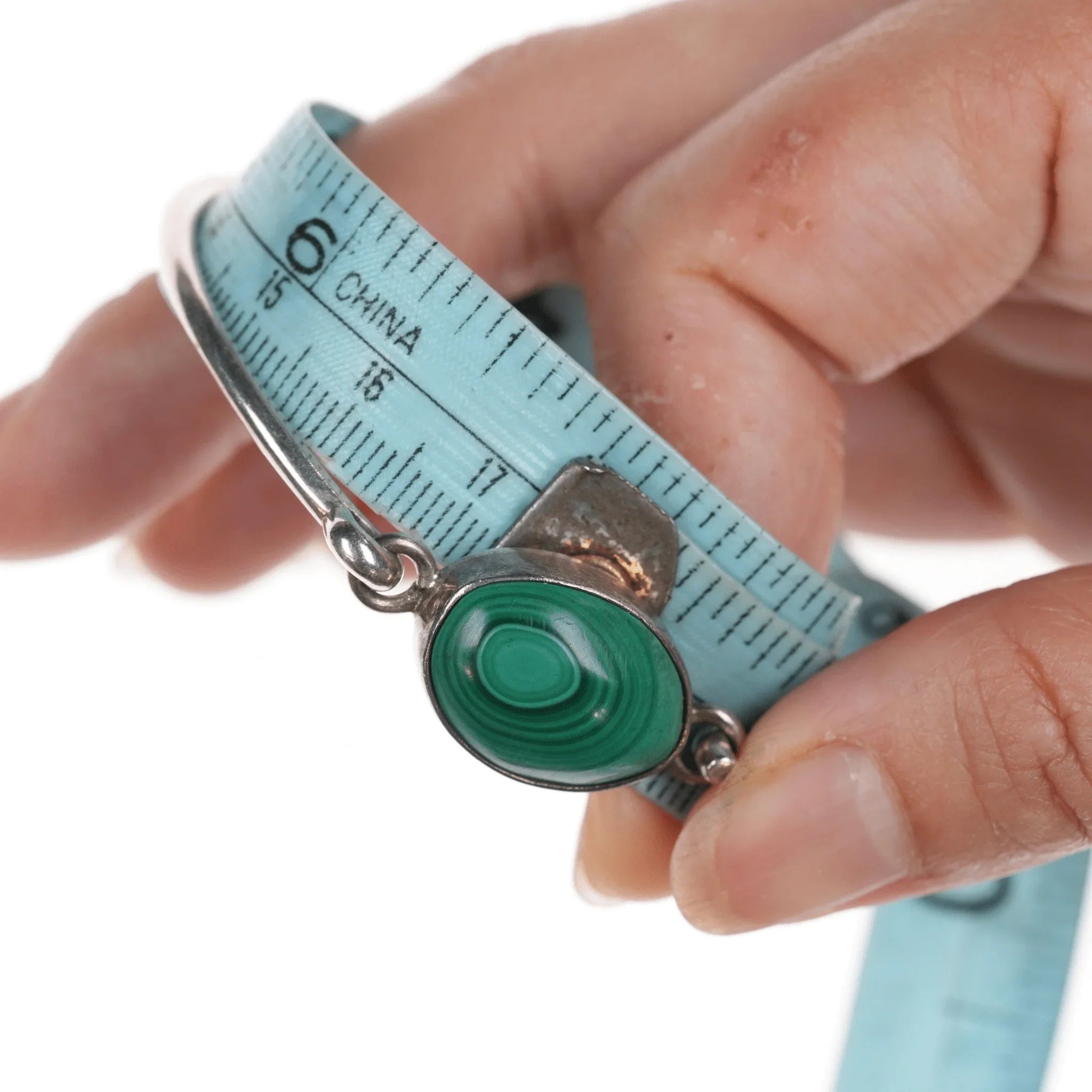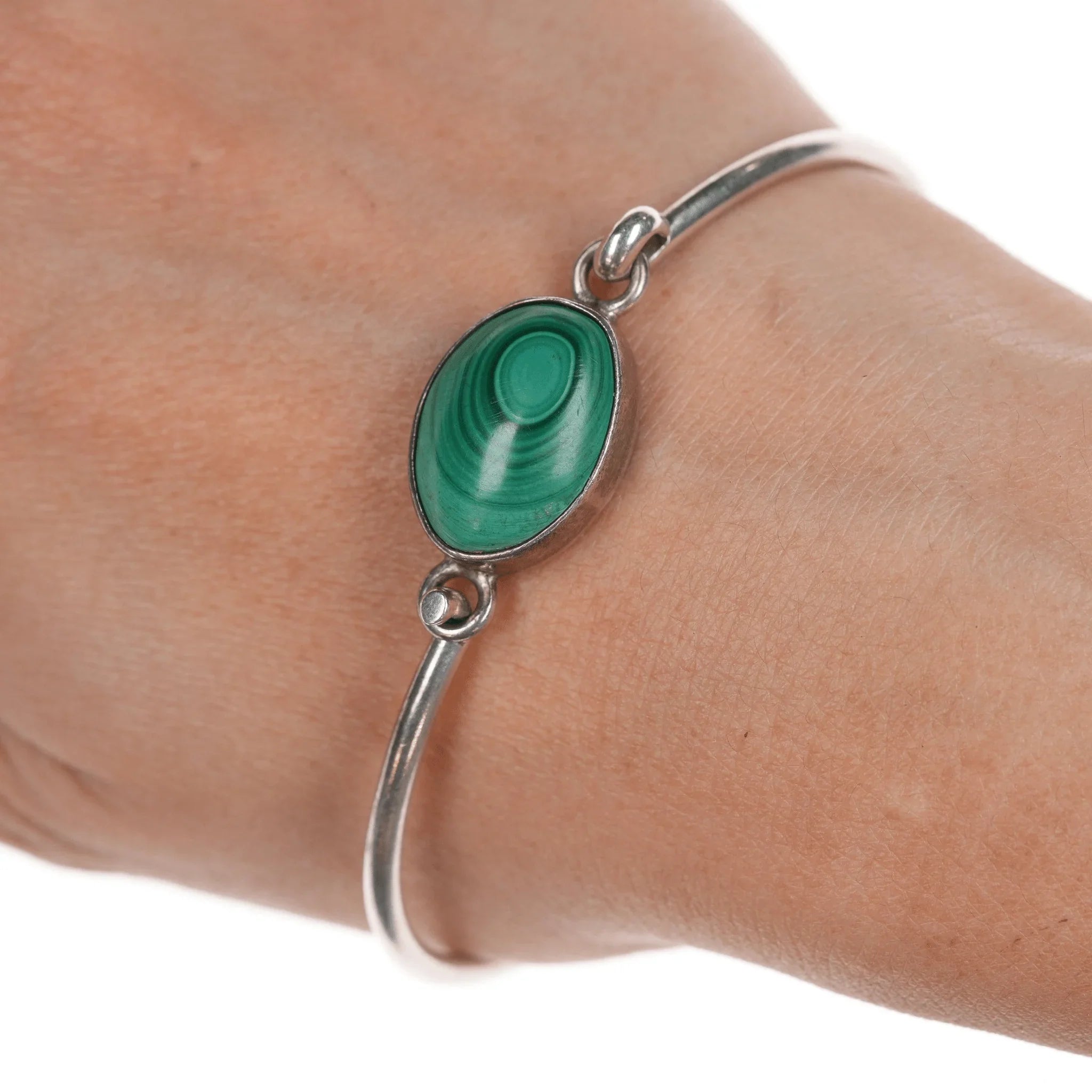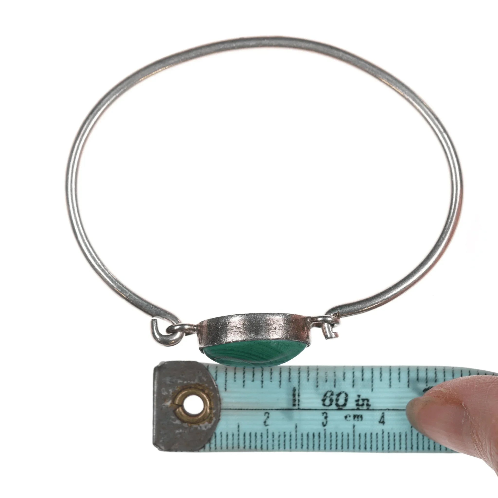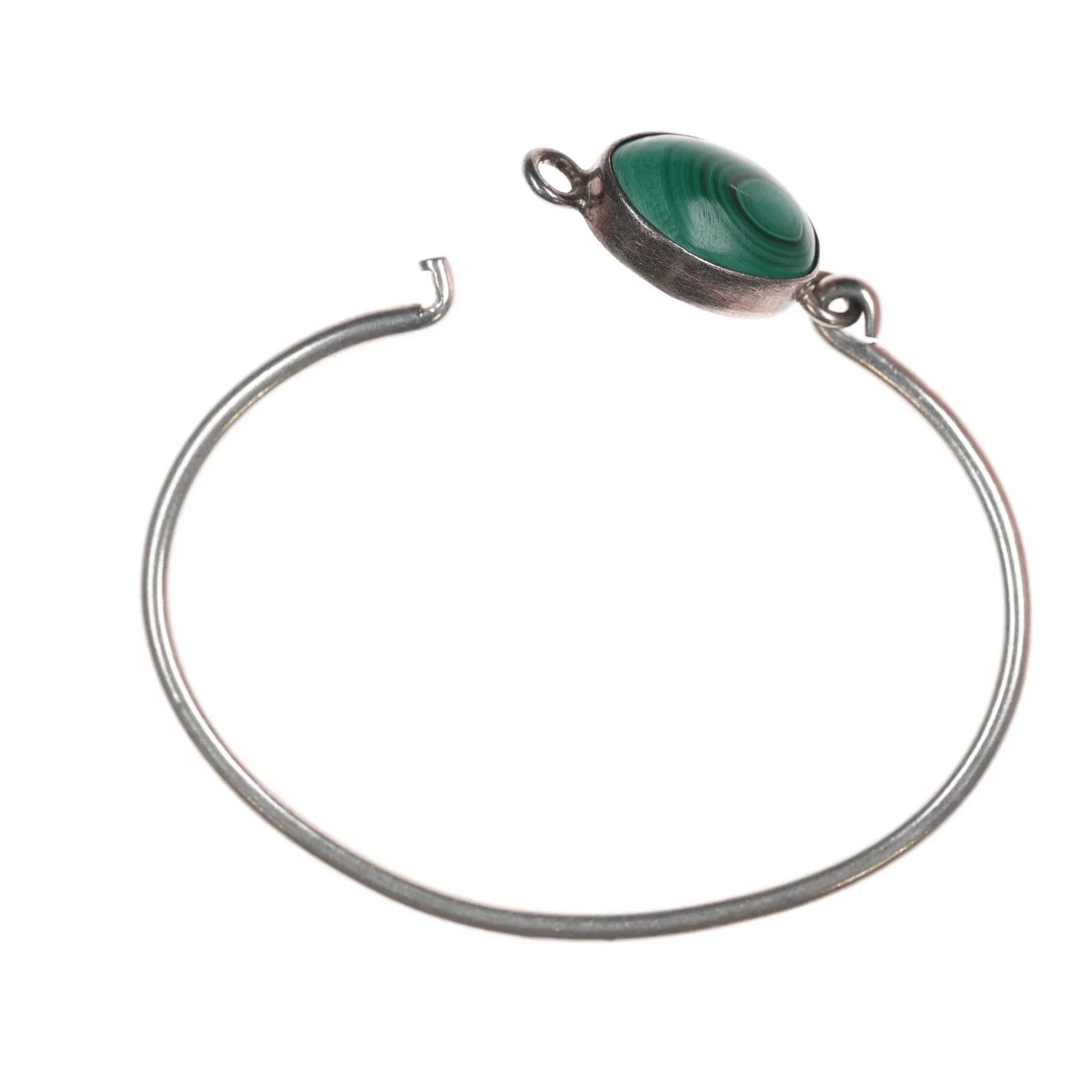 6.75" Retro Sterling and malachite bangle bracelet
