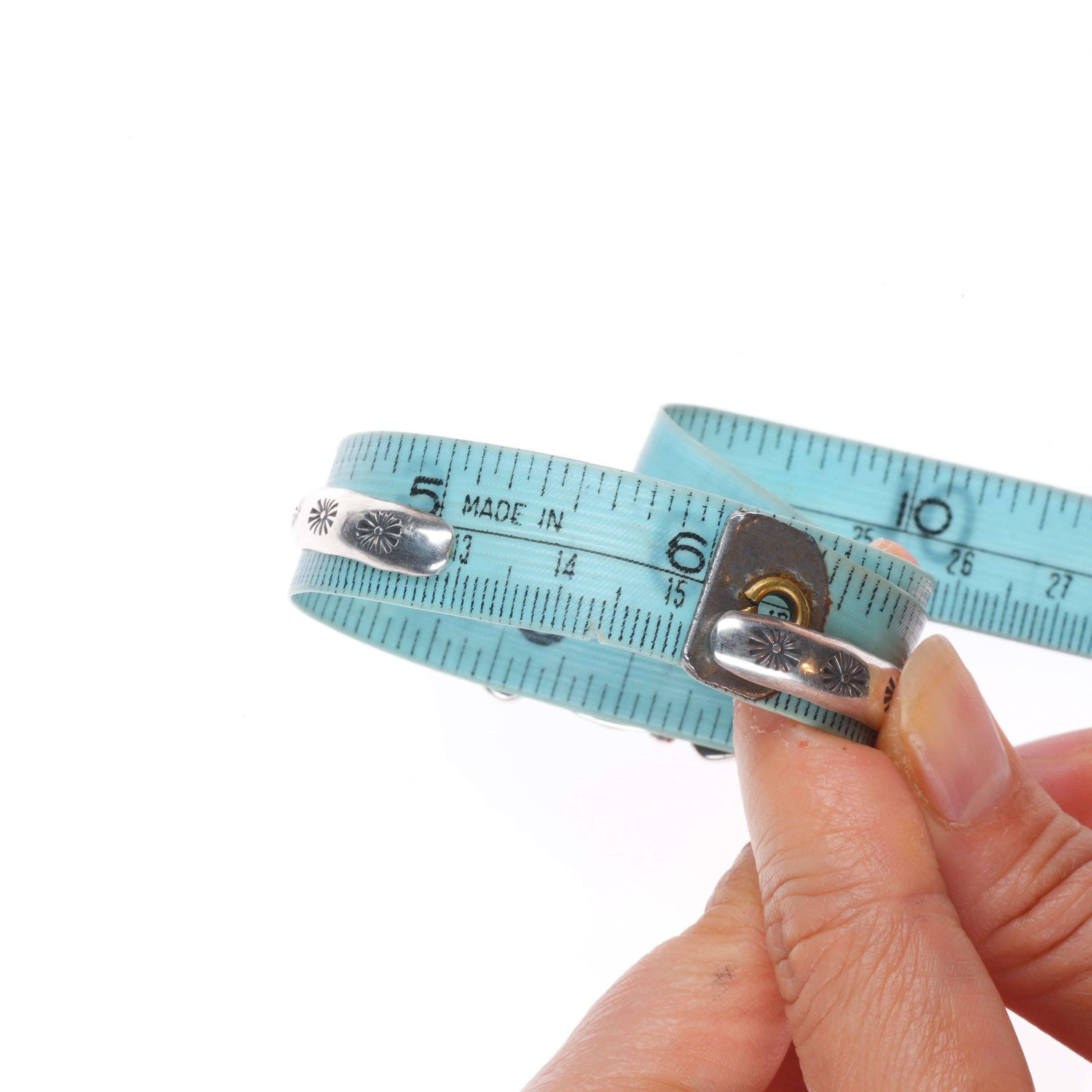 Bracelets are shown in the photos with a tape measure inside the bracelet, other photos will typically show the gap size. The size at the beginning of the title includes the gap.