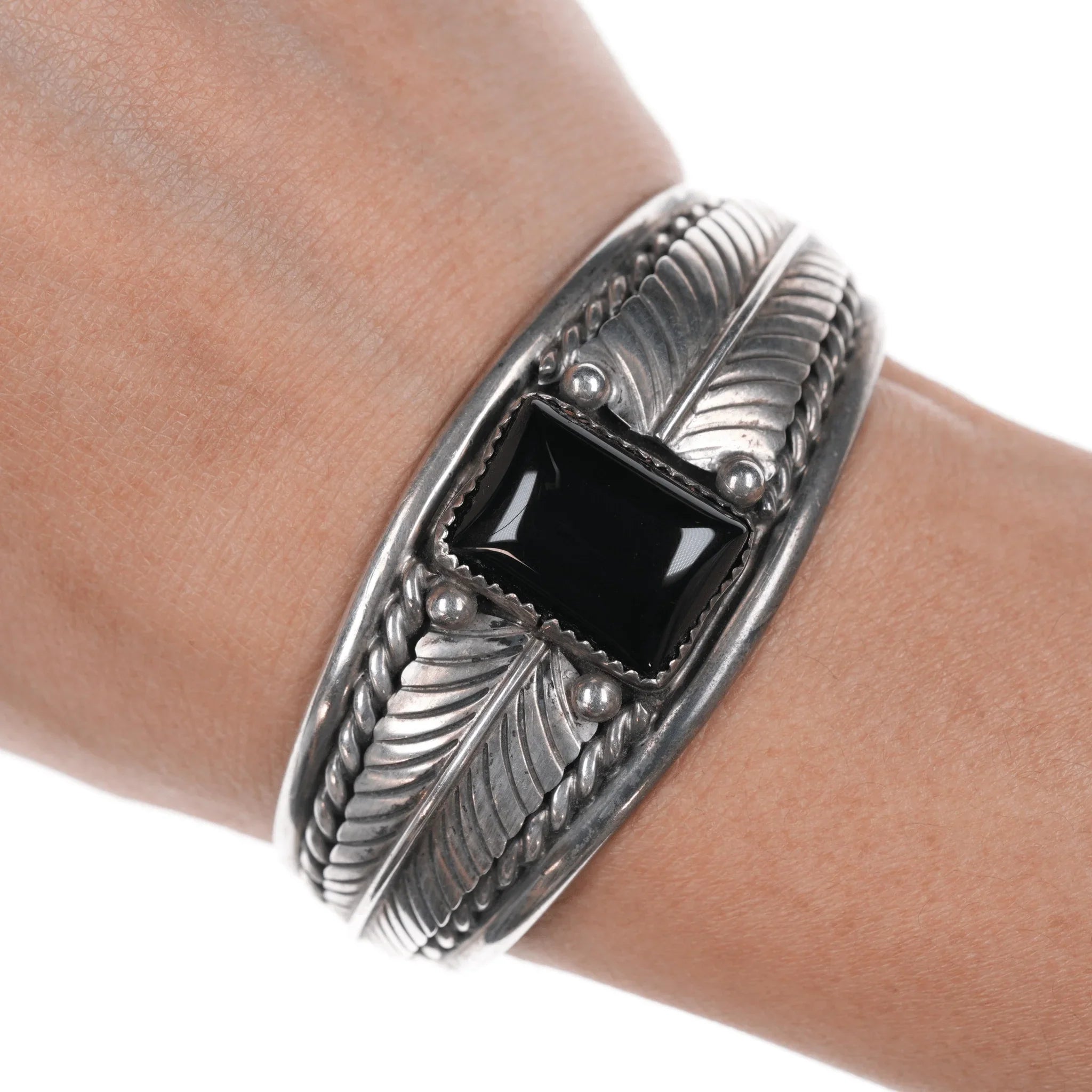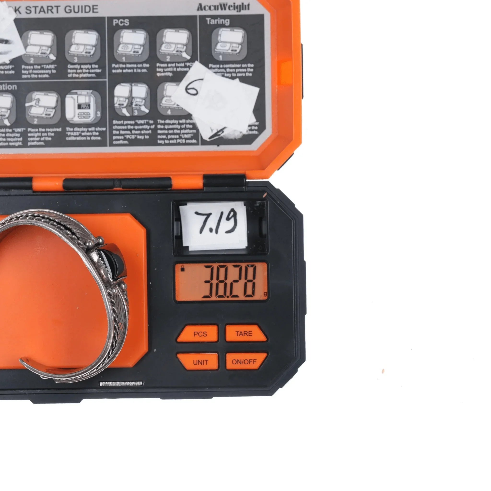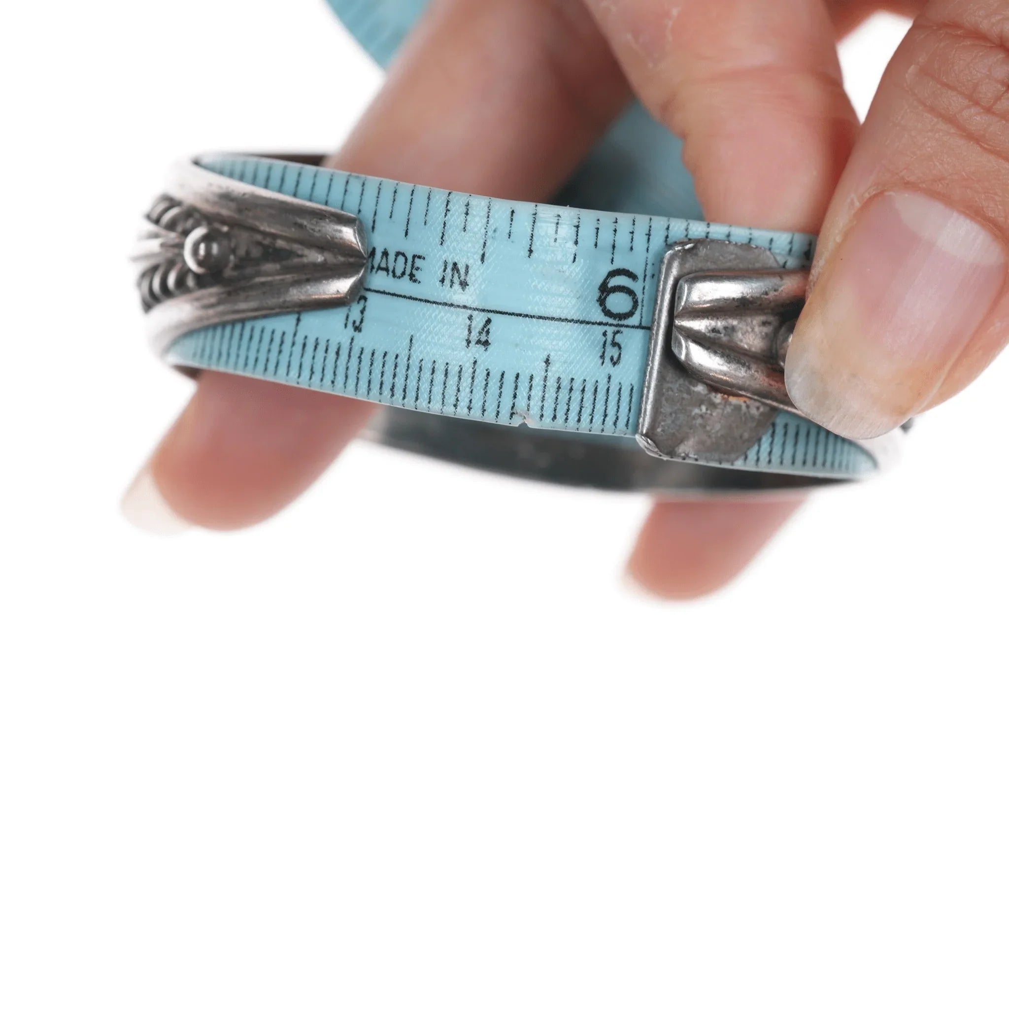 All precious metals are tested and guaranteed. A Native American jewelry piece referred to as "silver" or "ingot" is guaranteed to be at least 90% silver. I rarely use the word "sterling" when referring to older Native American silver or really any older silver jewelry as silver contents vary and "sterling" is 92.5% silver. No older jewelry is going to be exactly 92.5% silver, some a little over, some a little under. It wasn't an exact thing with handmade jewelry. I've seen thousands of pieces xrf'd to prove this. Bracelets are photographed on a 6" women's wrist.
