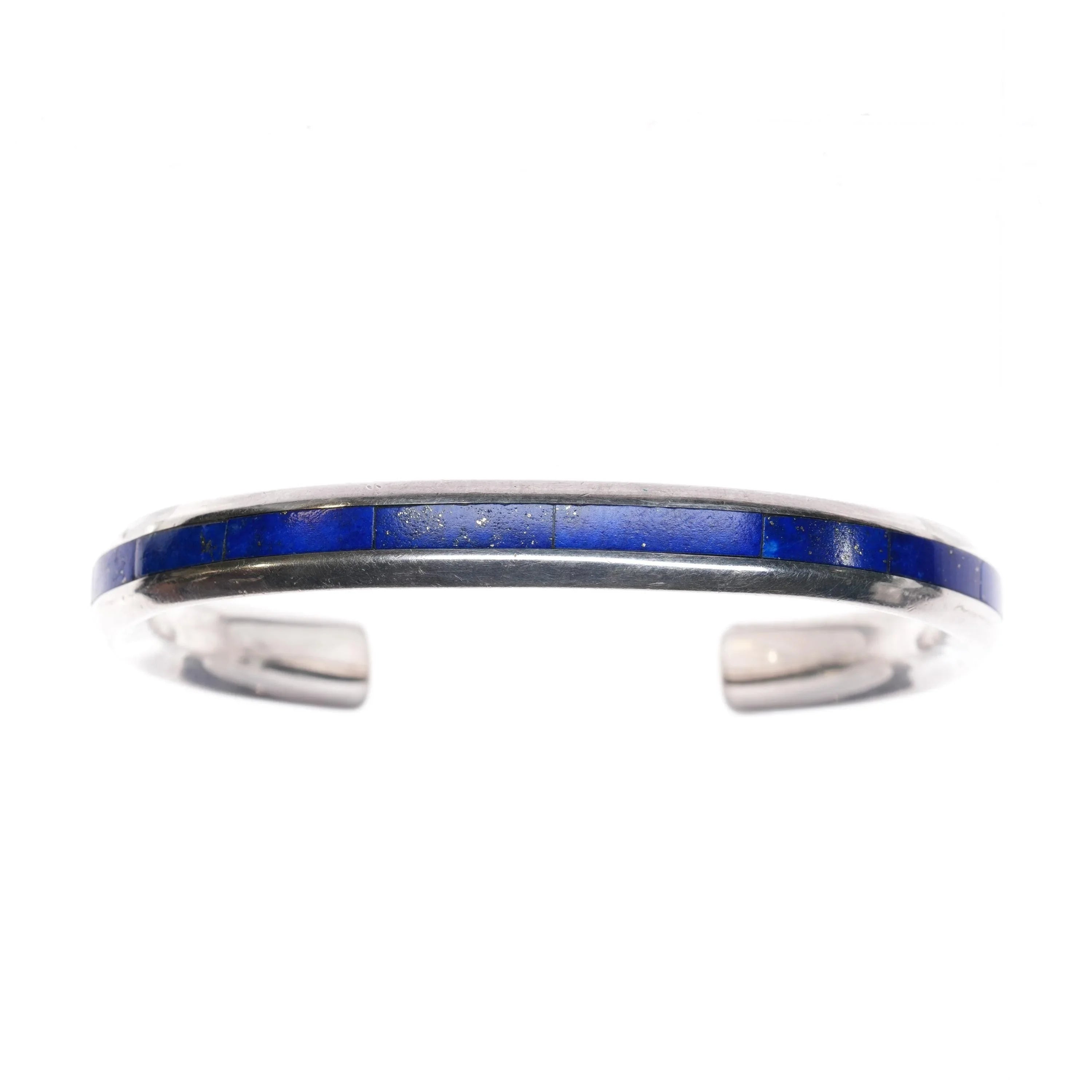 6" Troy Natachu Zuni sterling lapis inlay cuff bracelet