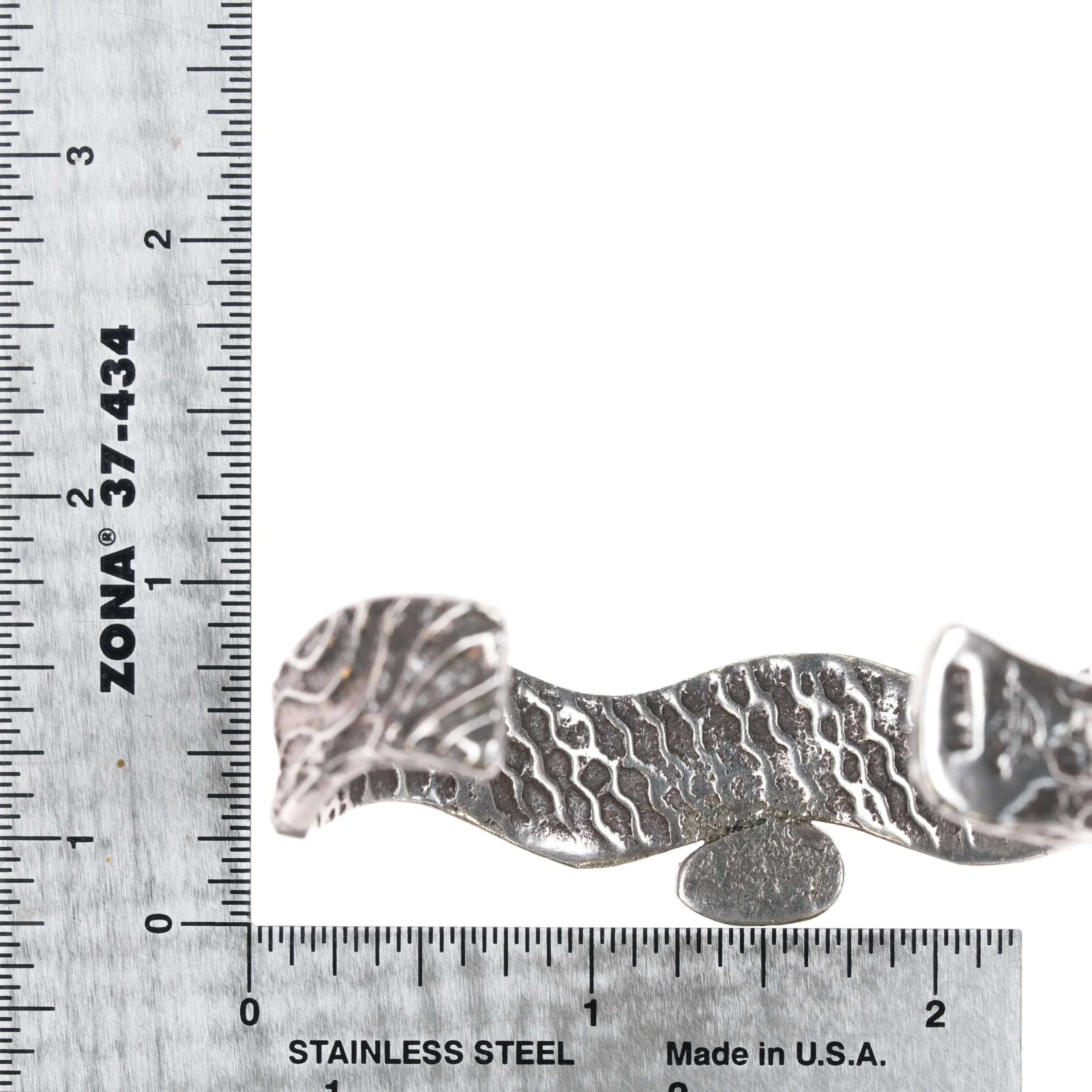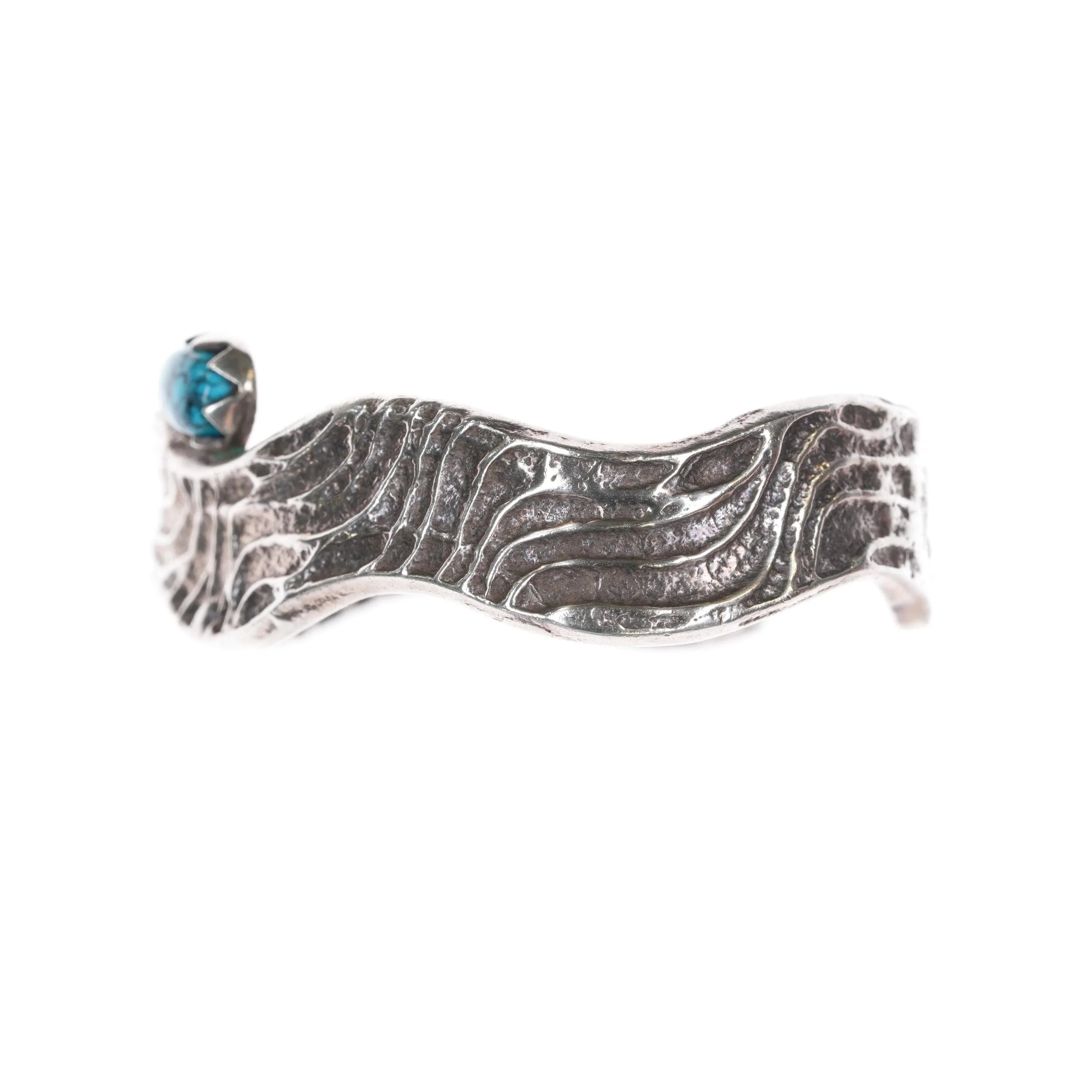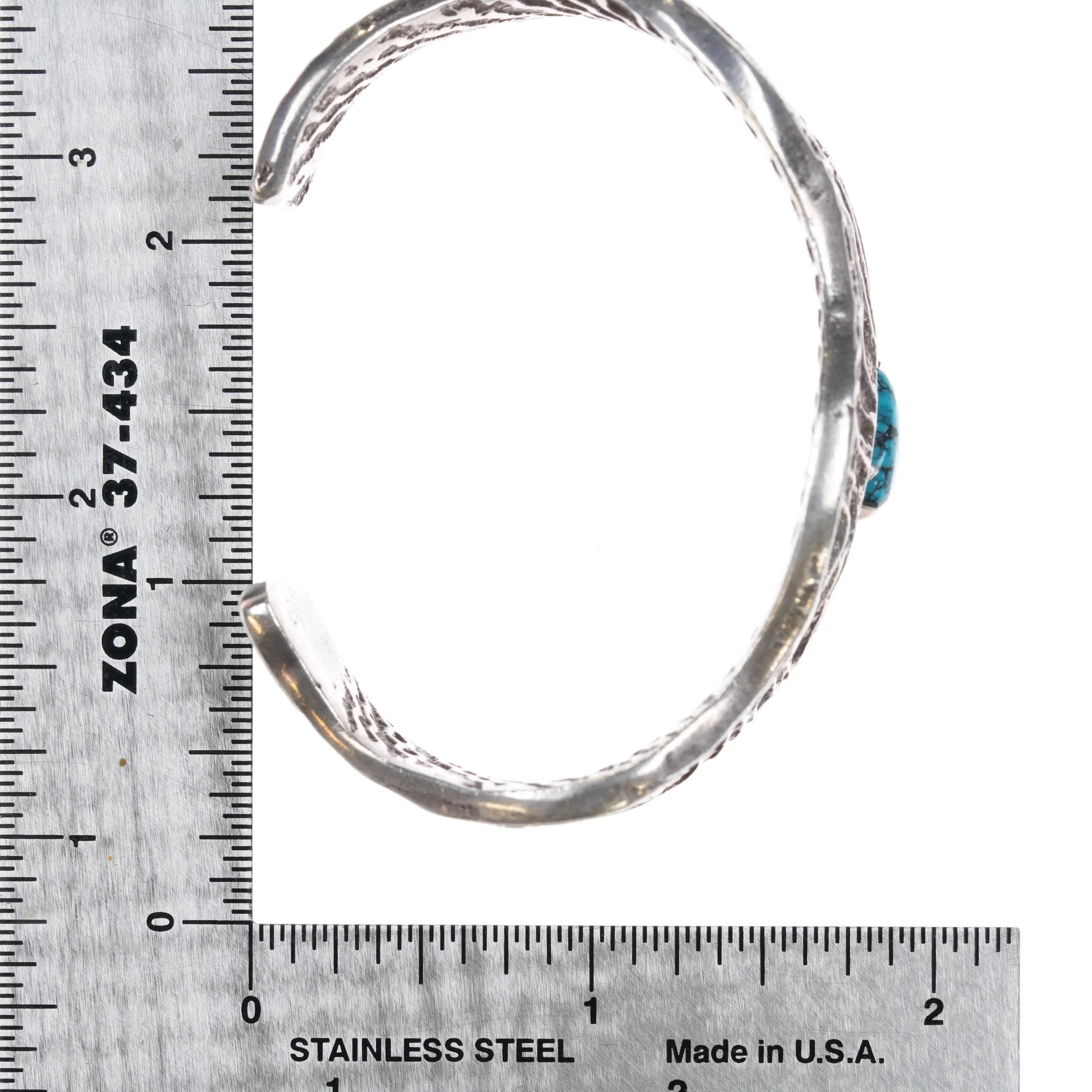 6" Tufa cast silver cuff bracelet with spiderweb turquoise . Solid sterling silver. Will fit up to a 6" wrist, gap size and other measurements in pictures. Nice, well made bracelet in good condition with no apparent issues. Mark shown in last picture by the terminal on one side. Sterling and an L or R and a C.