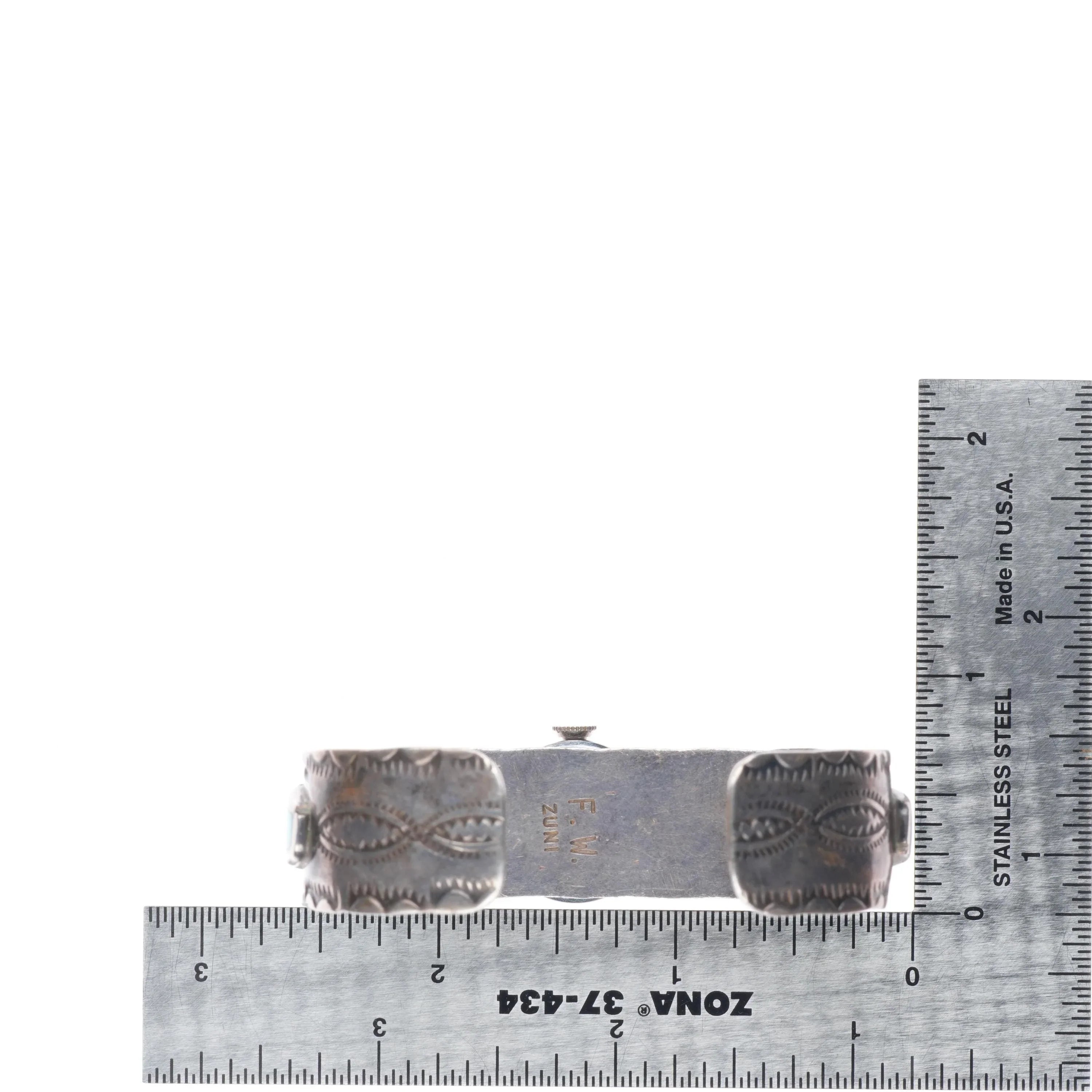 6" Vintage F.W. Zuni sterling silver channel inlay turquoise watch cuff bracelet