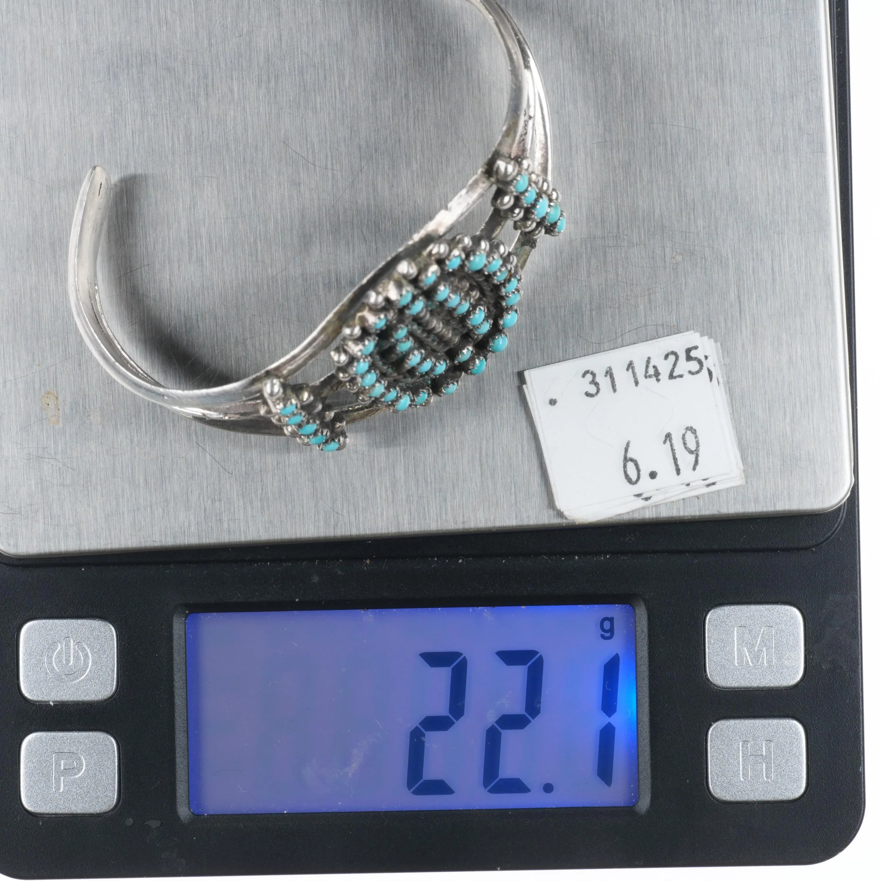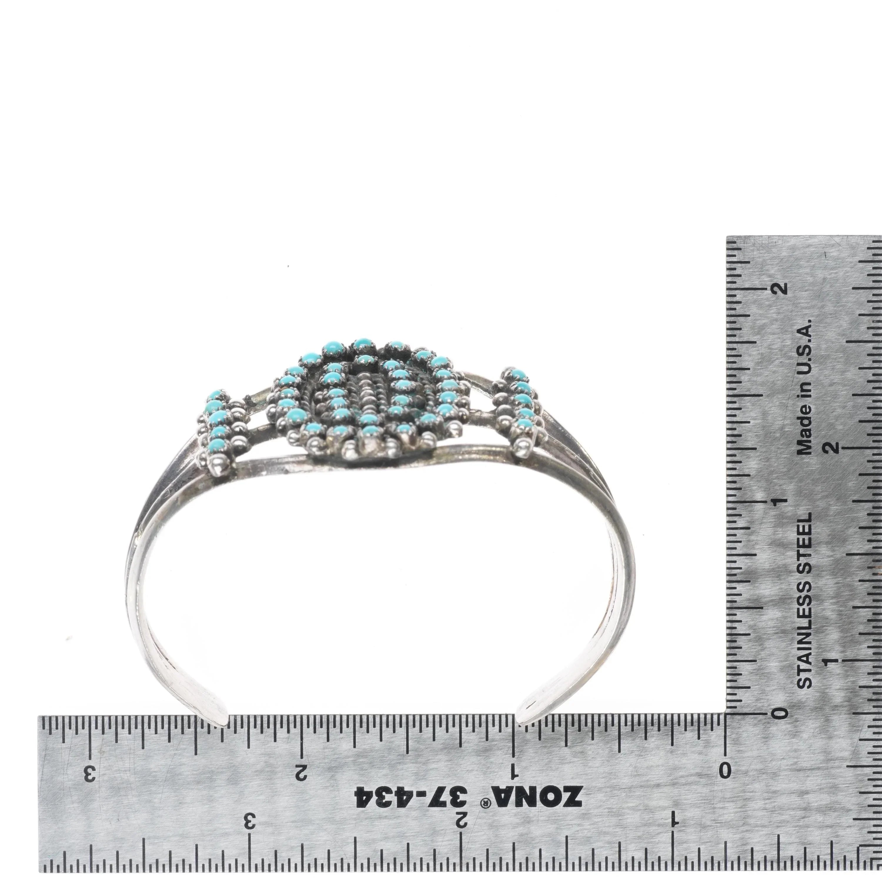 6" Vintage Zuni sterling silver snake eye turquoise cuff bracelet cluster