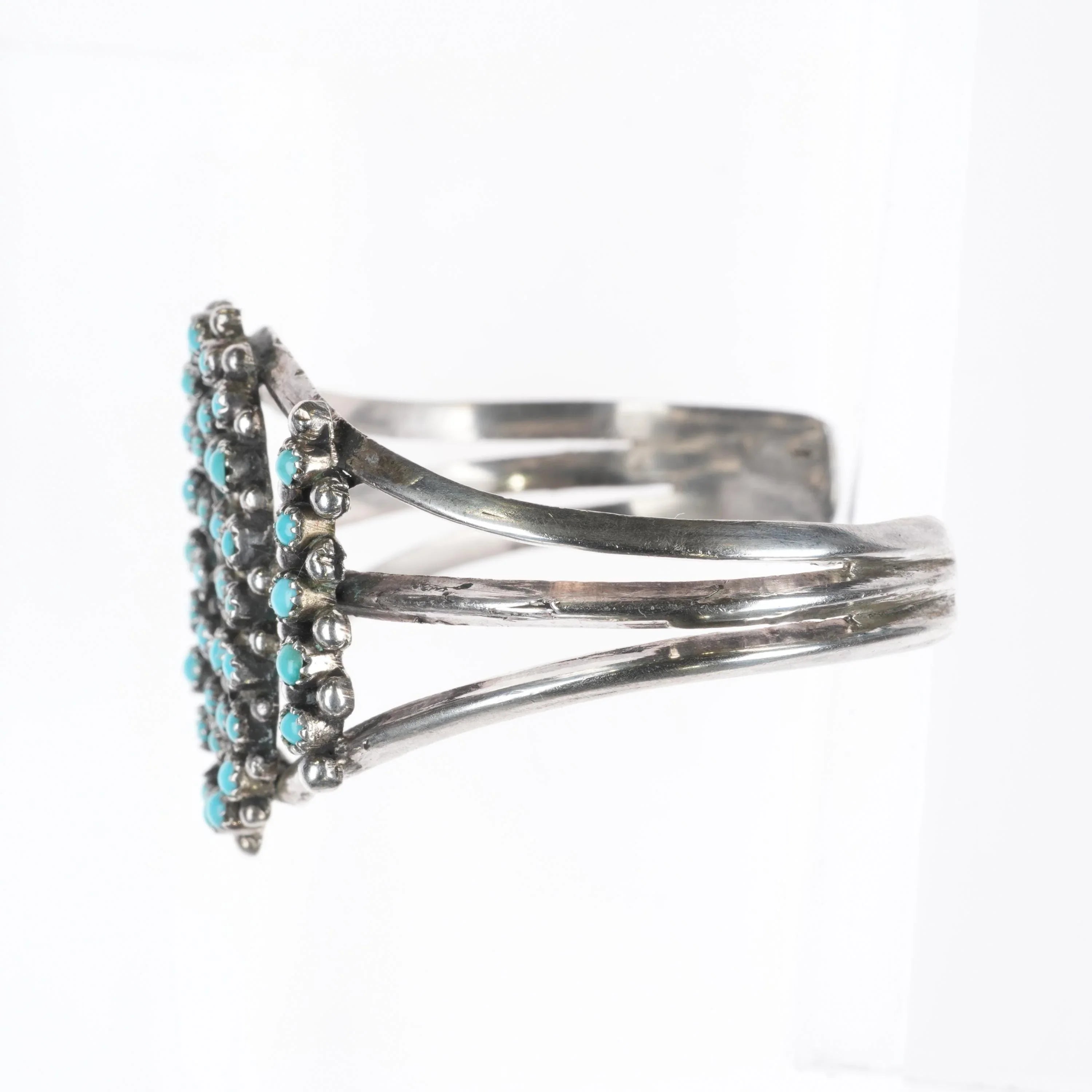 6" Vintage Zuni sterling silver snake eye turquoise cuff bracelet cluster. Tested and guaranteed solid sterling silver with no detectable markings . Some expected wear, no damage. Weight and measurements in pictures. No damage, some expected wear.