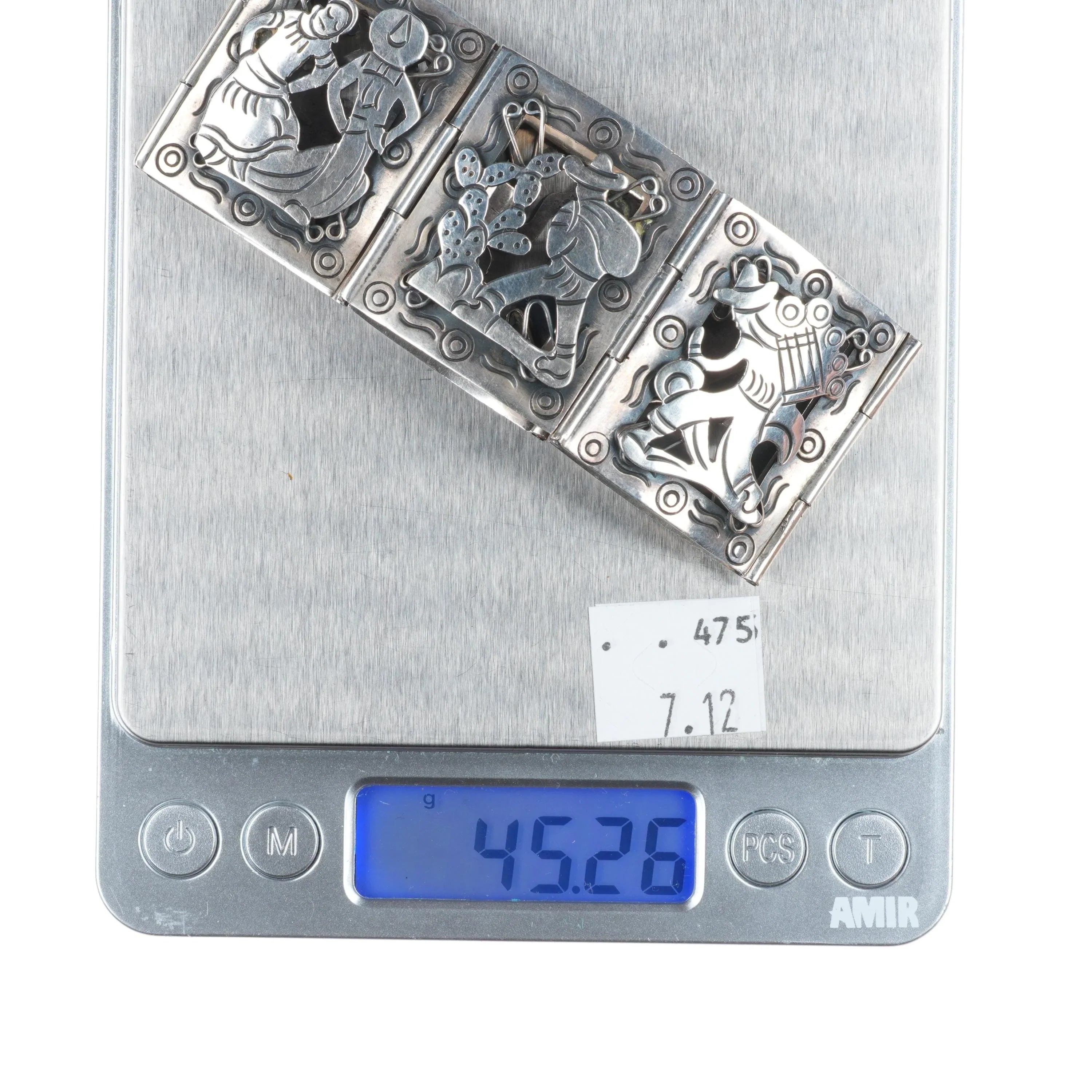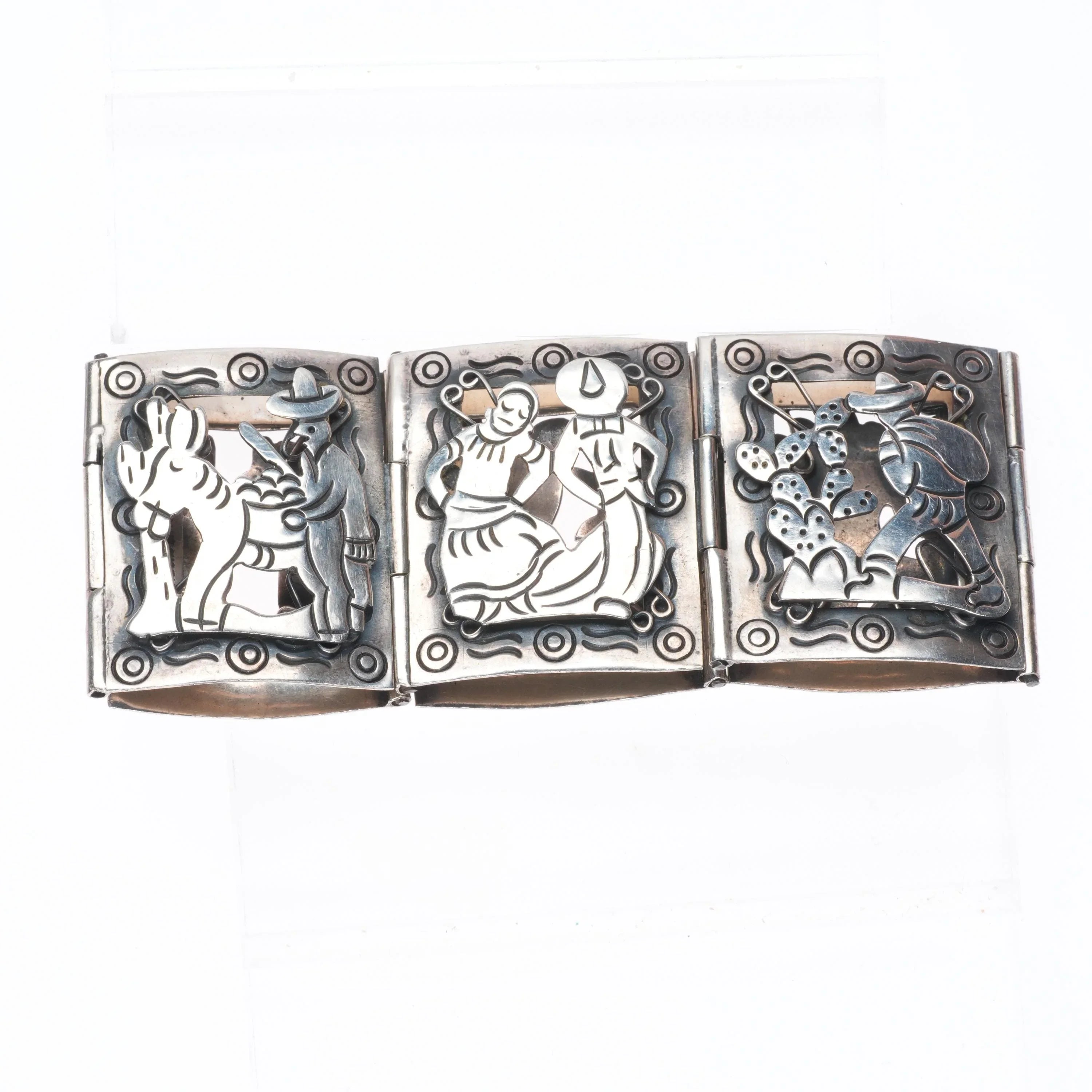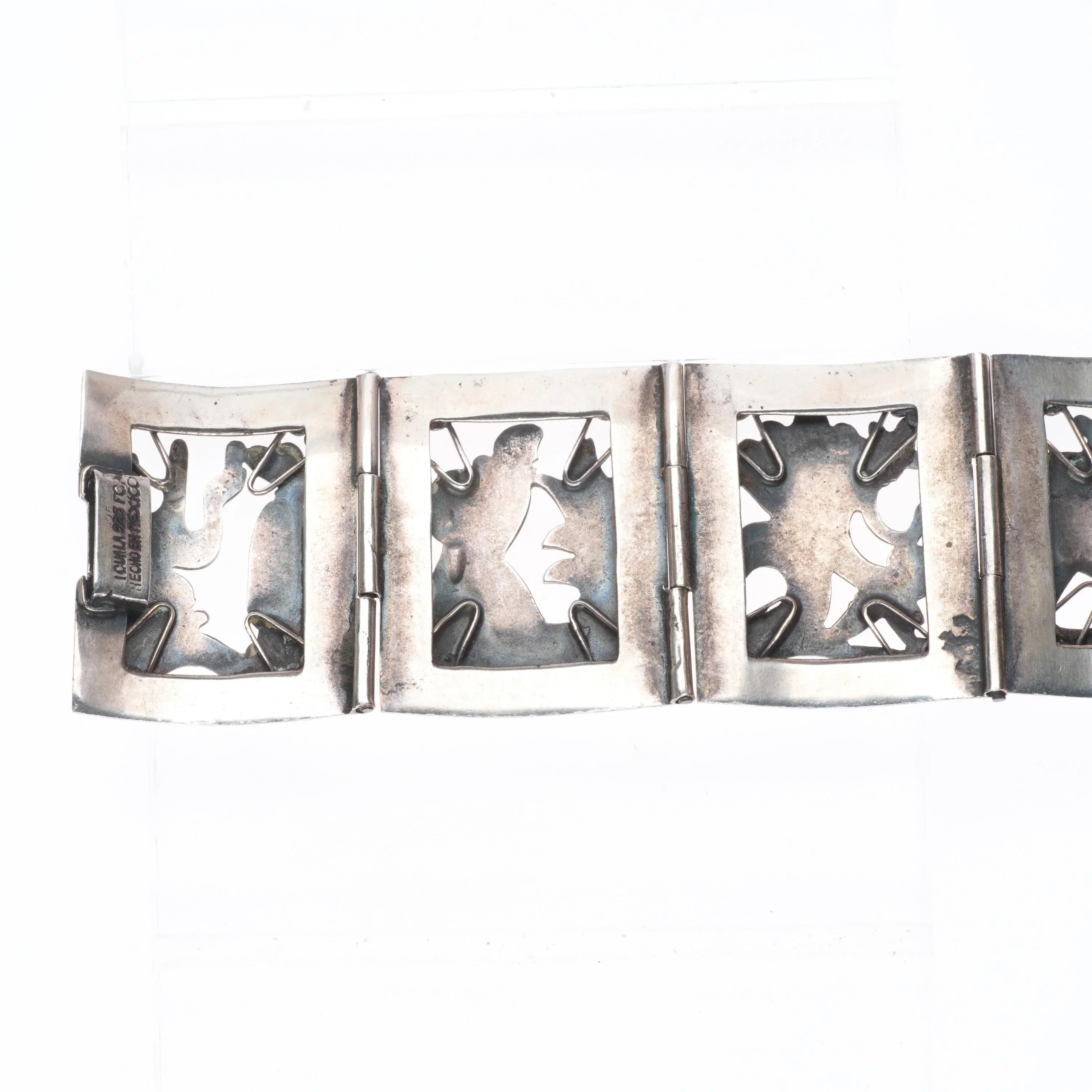 7" 1940‘s Fun Iguala Mexican sterling silver storyteller link bracelet. Weight and measurements in pictures, solid sterling silver. Marked as shown with no damage.