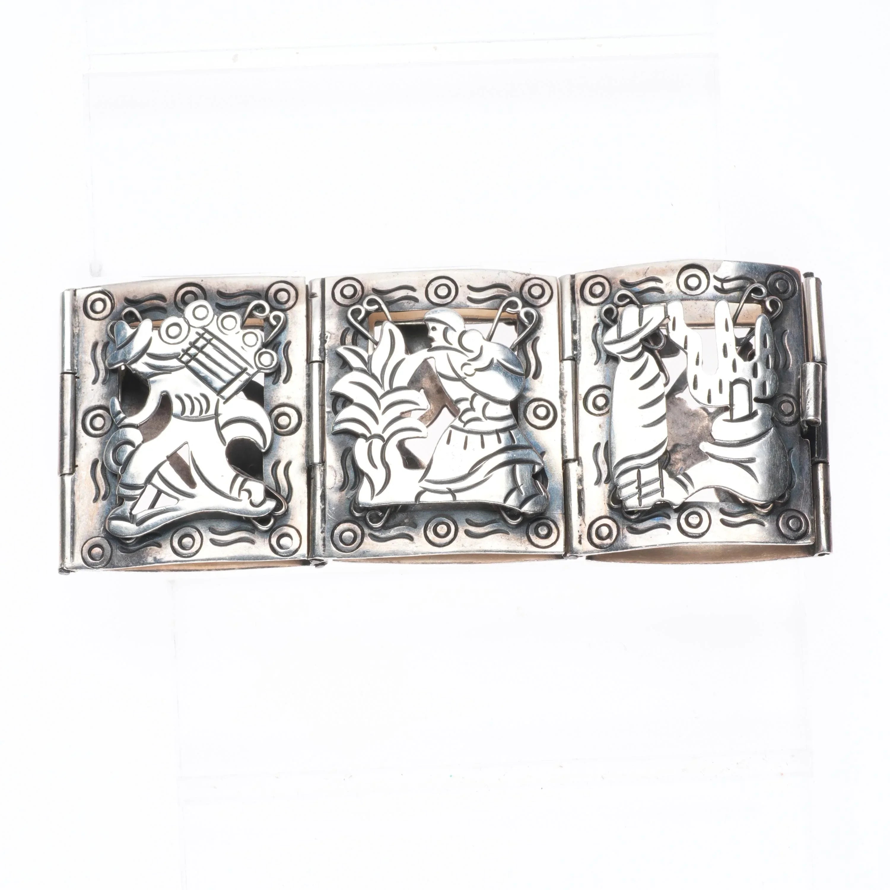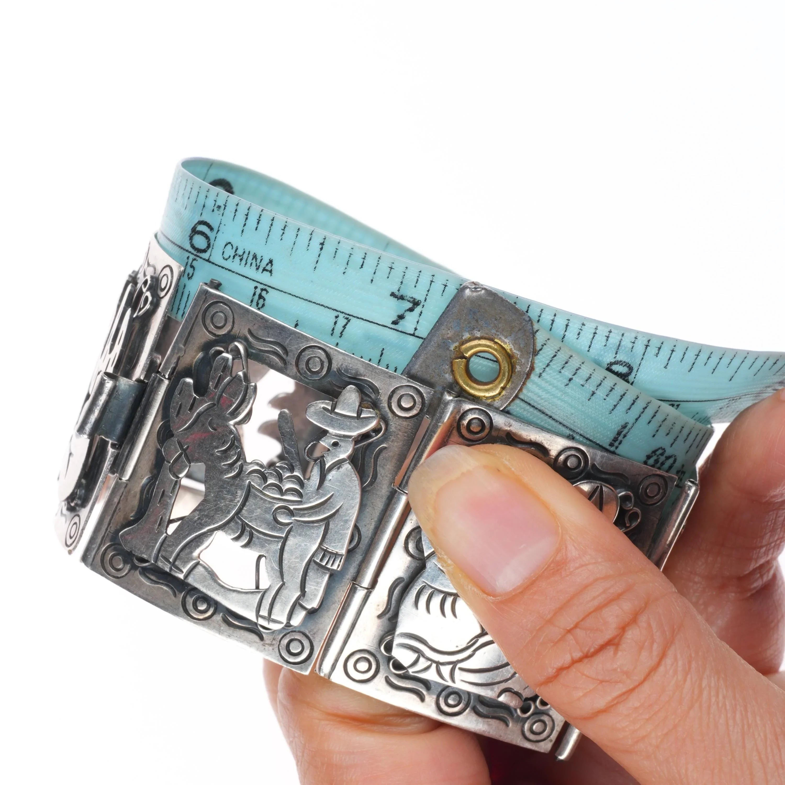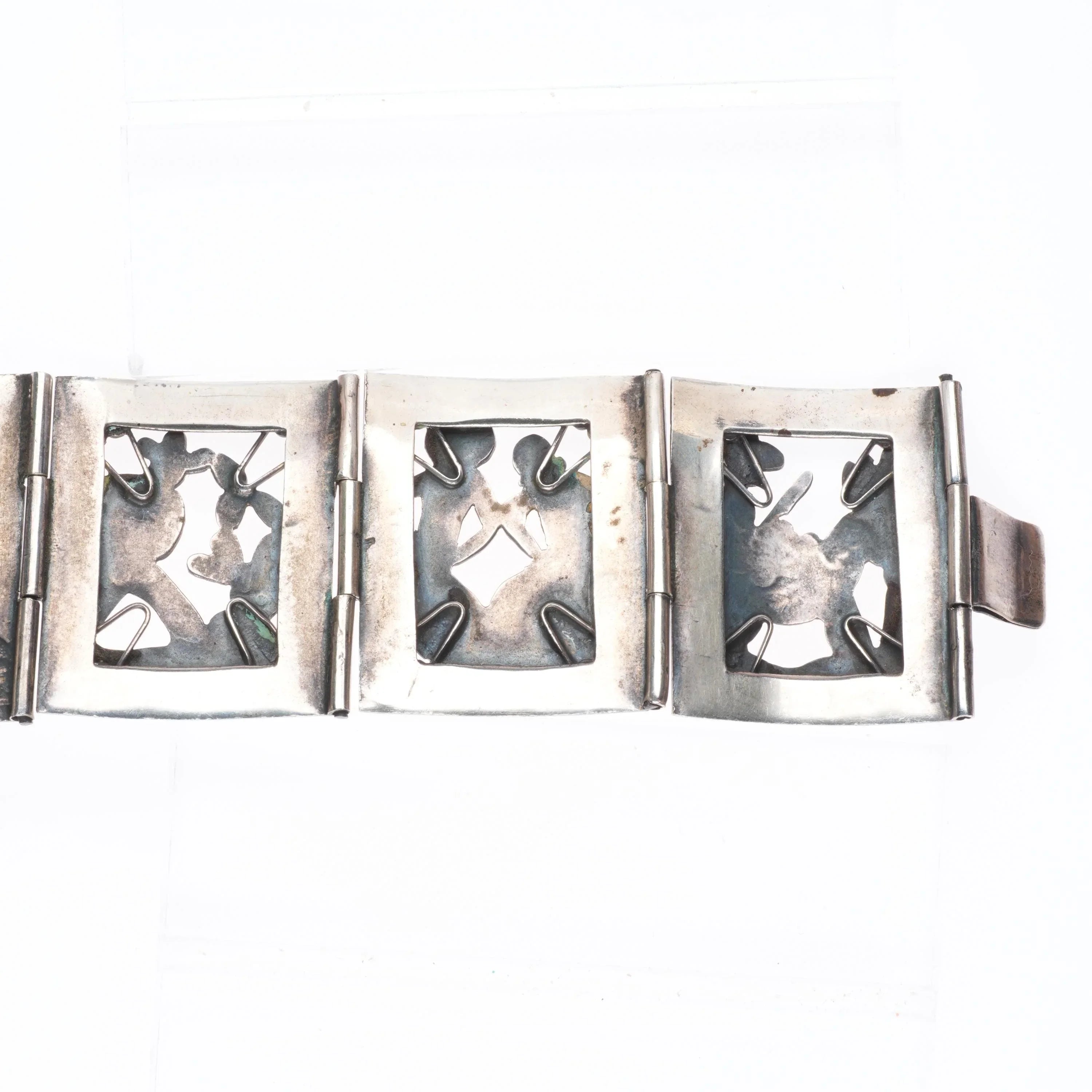 7" 1940‘s Fun Iguala Mexican sterling silver storyteller link bracelet. Weight and measurements in pictures, solid sterling silver. Marked as shown with no damage.