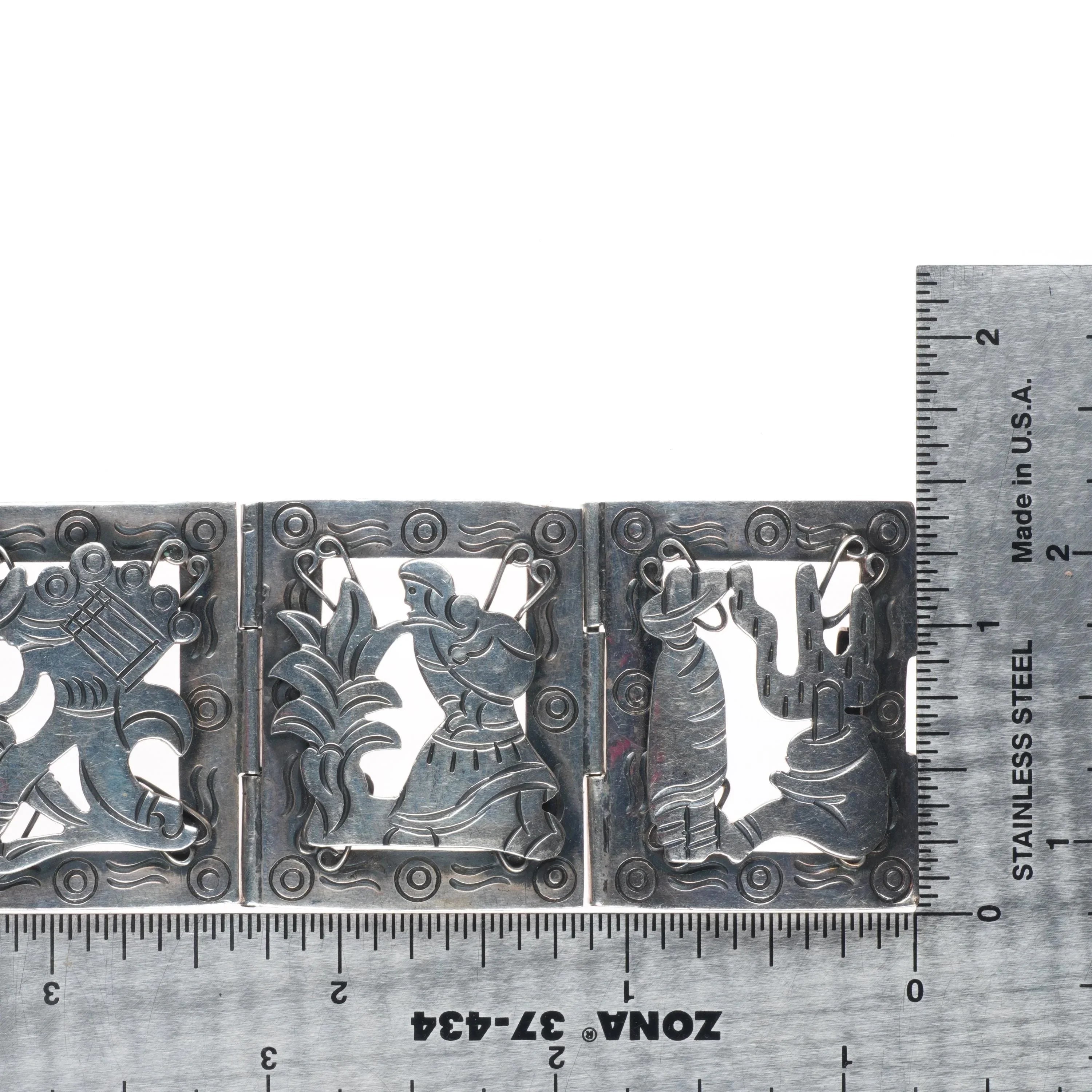 7" 1940's Fun Iguala Mexican sterling silver storyteller link bracelet