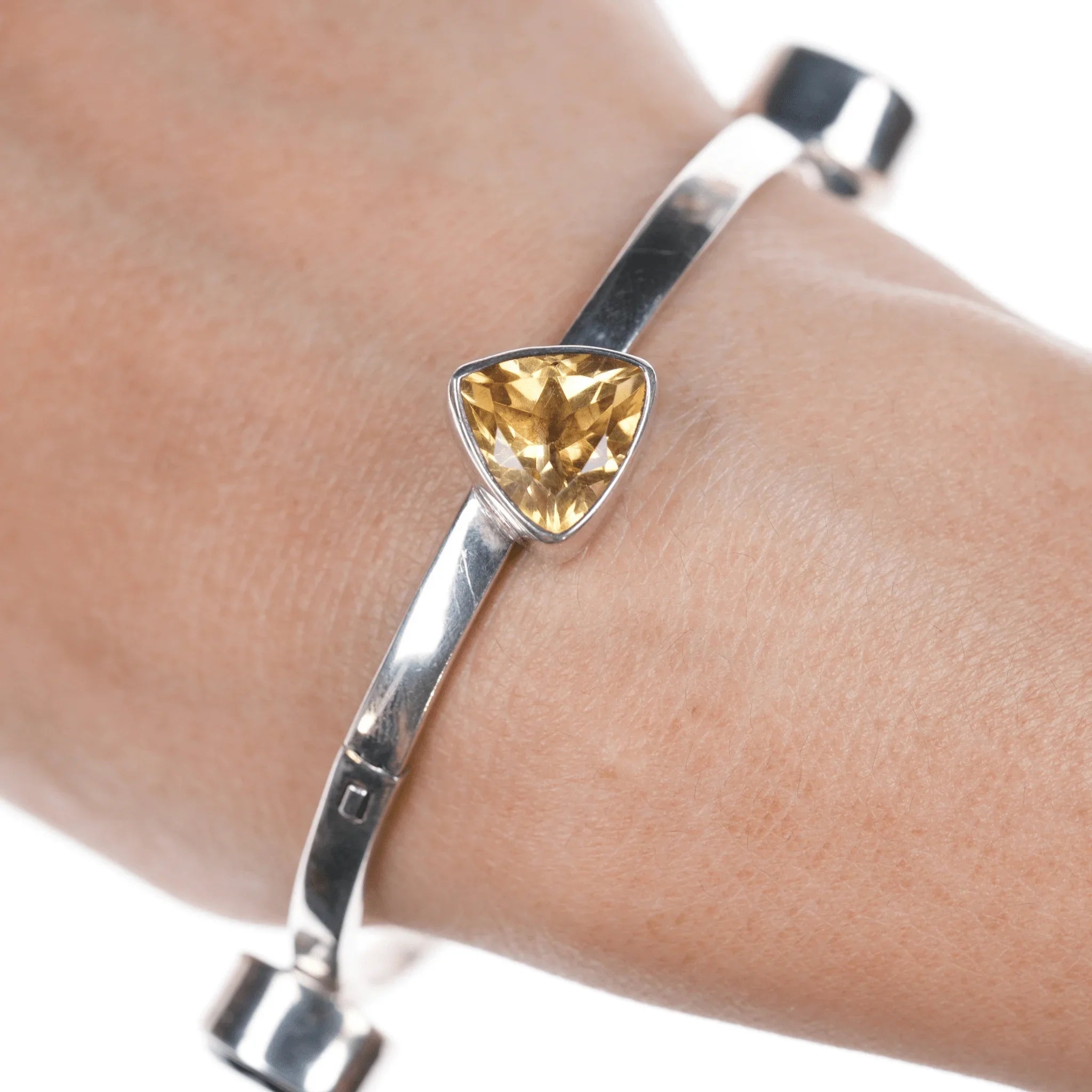 Retro Charles Albert Sterling Amethyst, Topaz, Peridot, and Aquamarine bangle bracelet. Retired design in clean condition with no issues.