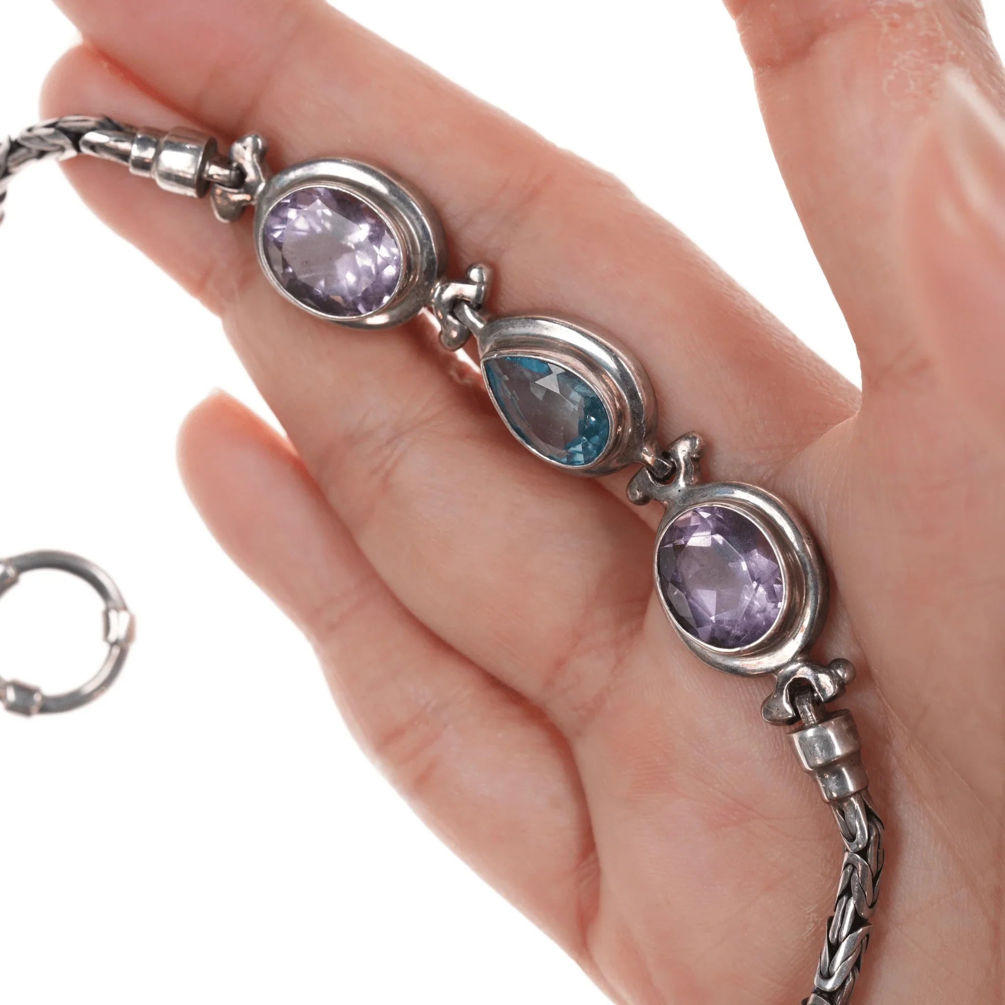 7.75" Retro Sterling byzantine gemset bracelet. Great bracelet with no issues. No damage or wear to stones which are untested.