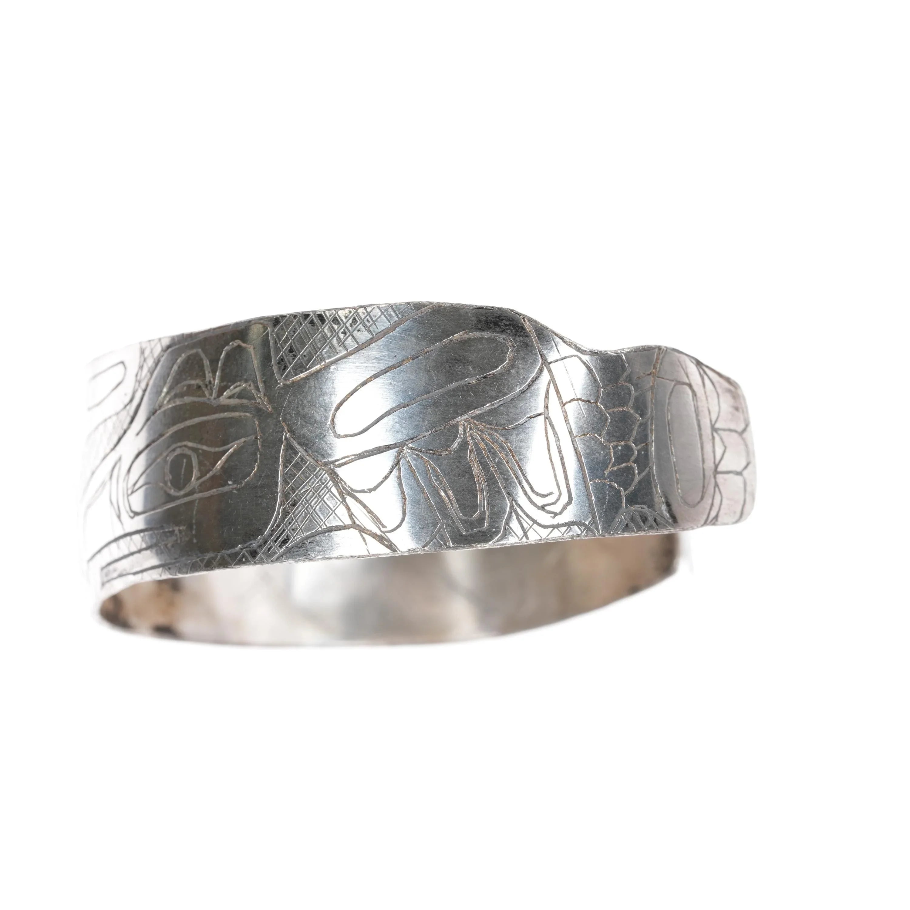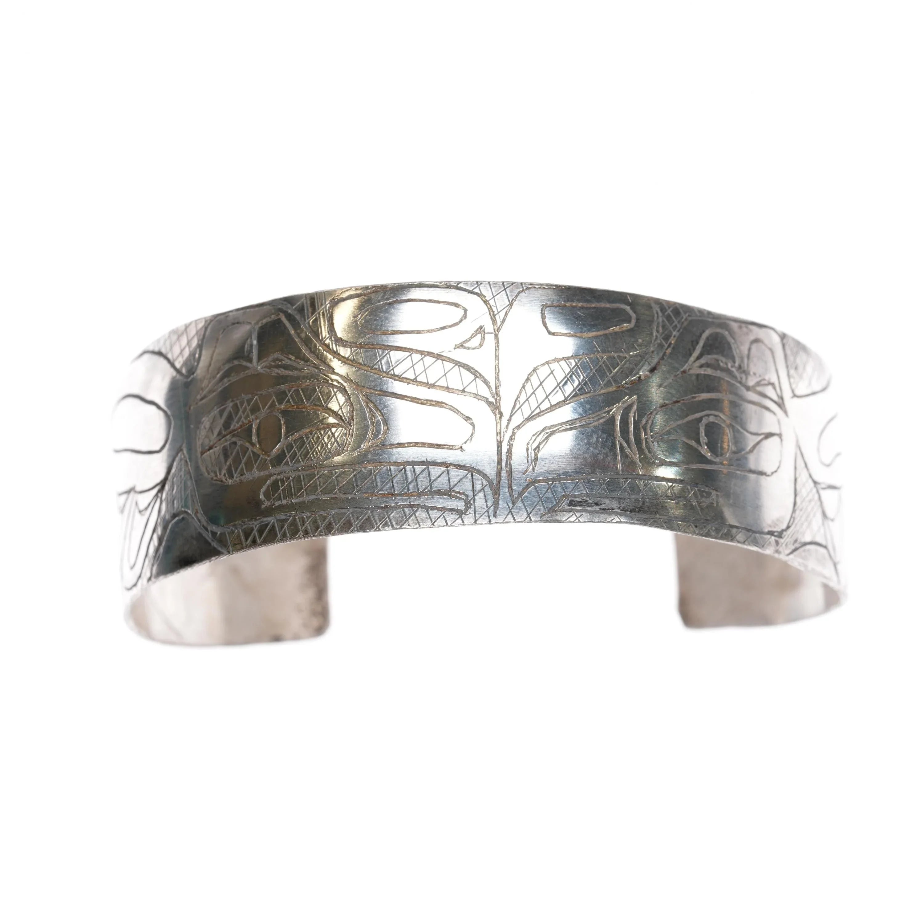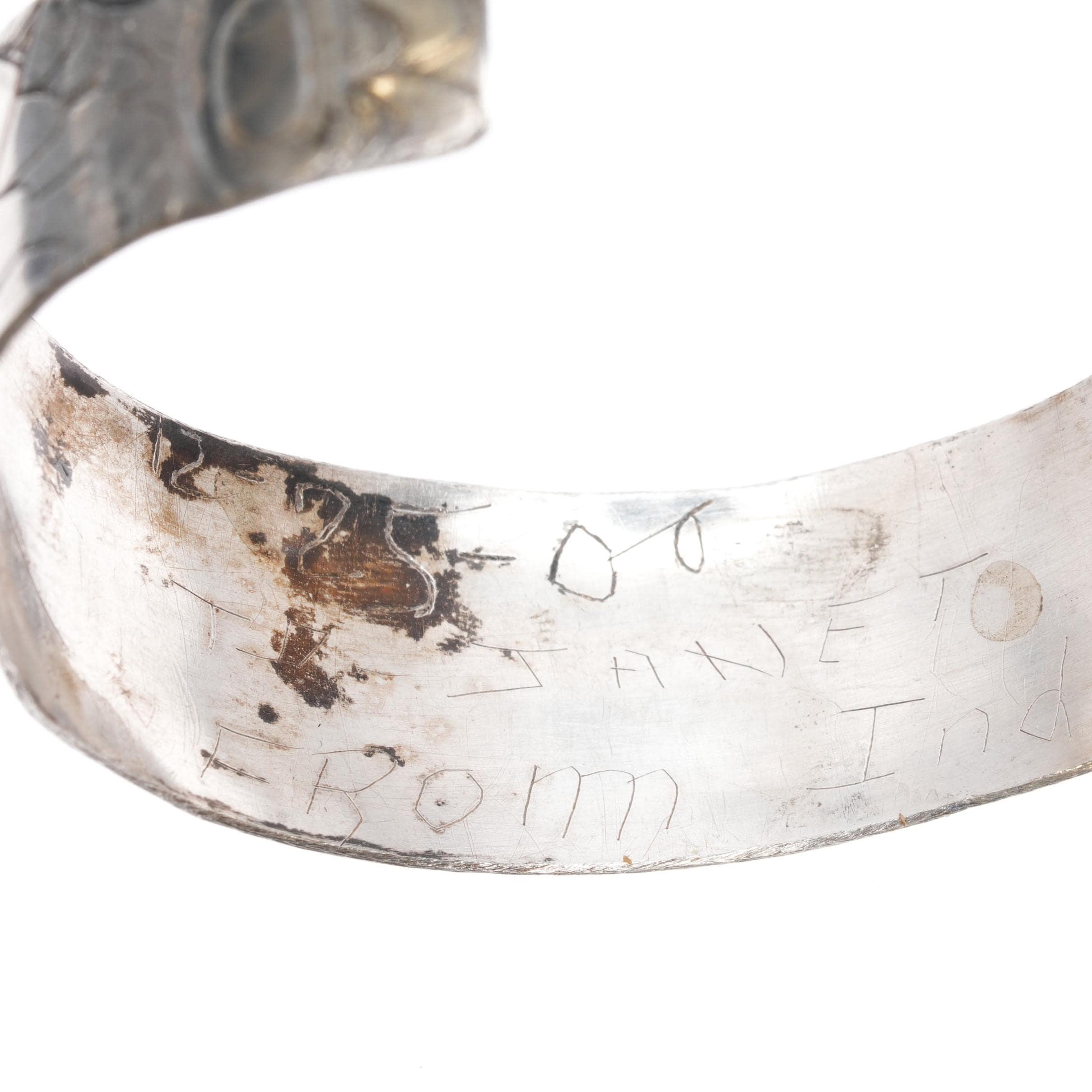 7" Crude Haida silver cuff bracelet xmas gift. No issues. Weight and measurements in pictures. Great bracelet Solid sterling silver. Appears to have been given as an xmas gift. Possibly made by a kid, interesting piece of folk art.