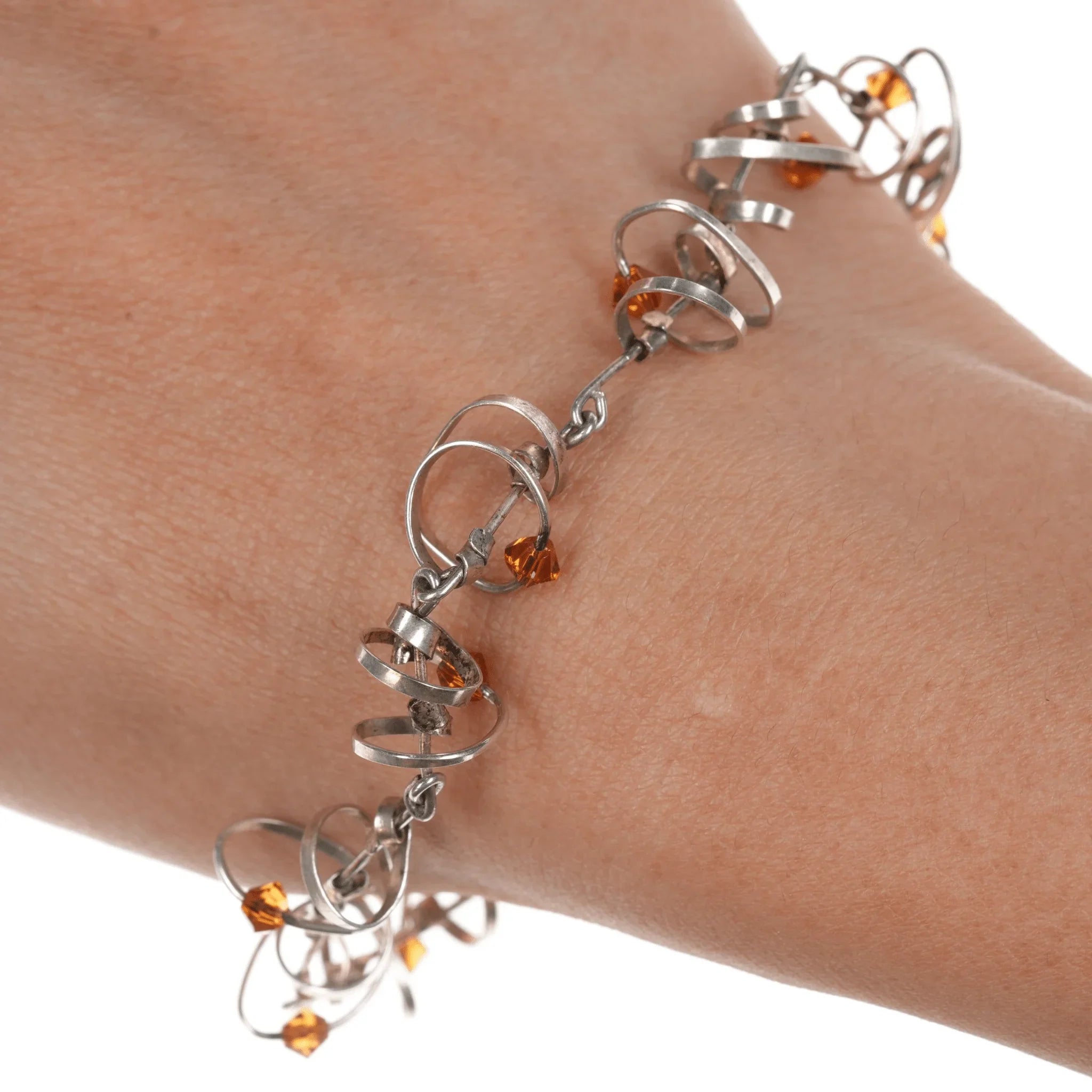 7" Retro YAH Artisan sterling bracelet. Unusual bracelet, tested sterling, but unknown maker.