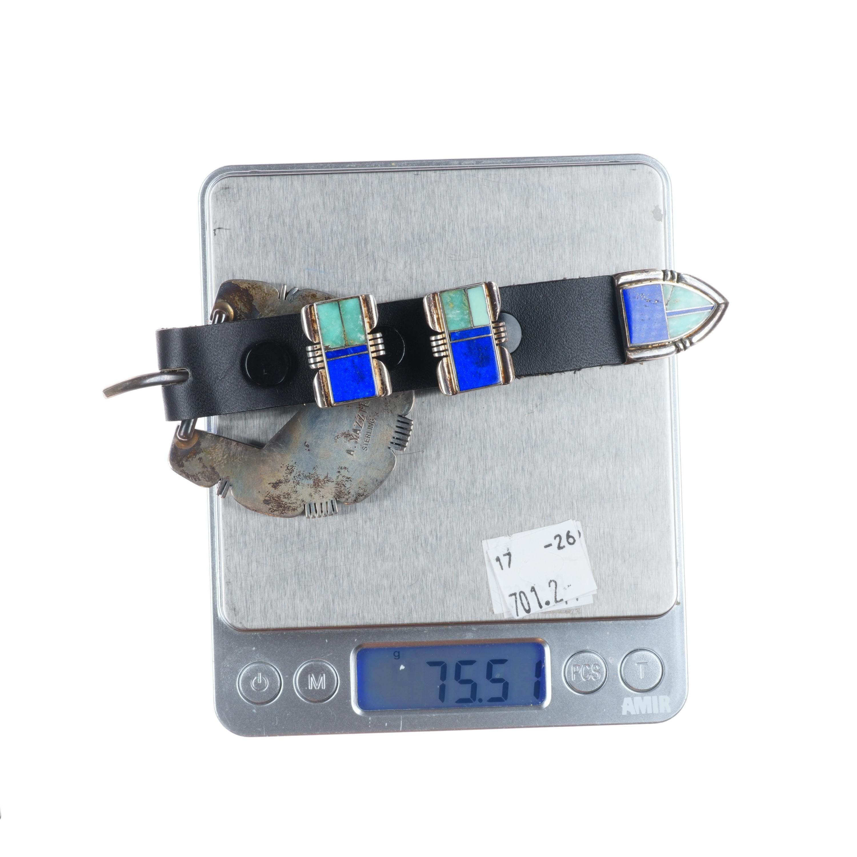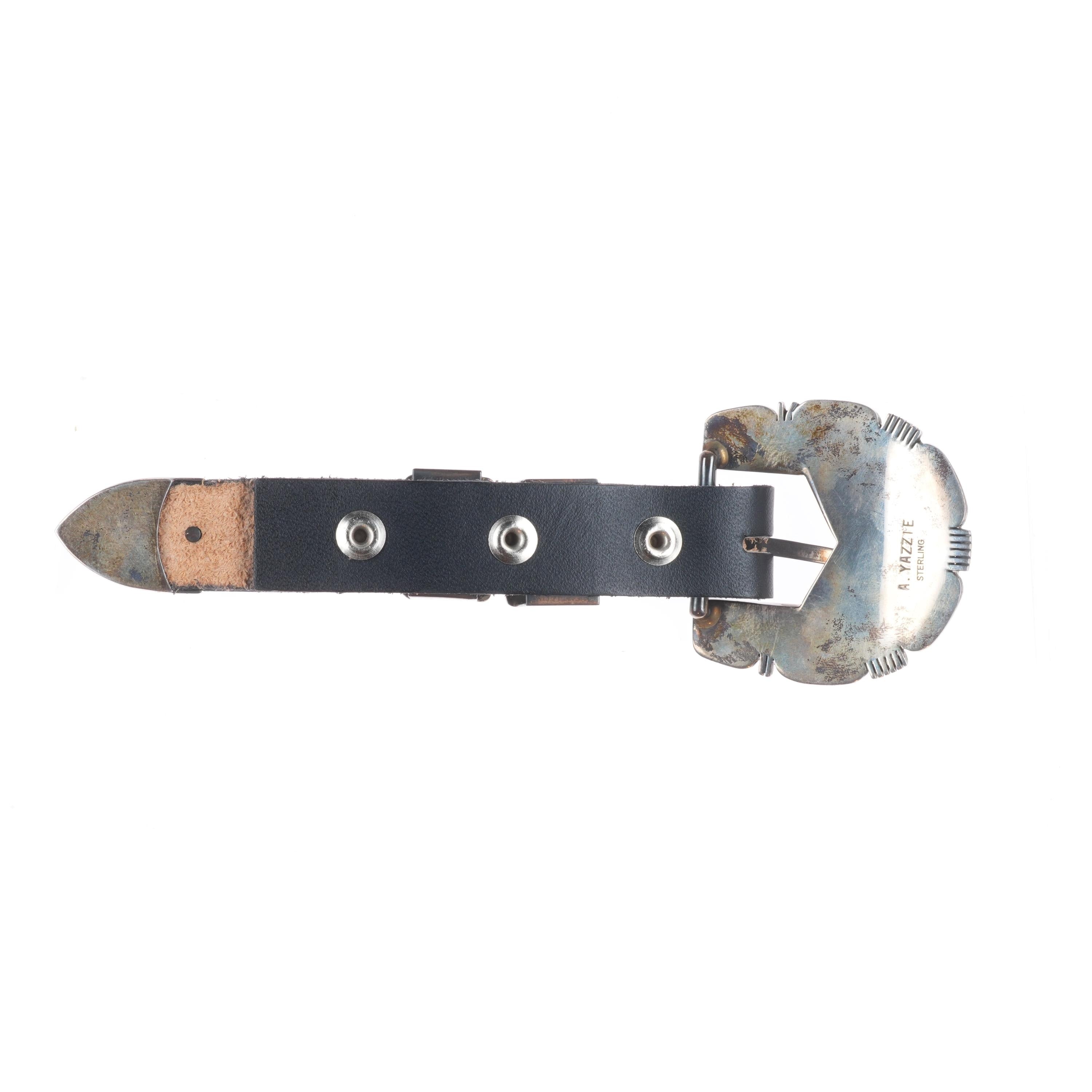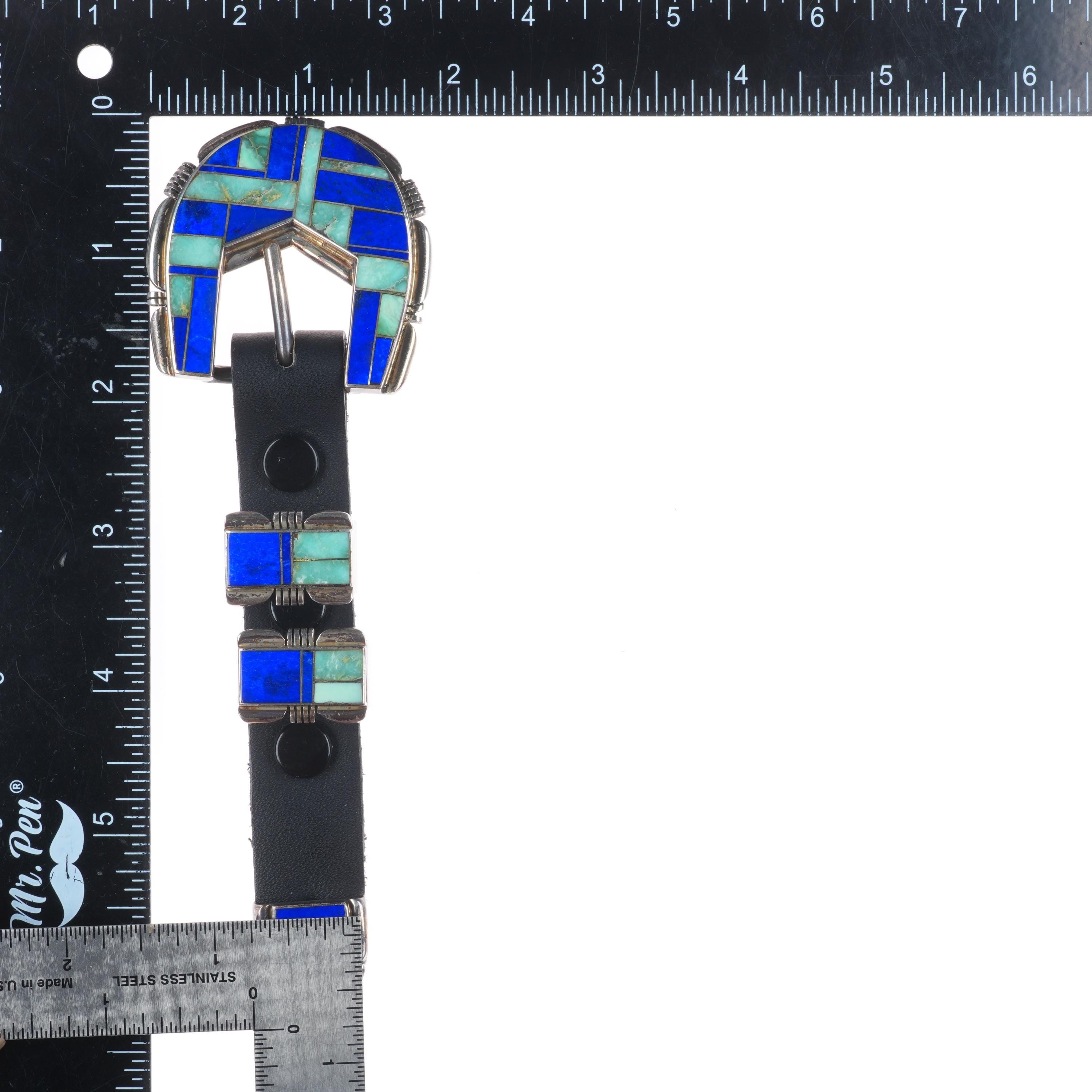 A. Yazzie Vintage Navajo sterling silver turquoise/lapis ranger belt buckle set. Tested and guaranteed solid sterling silver with weight and measurements in pictures. Fully functional. All items will likely have some age appropriate/expected wear, the older they are the more wear they should have. Circa last quarter of the 20th century.. Fits up to a 3/4" belt.
