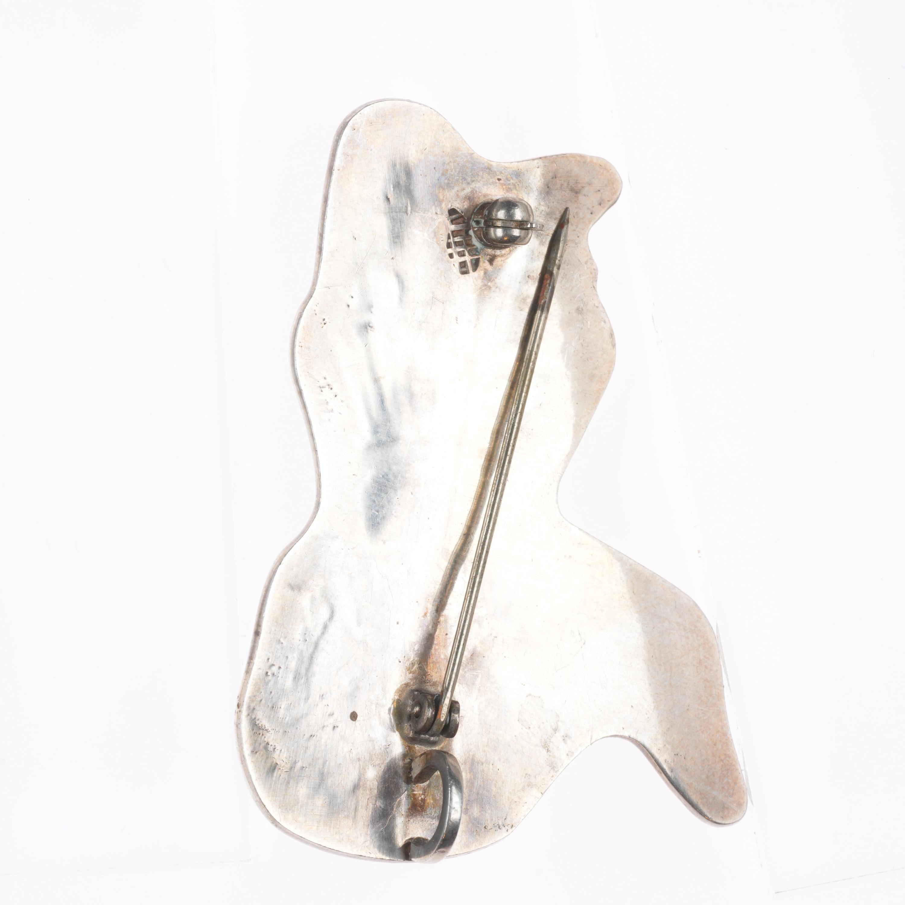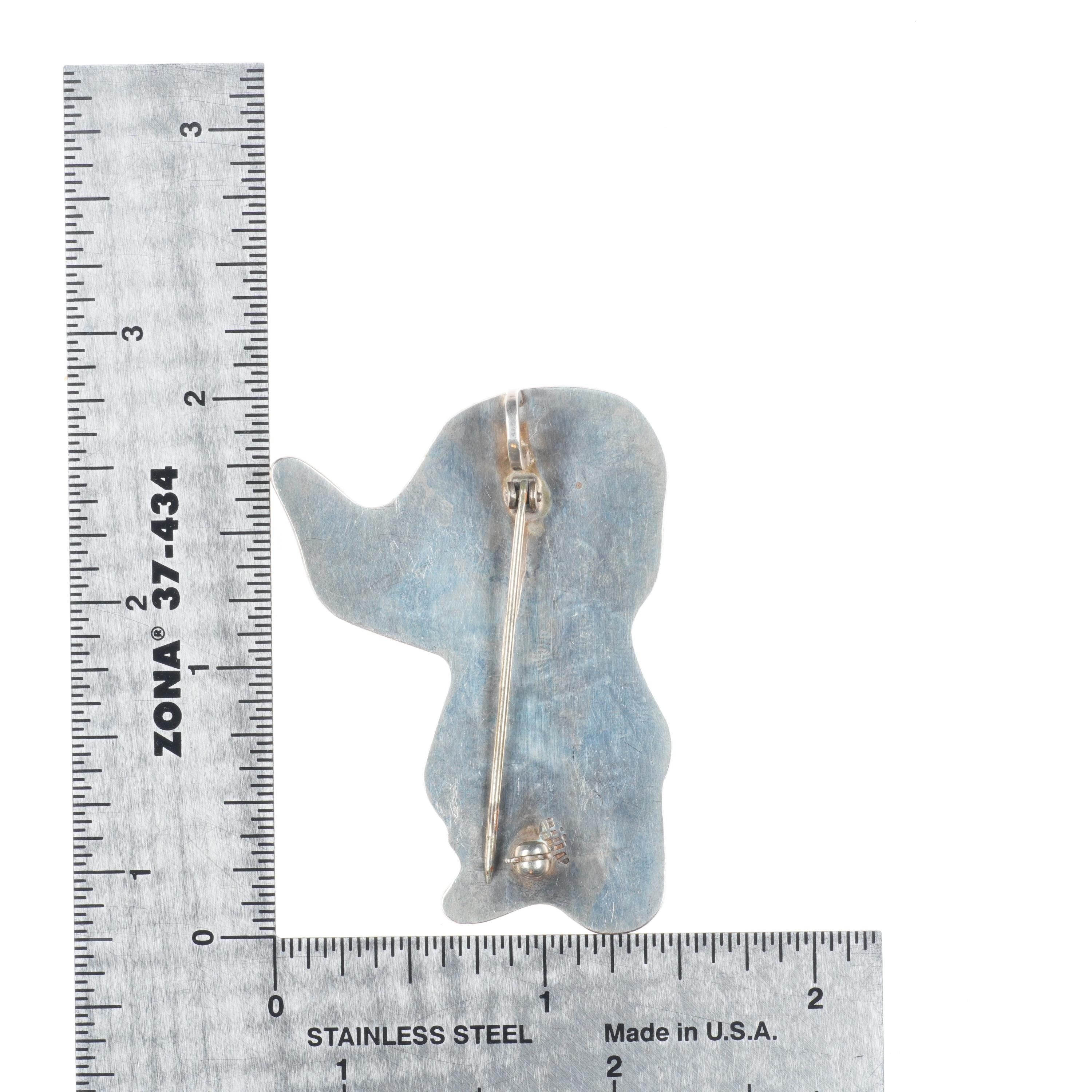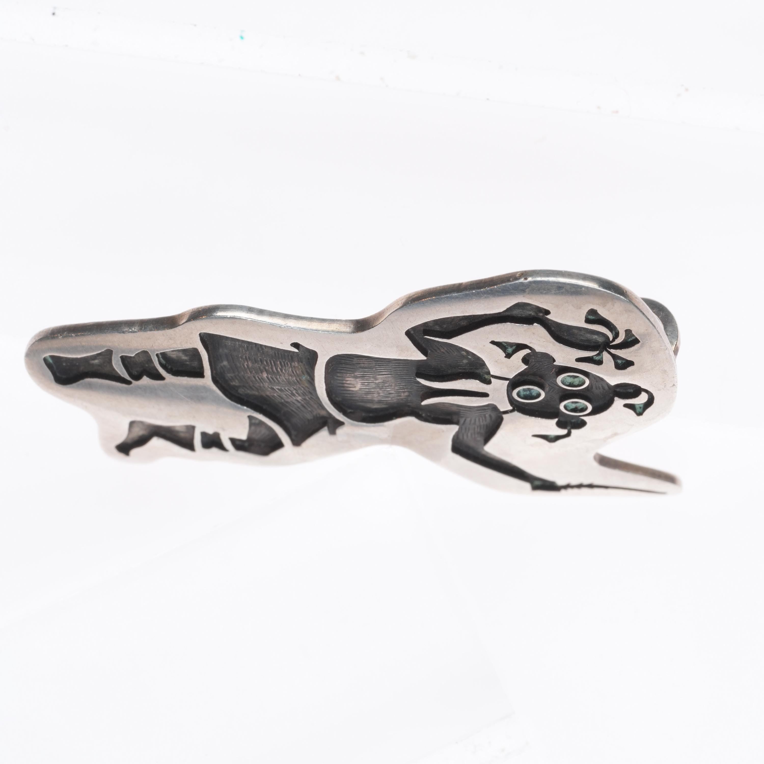 Allen Pooyouma Hopi Overlay Mud Man Kachina pin sterling silver. Solid sterling silver tested and guaranteed with weight and measurements in the pictures. No issues, Circa last quarter of the 20th century,