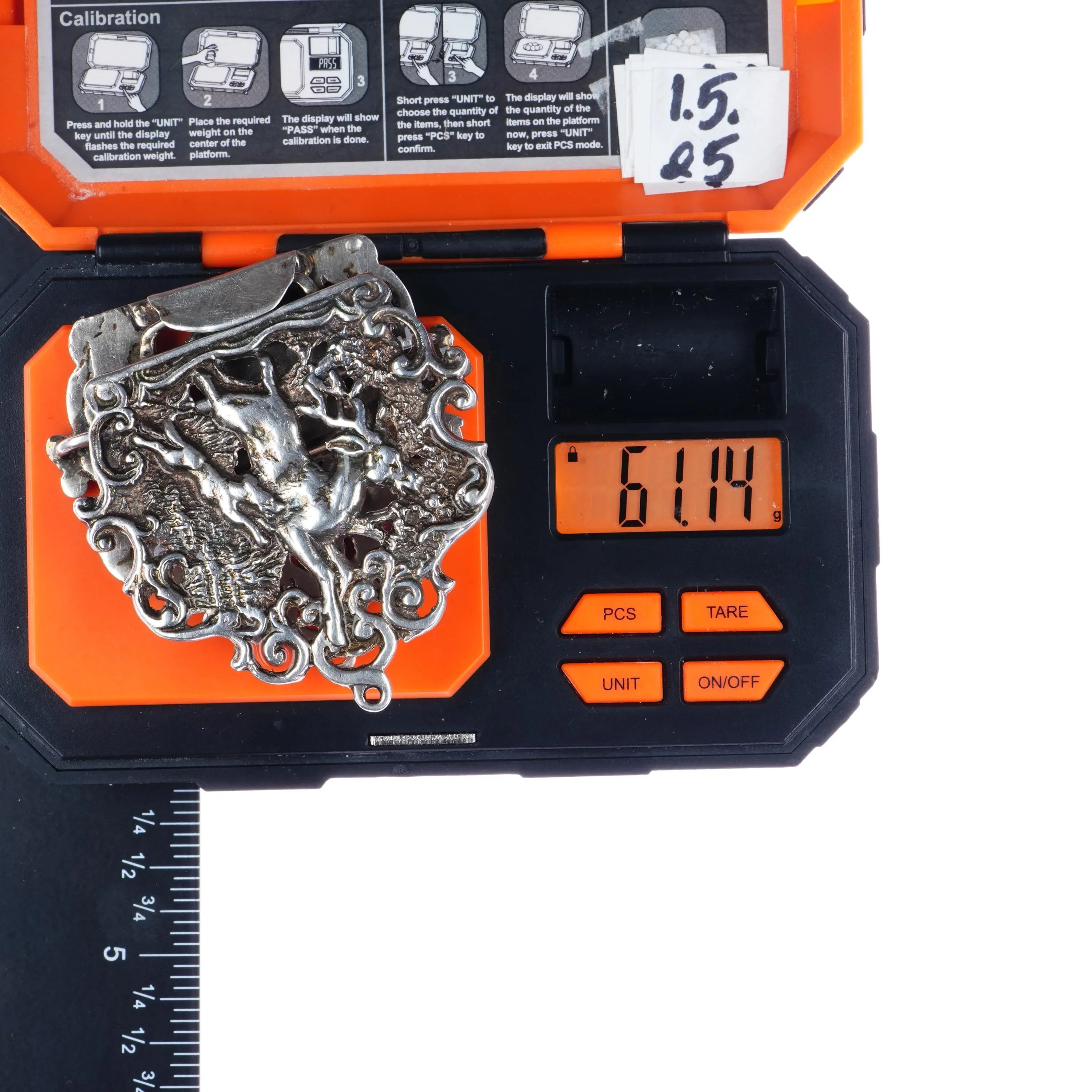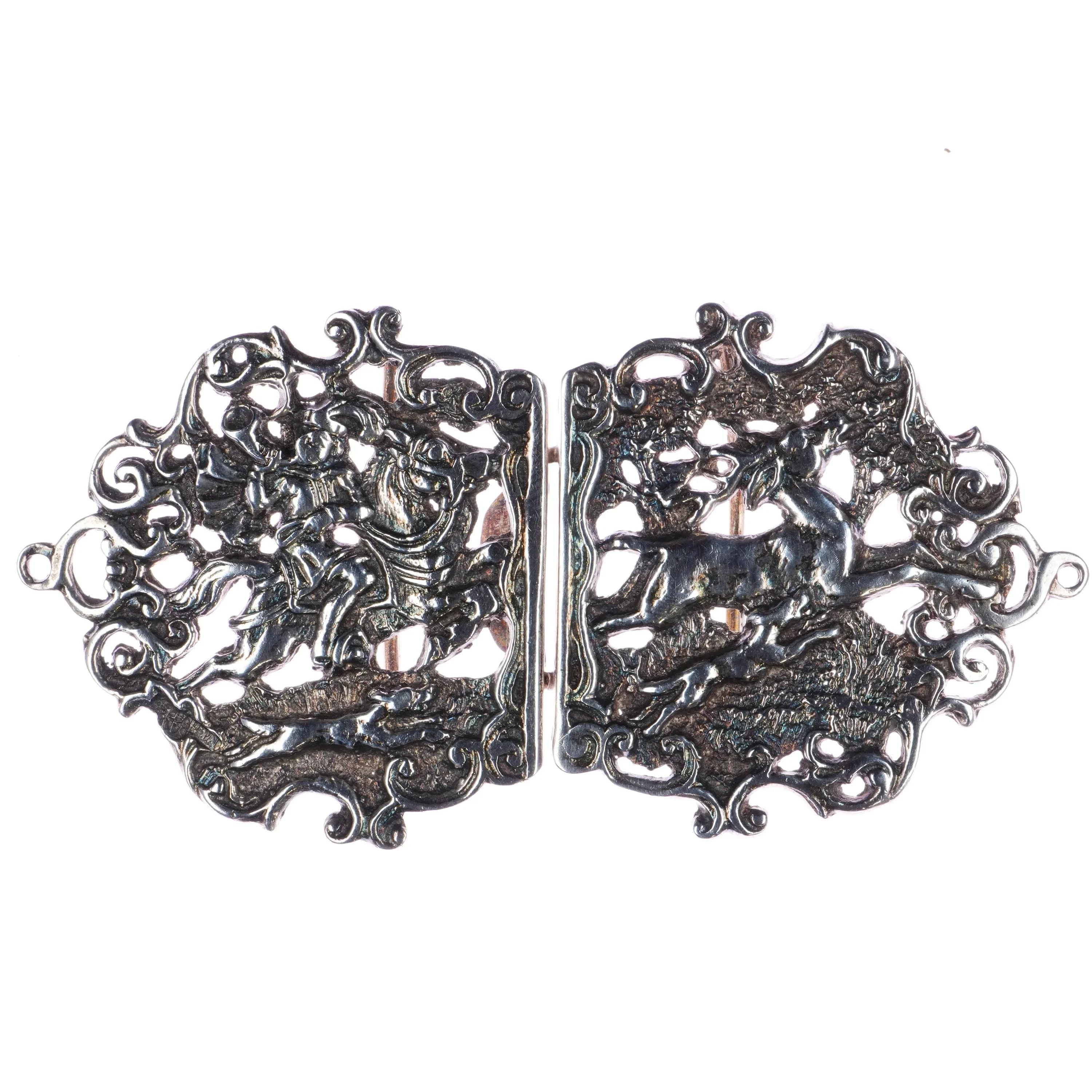 Antique European Silver Deer Hunting 2 piece belt buckle