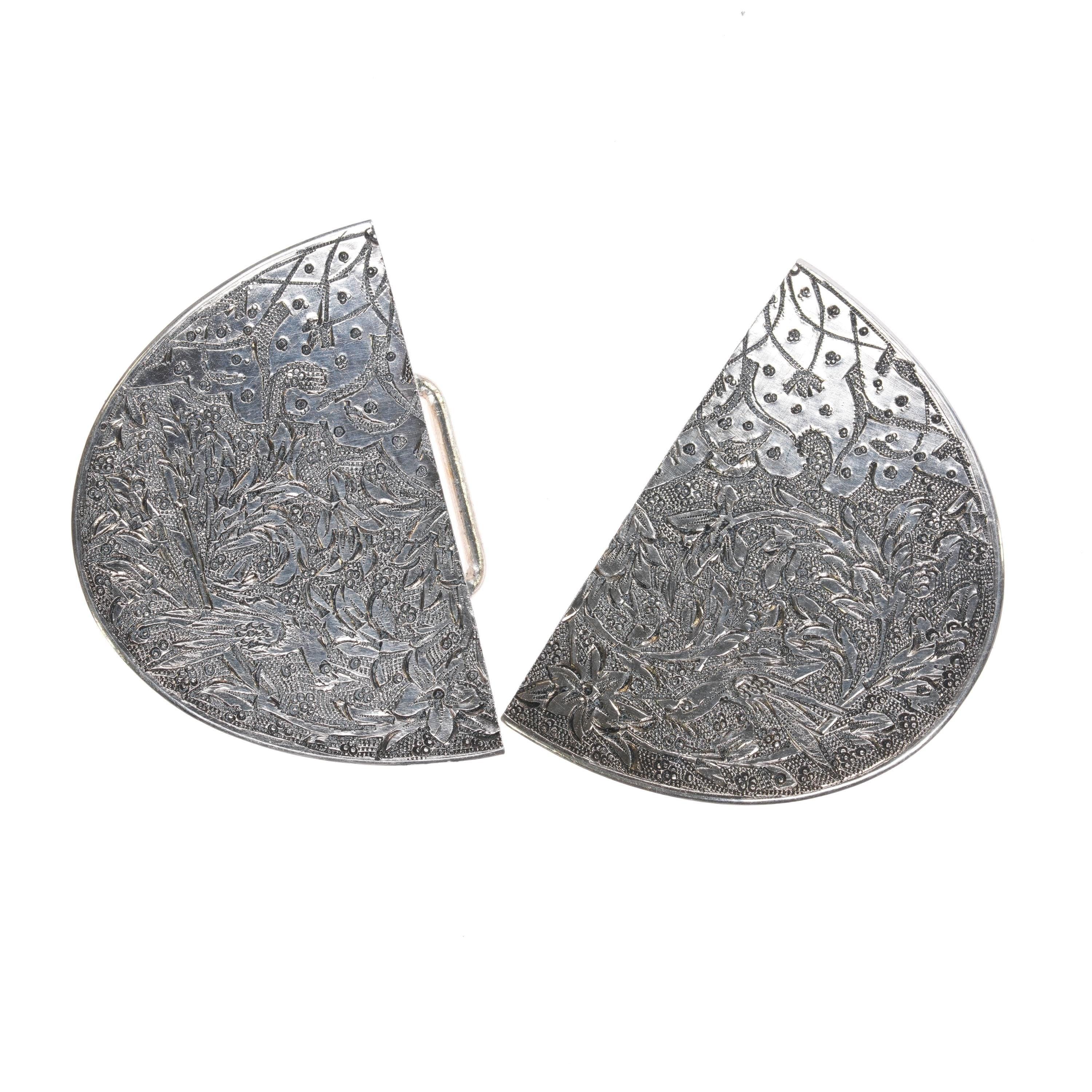 Antique Hand engraved sterling silver 2 part belt buckle. Solid sterling silver with weight and other measurements in the pictures. No apparent markings.
