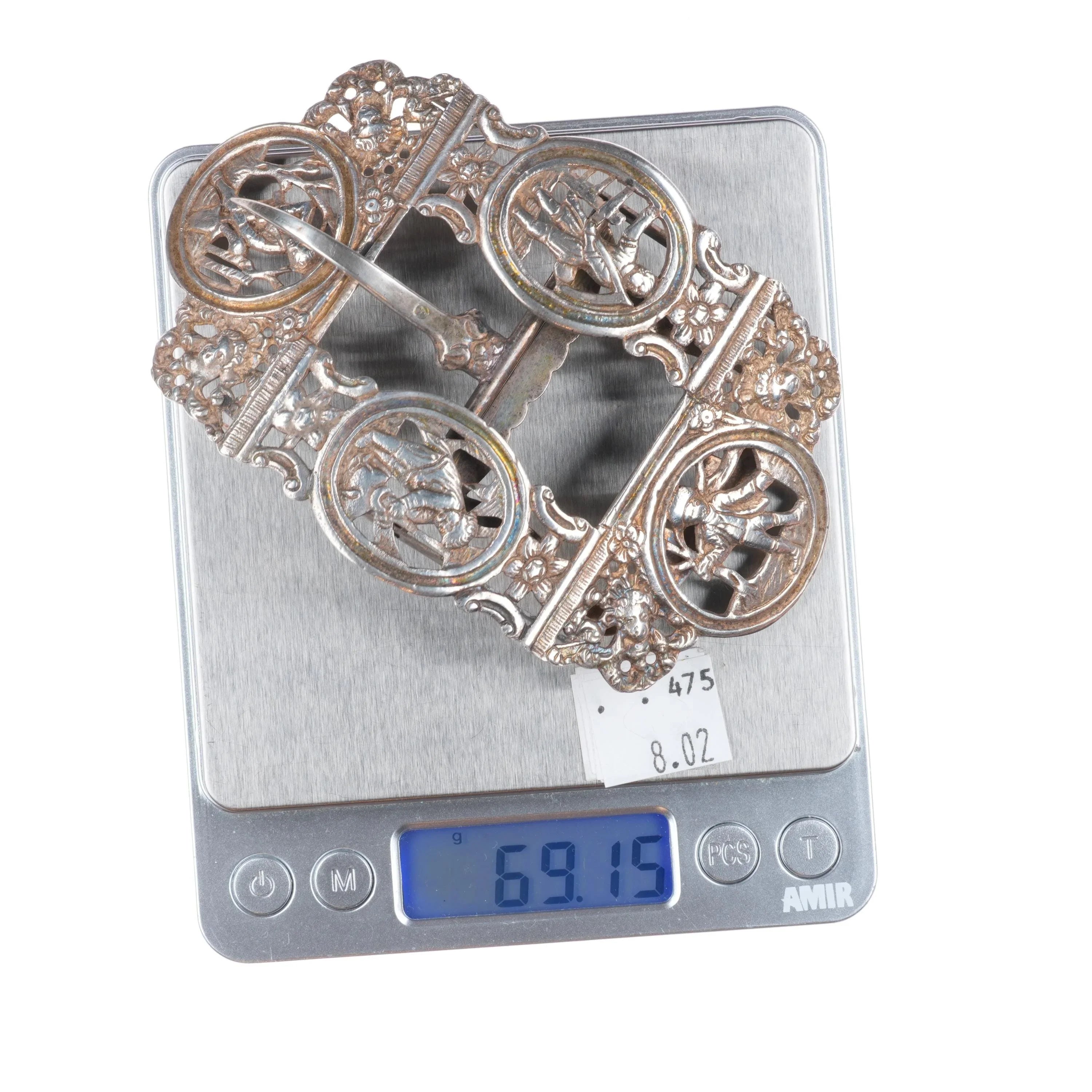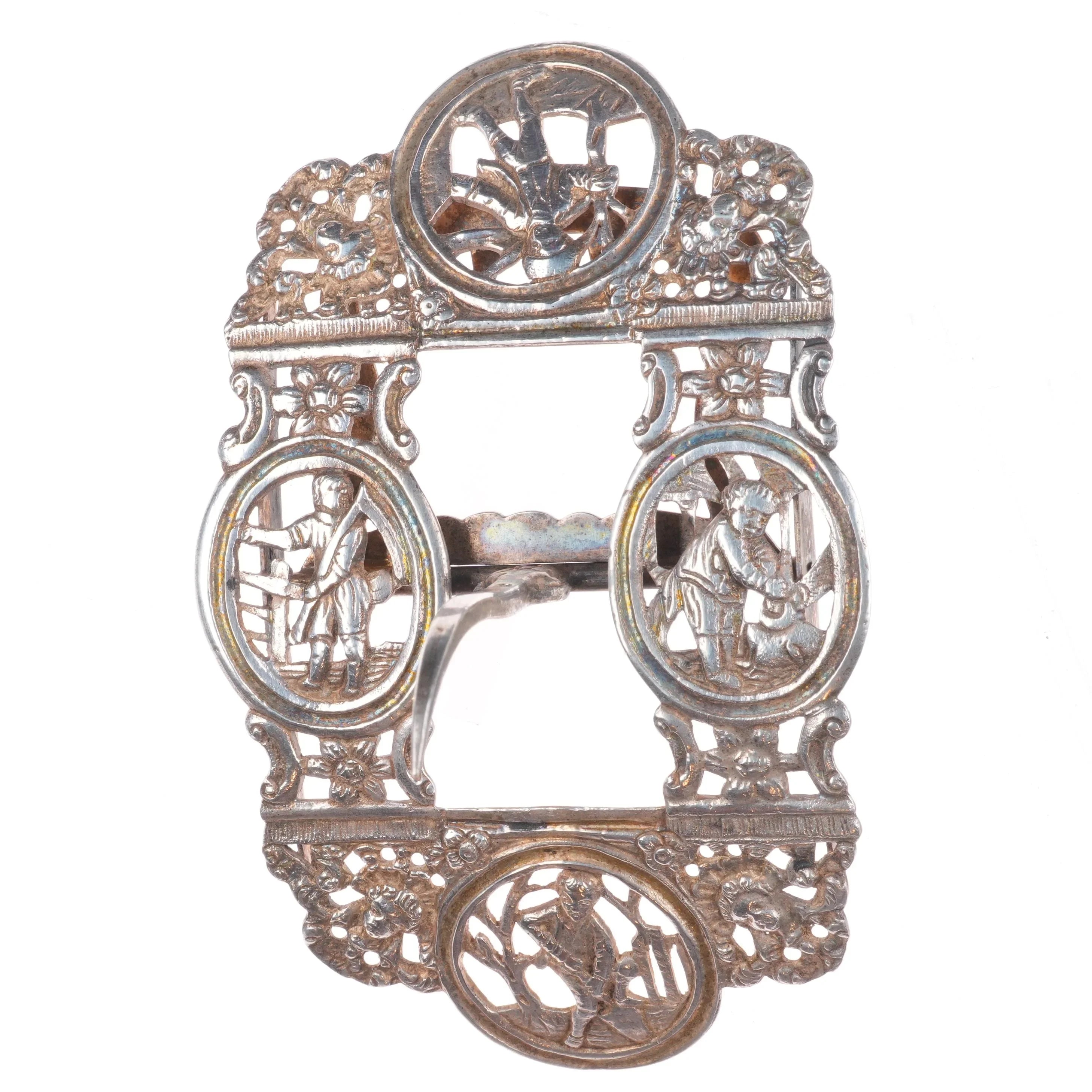 Antique Sterling silver openwork belt buckle Victorian