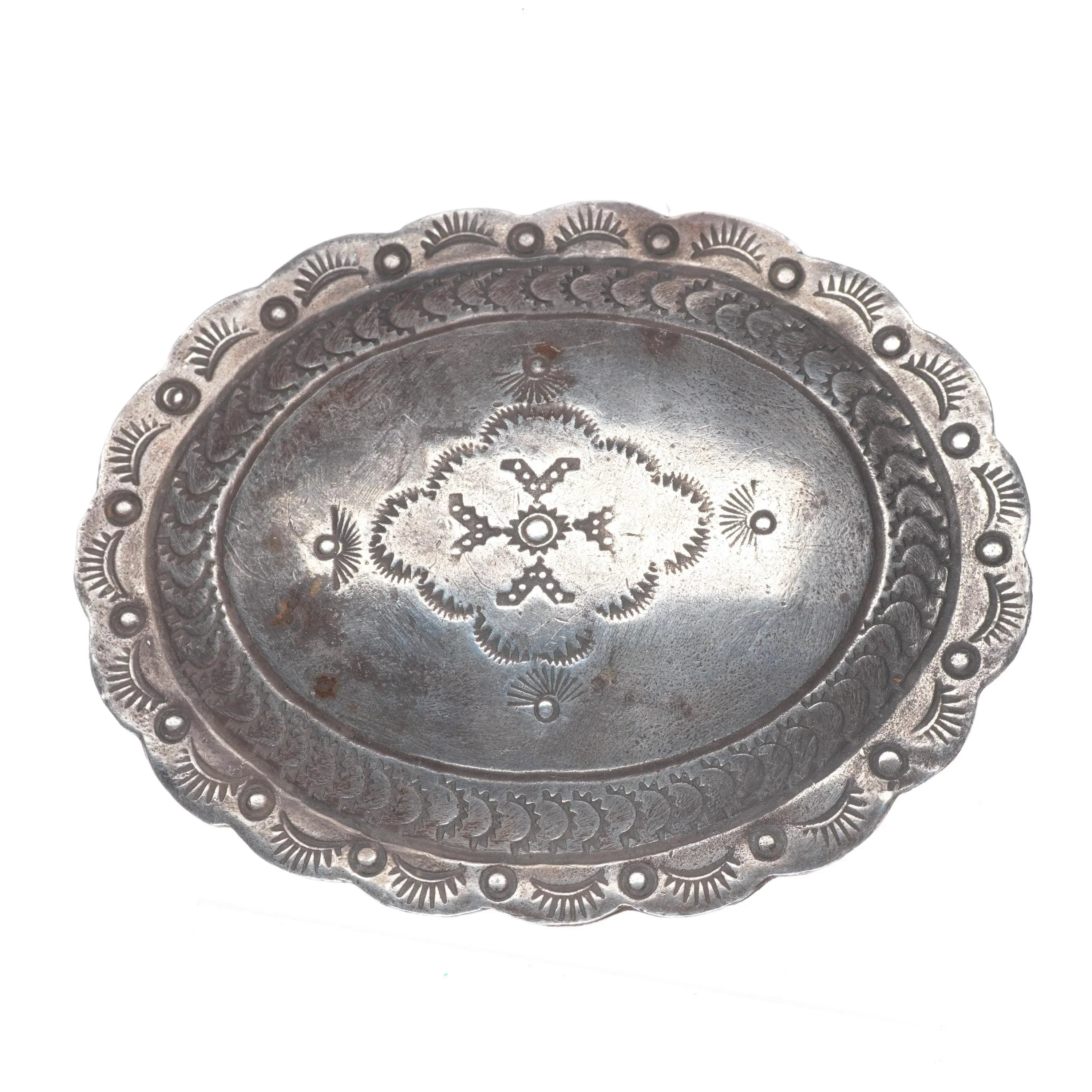 big c1950's Navajo hand stamped sterling silver concho belt buckle