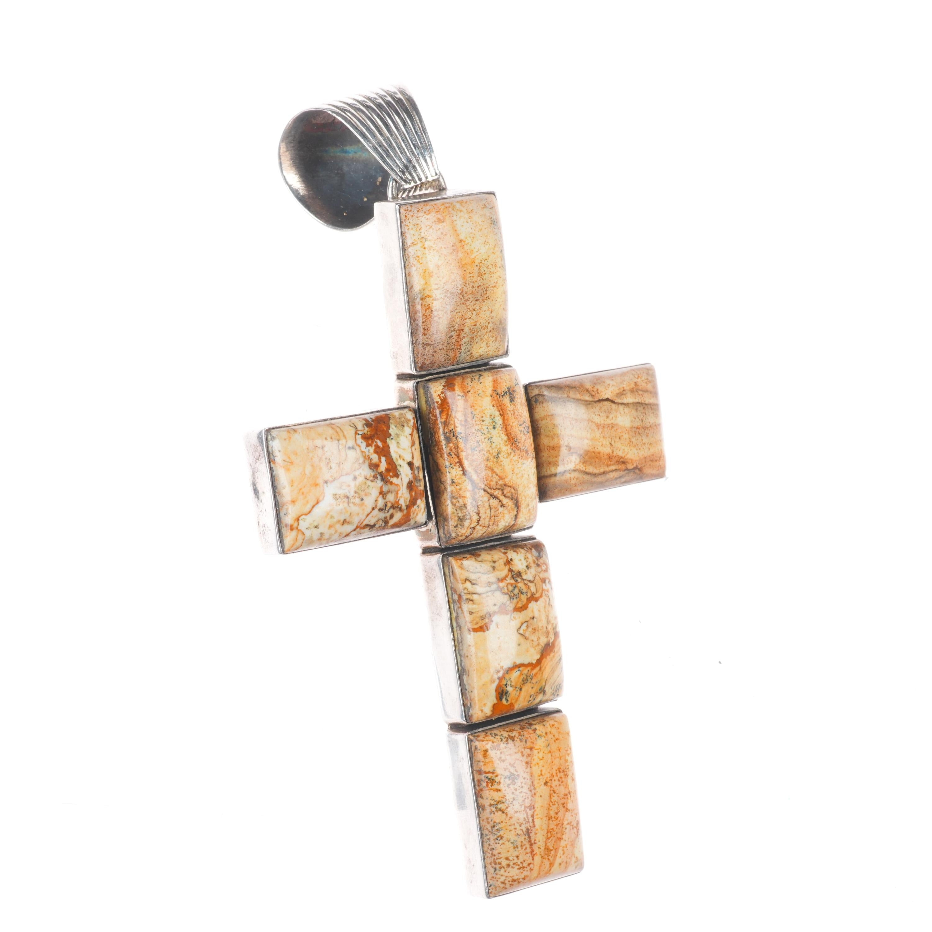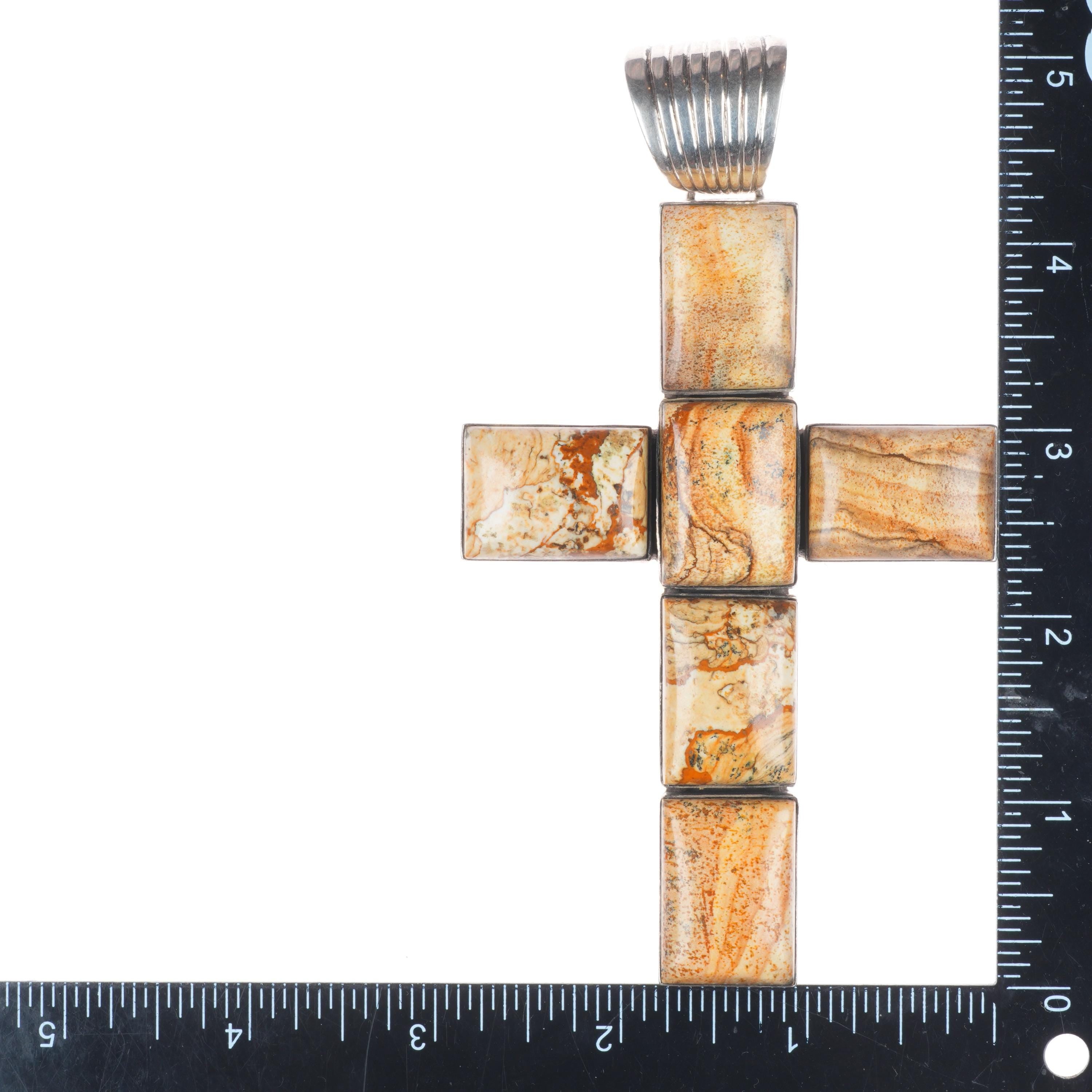 Big Dan Dodson vintage southwestern sterling silver Jasper cross pendant. Selling the pendant shown in good condition with measurements in pictures. Marked as shown, weight and measurements in pictures. Scale pic is off, approximately 80-85 grams.