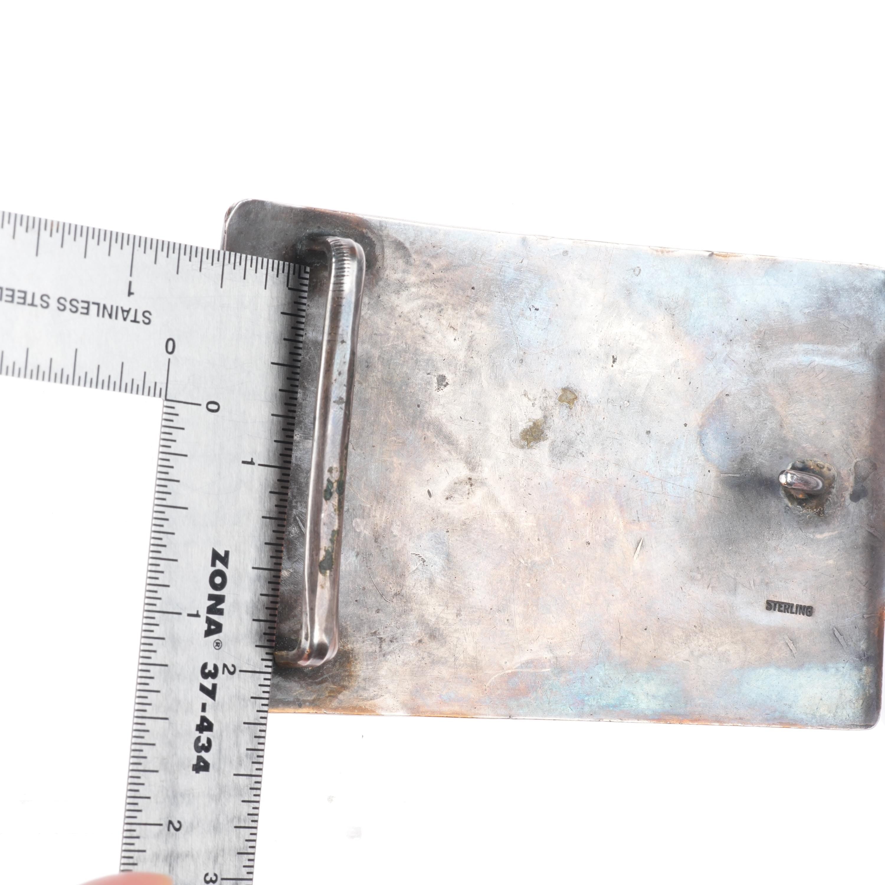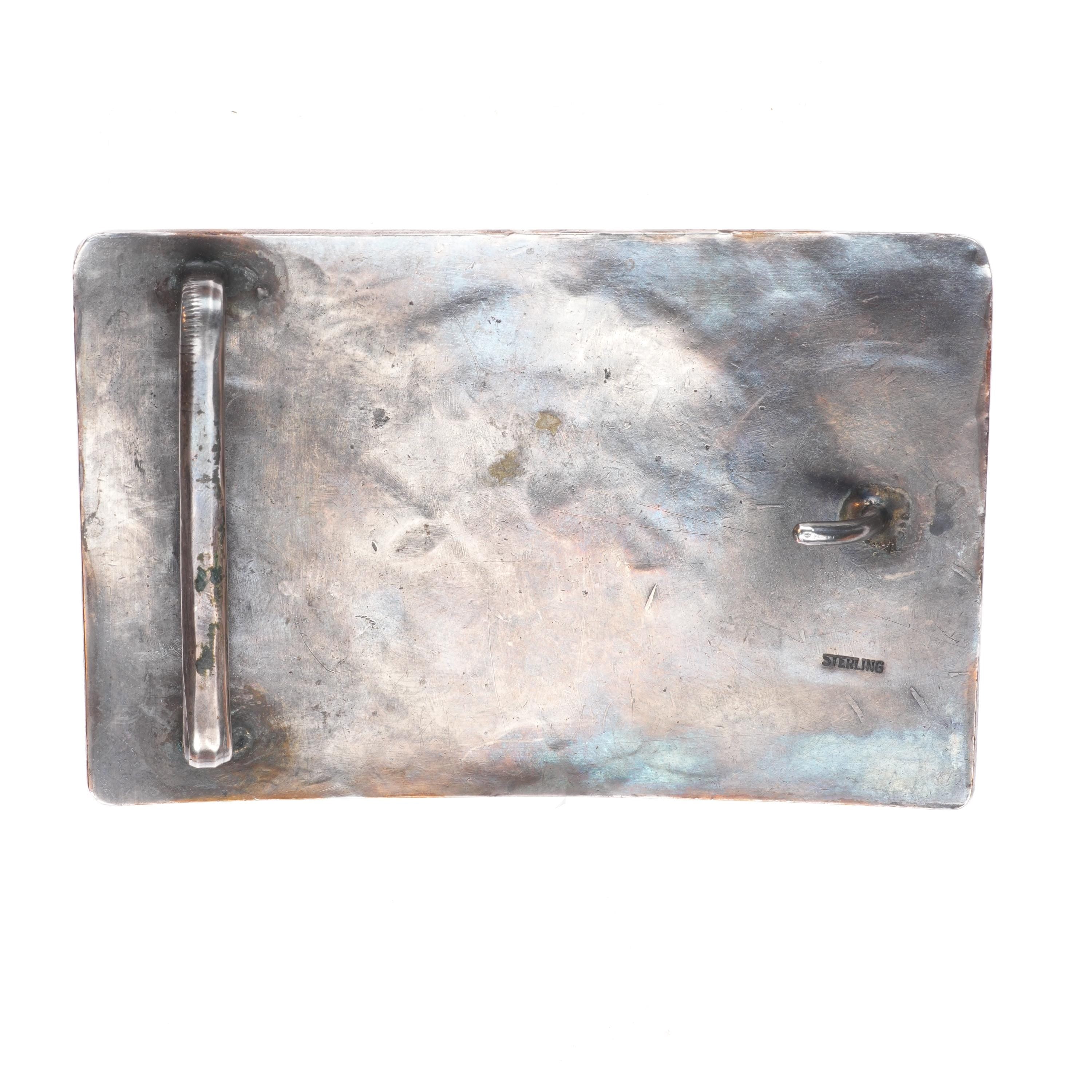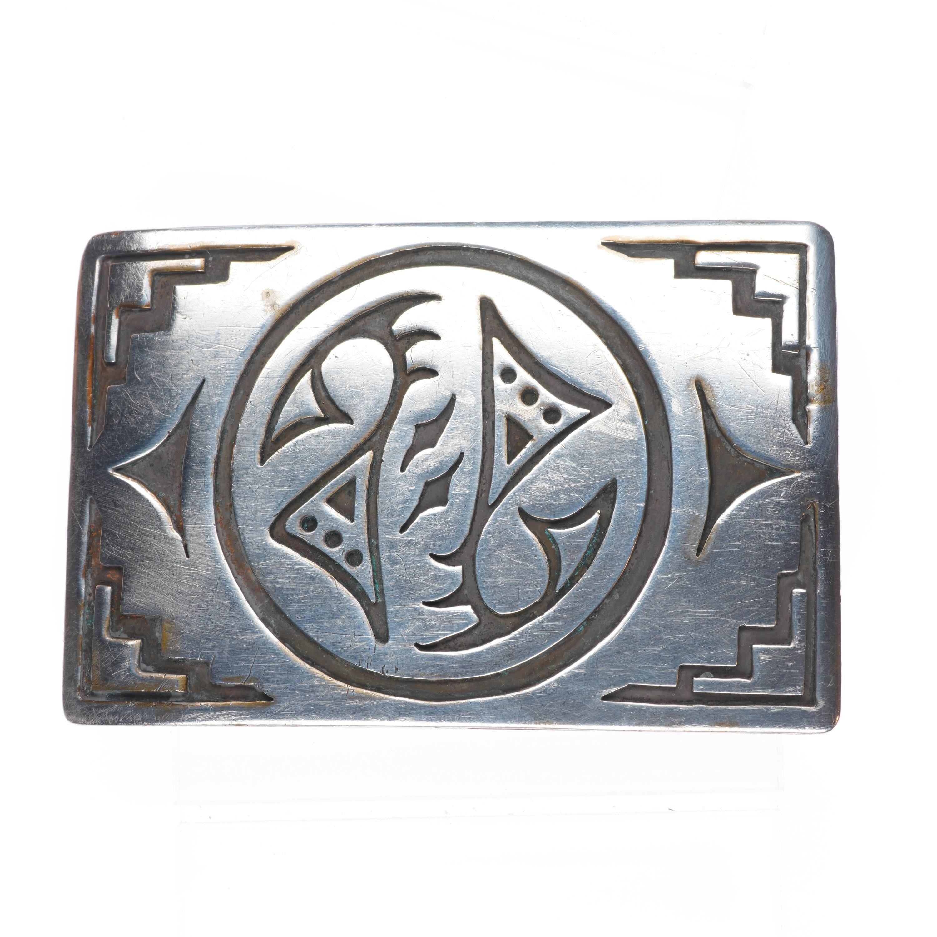 Big vintage Navajo sterling silver belt buckle w/Geometric overlay design