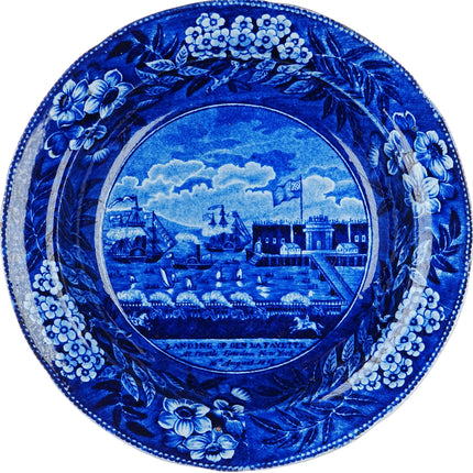 c1830 Clews American Historical Staffordshire Landing of Gen Lafayette Soup 10"
