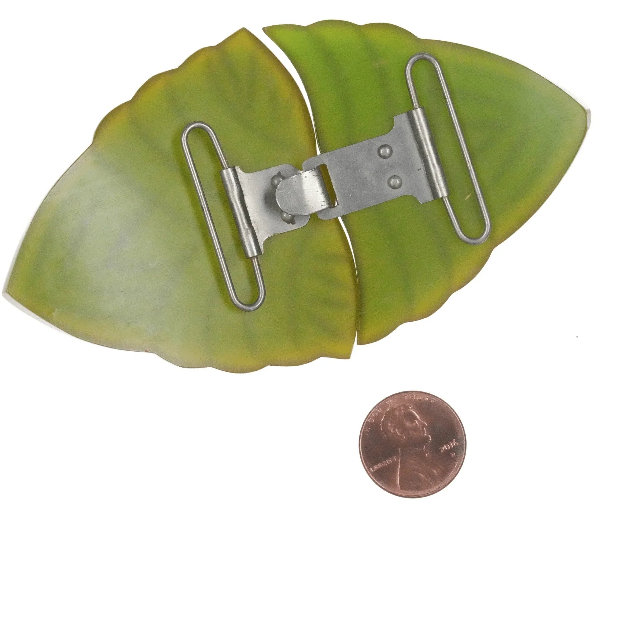 c1940's carved Green bakelite belt buckle set