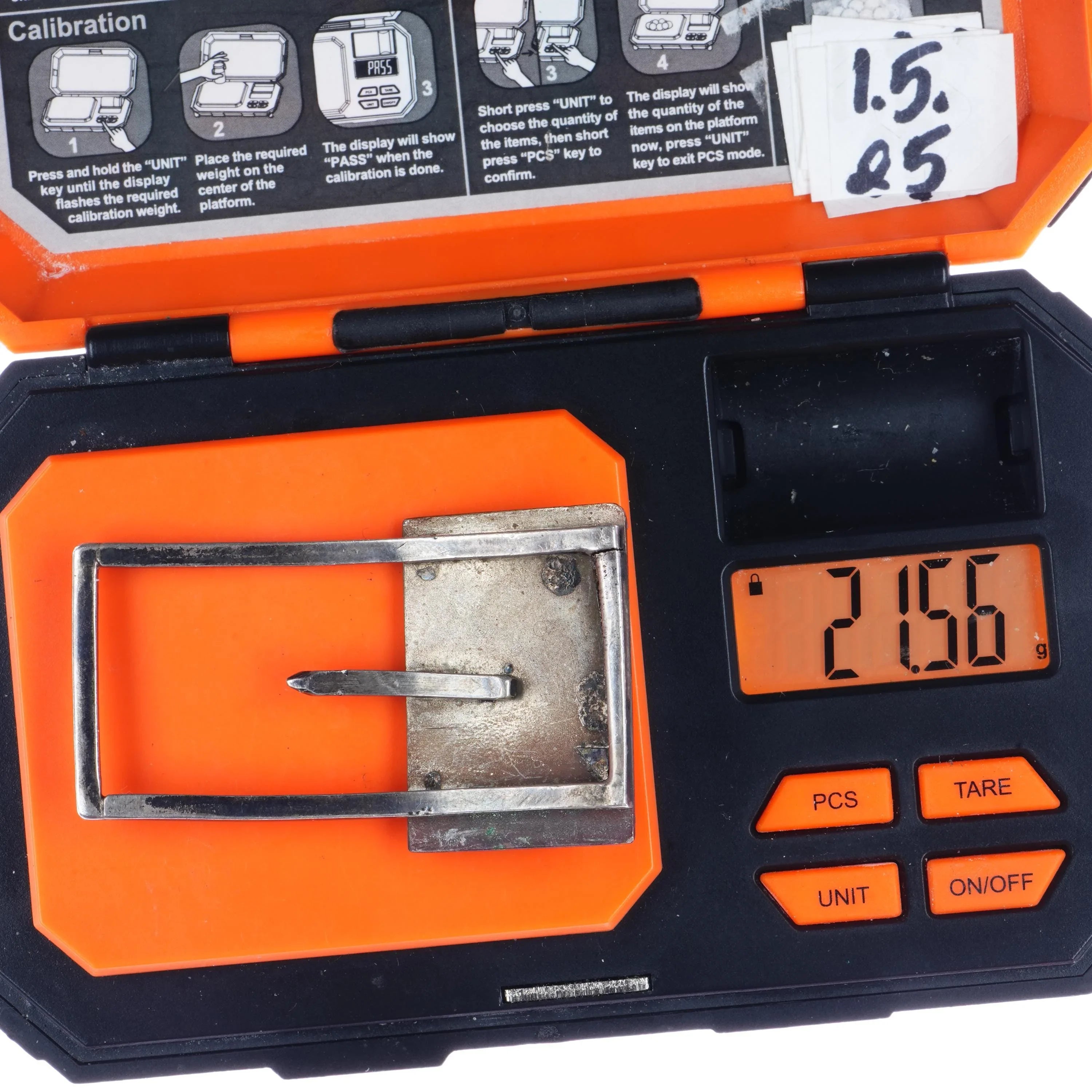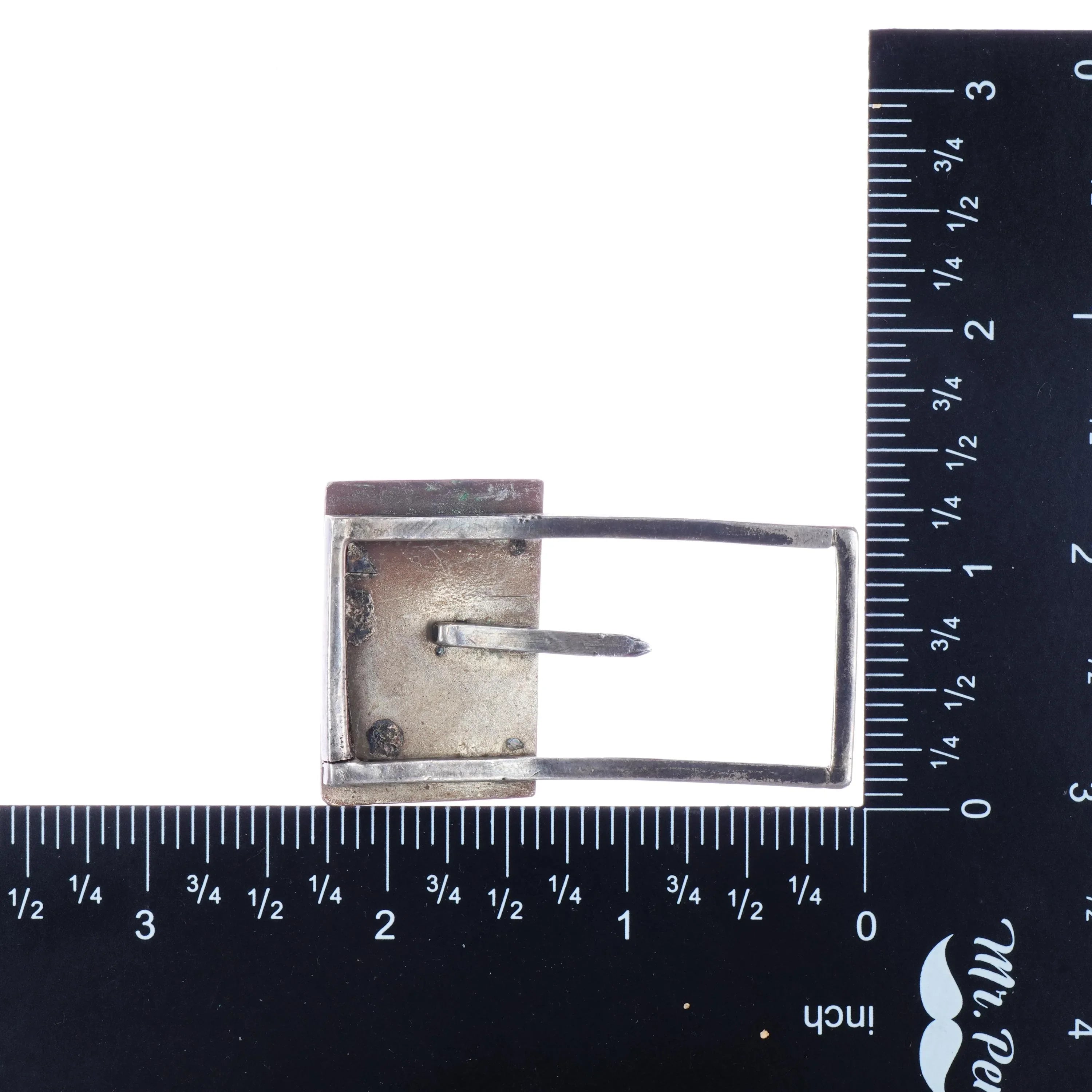 c1940‘s slim Navajo silver belt buckle w/turquoise. Solid sterling silver with weight and measurements in pics. Fully functional, with appropriate wear as shown in the pictures. Old fracture in turquoise, secure in bezel.