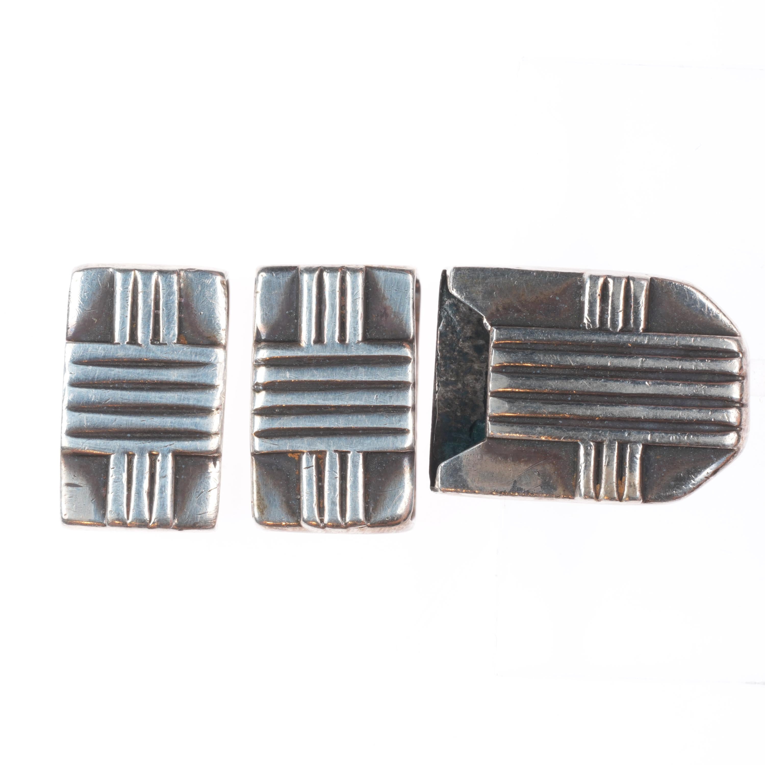 CR Southwestern sterling silver Native American ranger belt buckle set. Solid sterling silver (tested) with weight and measurements in pictures.. Fits a 3/4" belt. No issues, some expected wear. Ranger belts are typically wider and taper down to 3/4" where the buckle and tip go on.