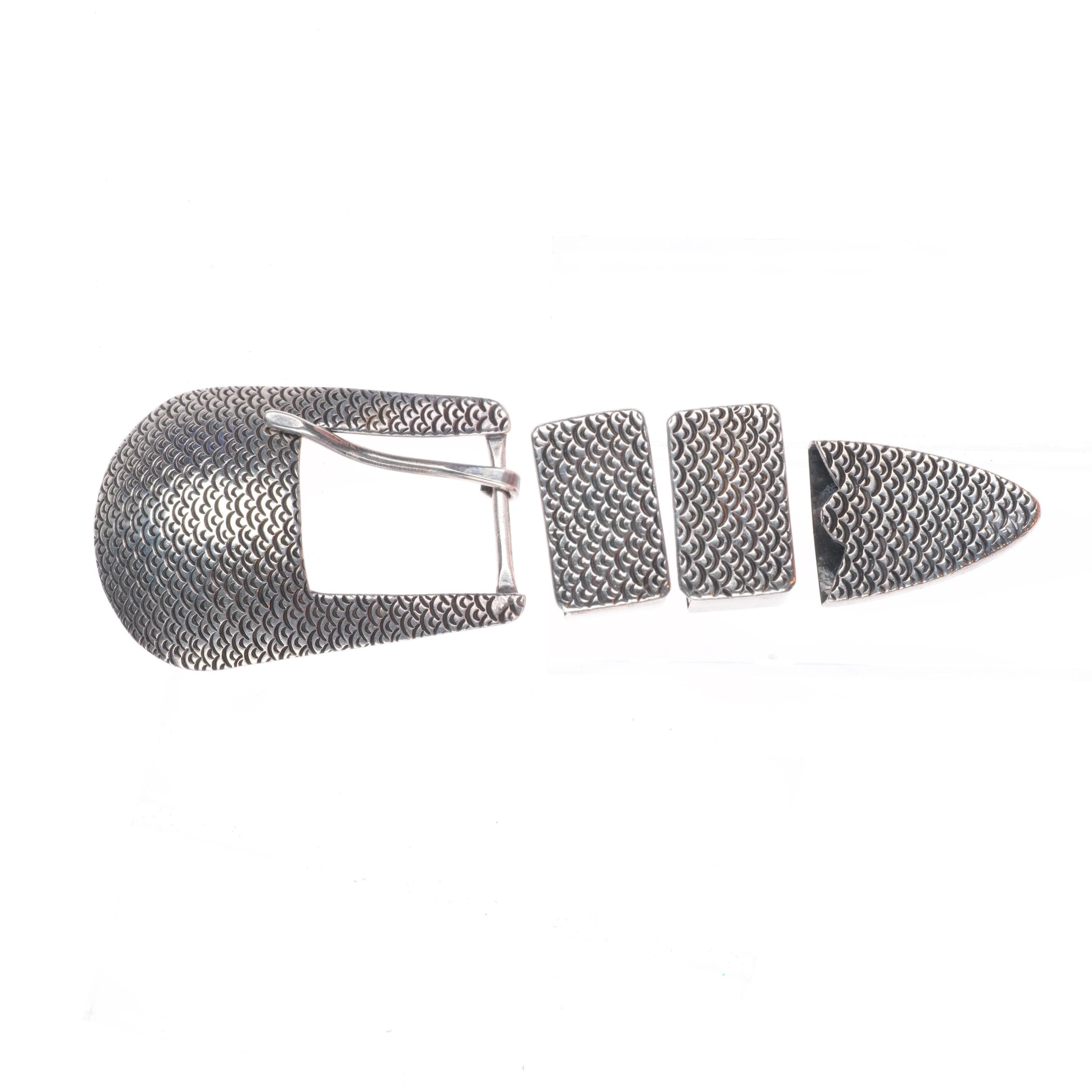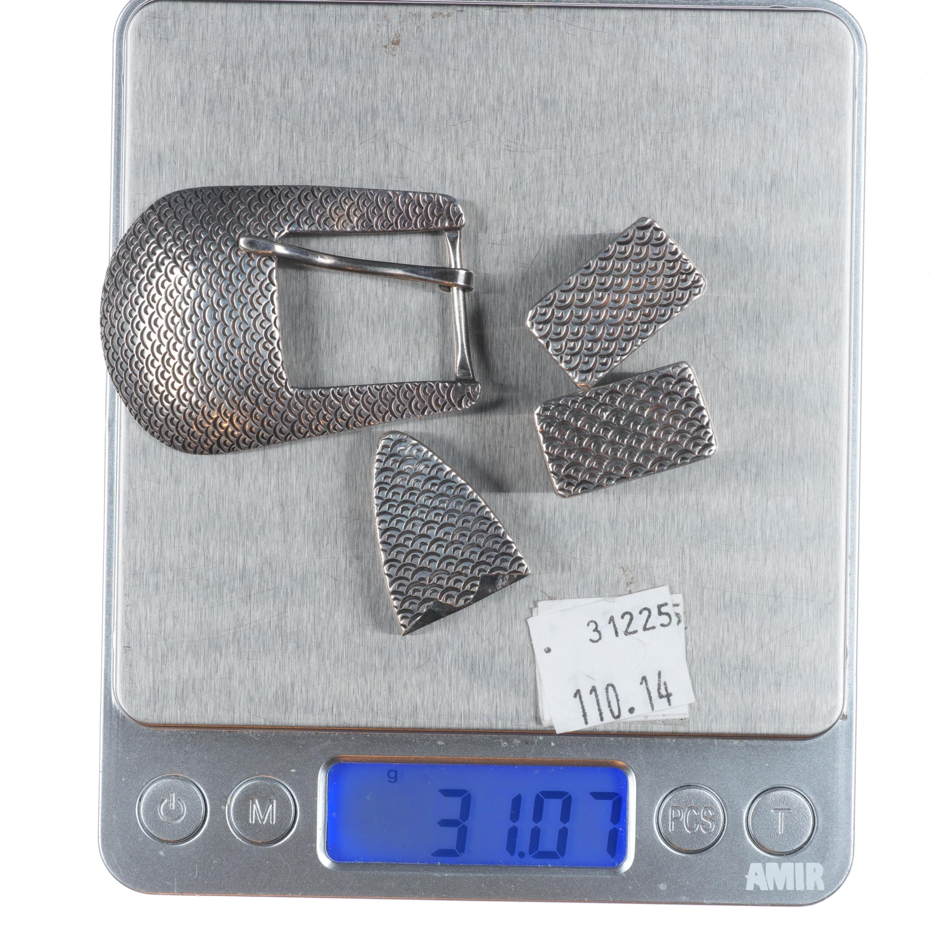 Delbert Saunders Navajo Sterling silver intricately stamped 3/4" ranger belt buckle set