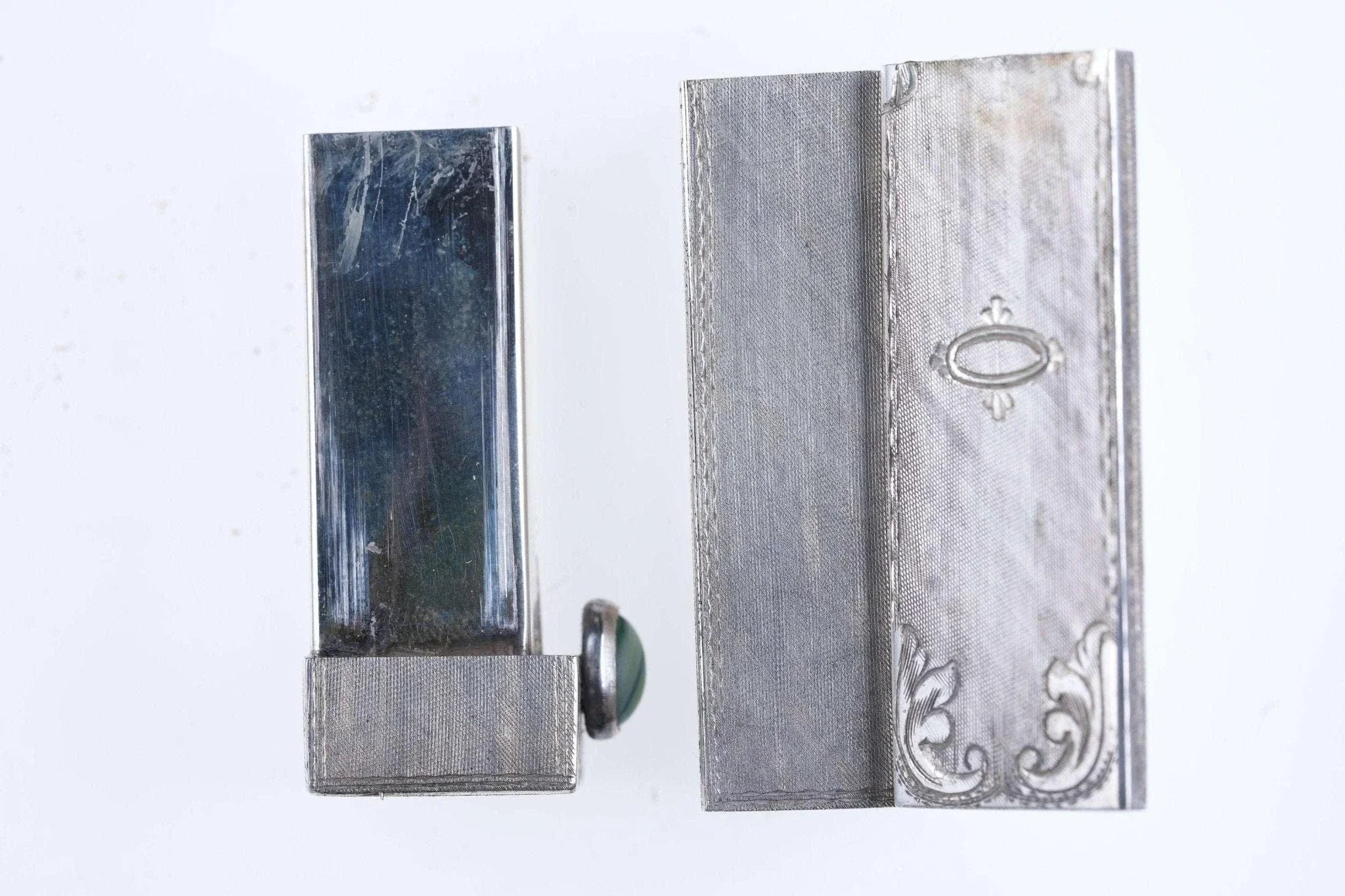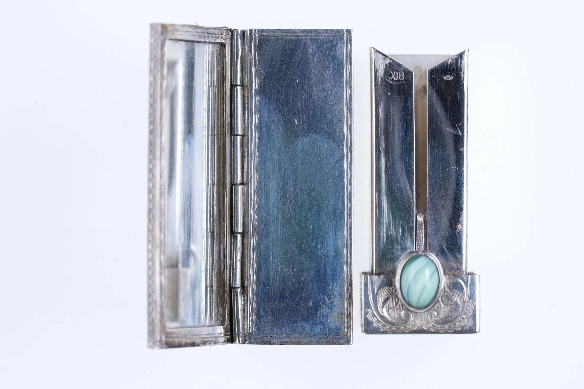 Vintage Engraved Italian 800 Silver Lipstick Case Vintage Holder w/ Mirror<br>Compact. Appears unused, marked and tested 800 80% silver.<br>trinketdrawer