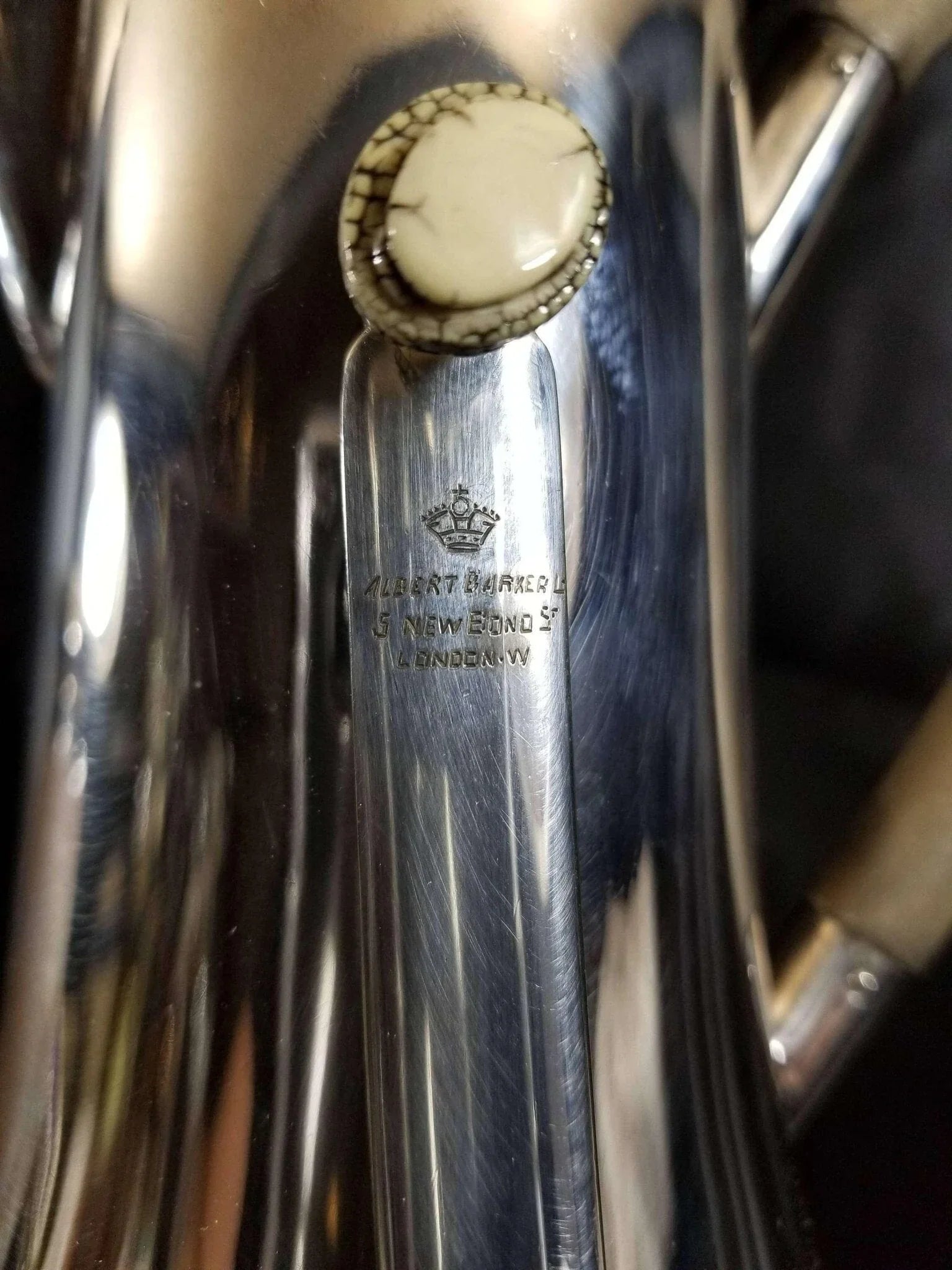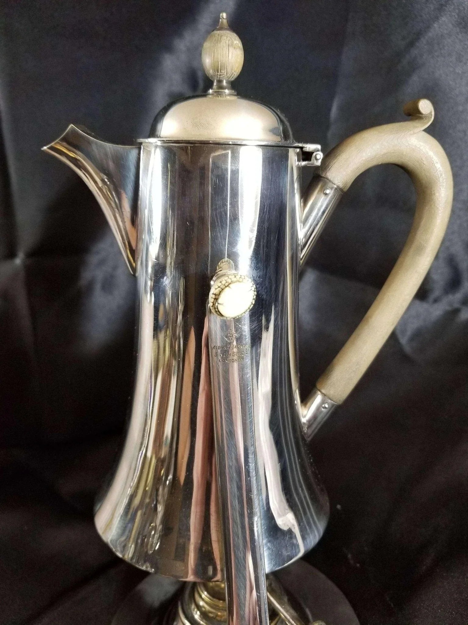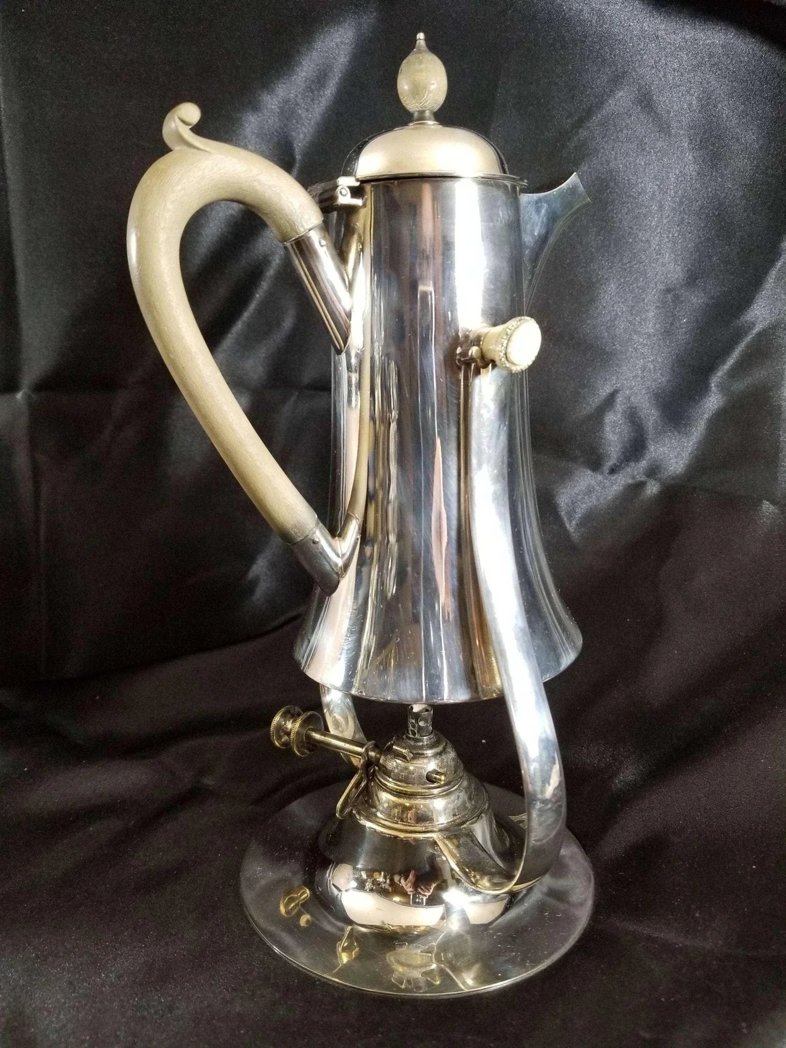 I'm not 100% sure this is a Dresser design as I could find no records on an<br>identical piece.<br><br>Measures 11" tall total, base is 5 1/8" wide. burner mechanism is functional.<br>Knob turns and wick goes up. There may have been a cap that covered the burner<br>when not in use. M monogram on Base. Rd no. 600494 stamped in center on base,<br>which dates it to 1912. Patent stamped on burner knob. Minor wear to Silverplate<br>underneath bear<br>Base and on burner/knob.<br><br>Hukin and Heath, a silver and Silverplate company was established by Jonathan<br>Wilson Hukin and Thomas Heath c.1855. A strong relationship was developed with<br>Dr Christopher dress as the head designer from 1877 until c.1881. Dressers'<br>designs were launched at the opening of the firm's showrooms on Charterhouse<br>street in August 1879. Some of Dresser's designs were manufactured until after<br>1900.<br>Tw10