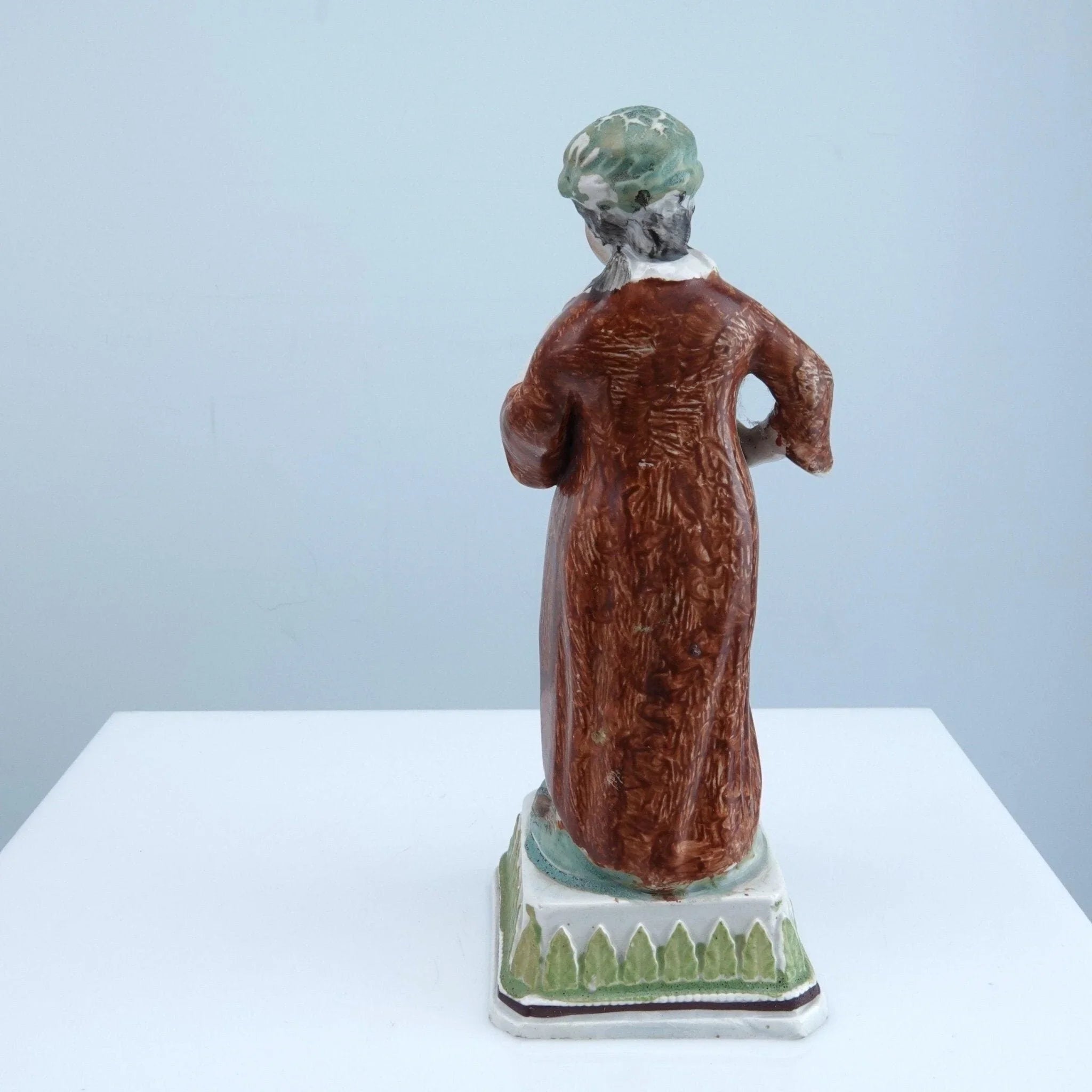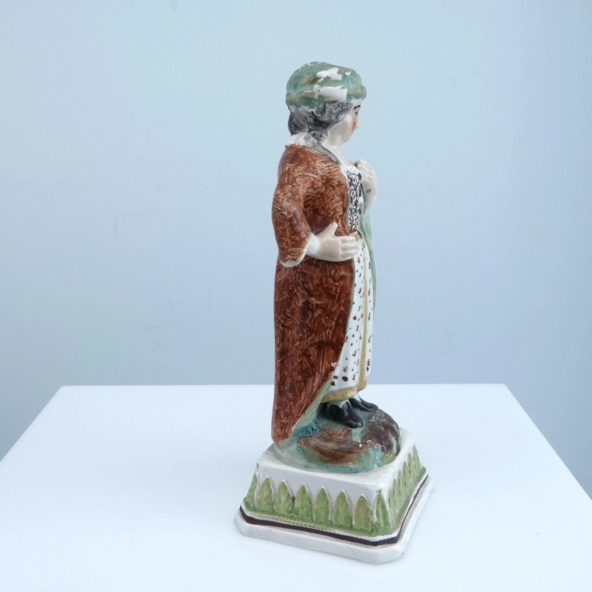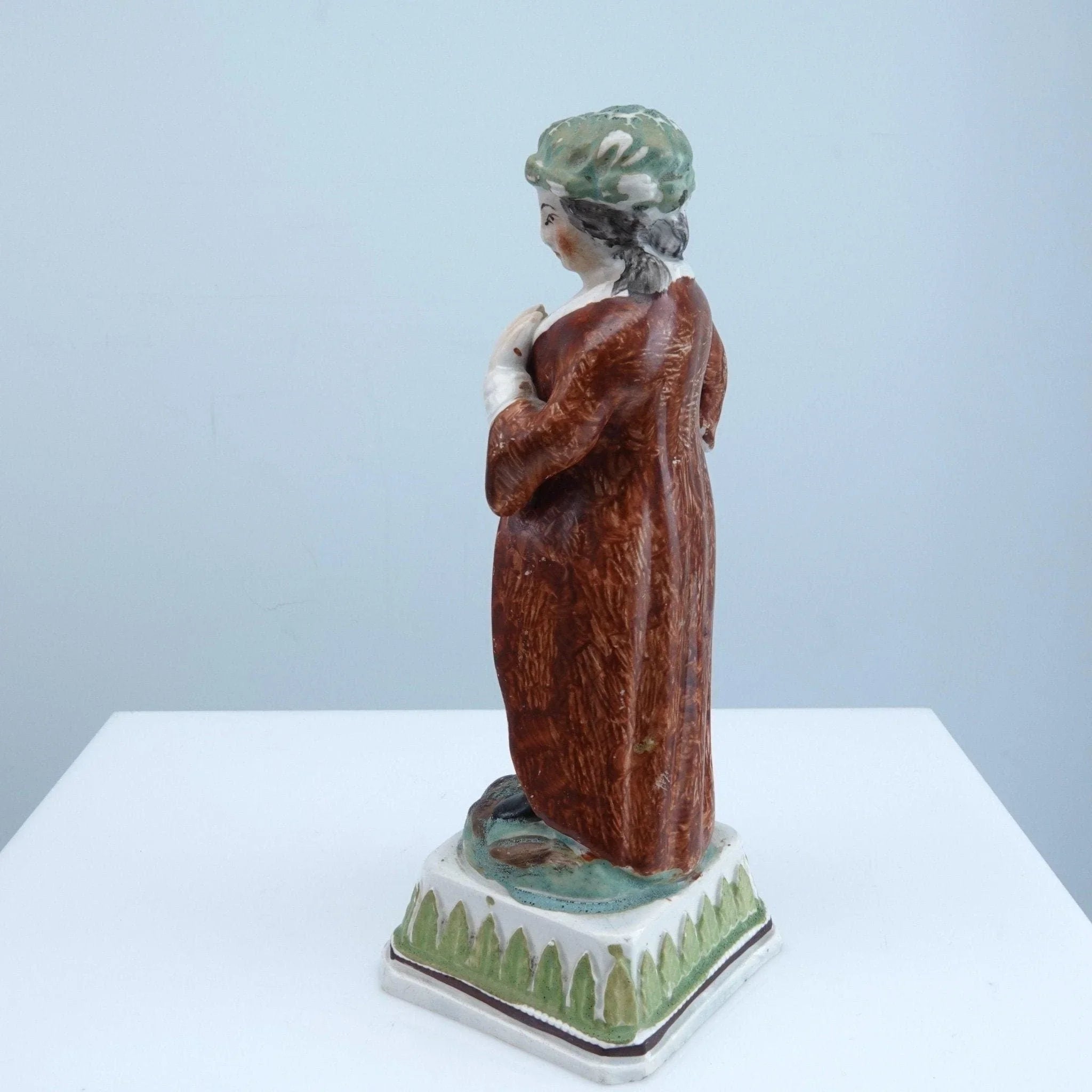 c1820 Staffordshire Pearlware Figure Girl 6.5" tall with 2.5" square base